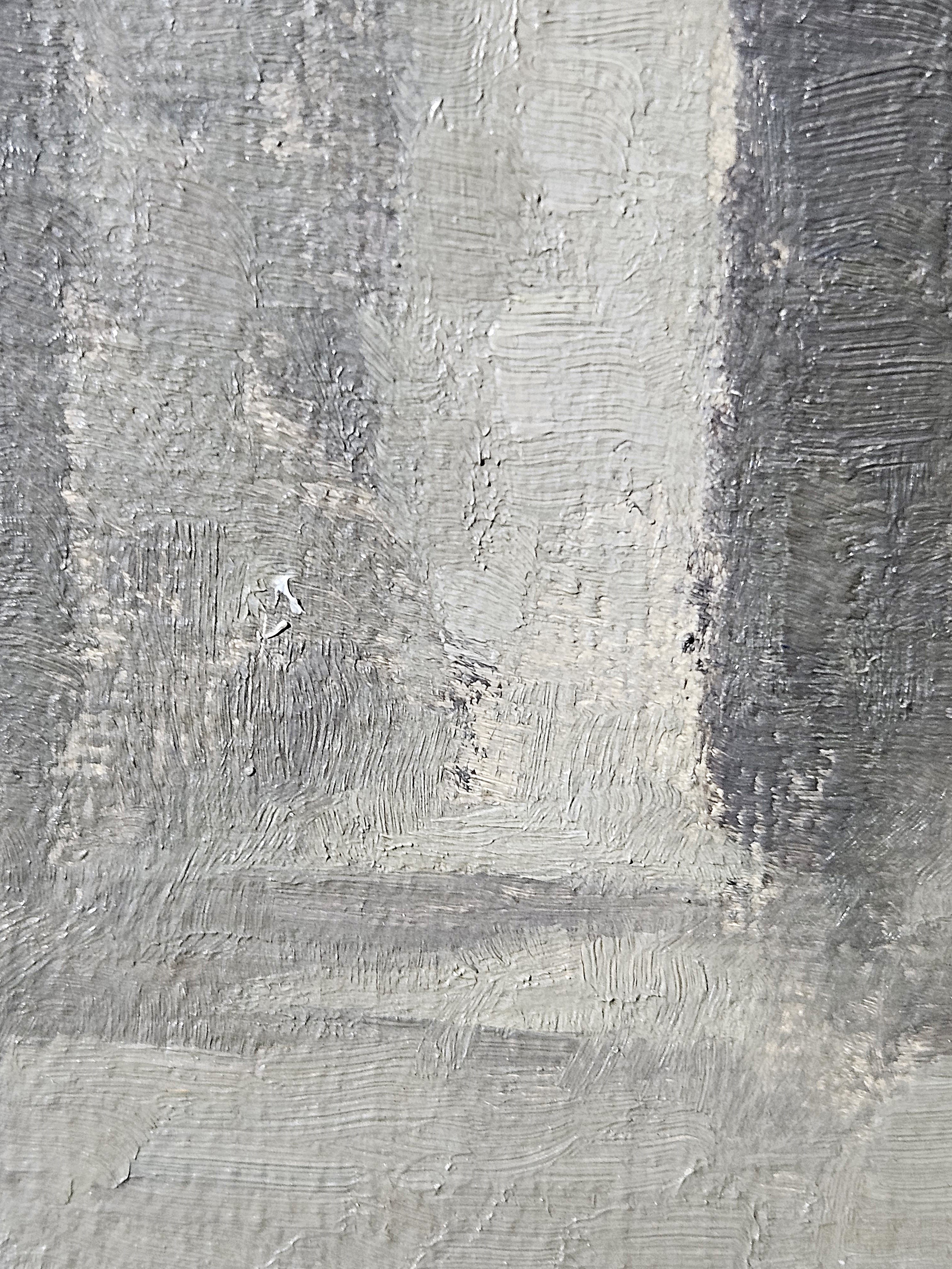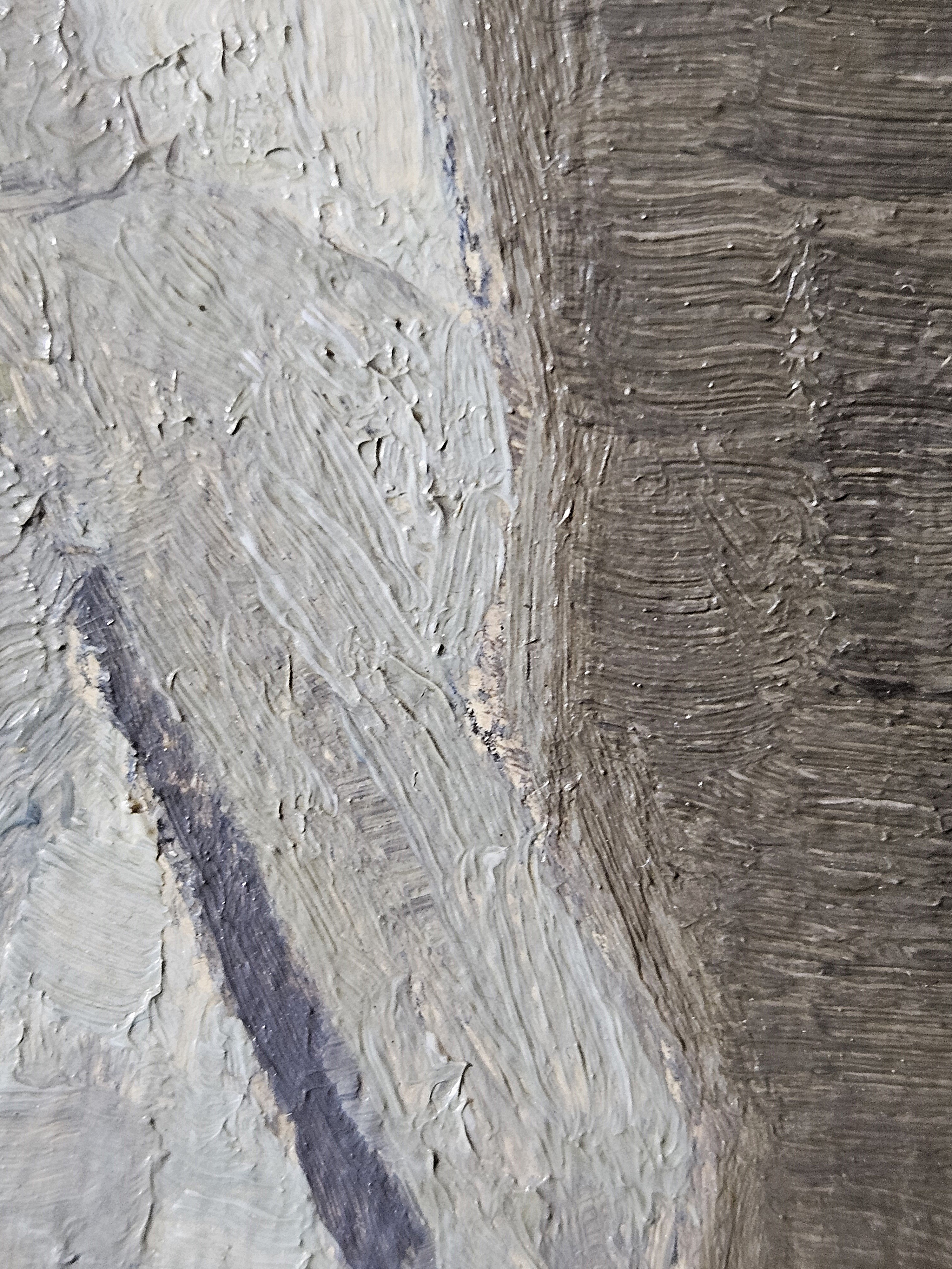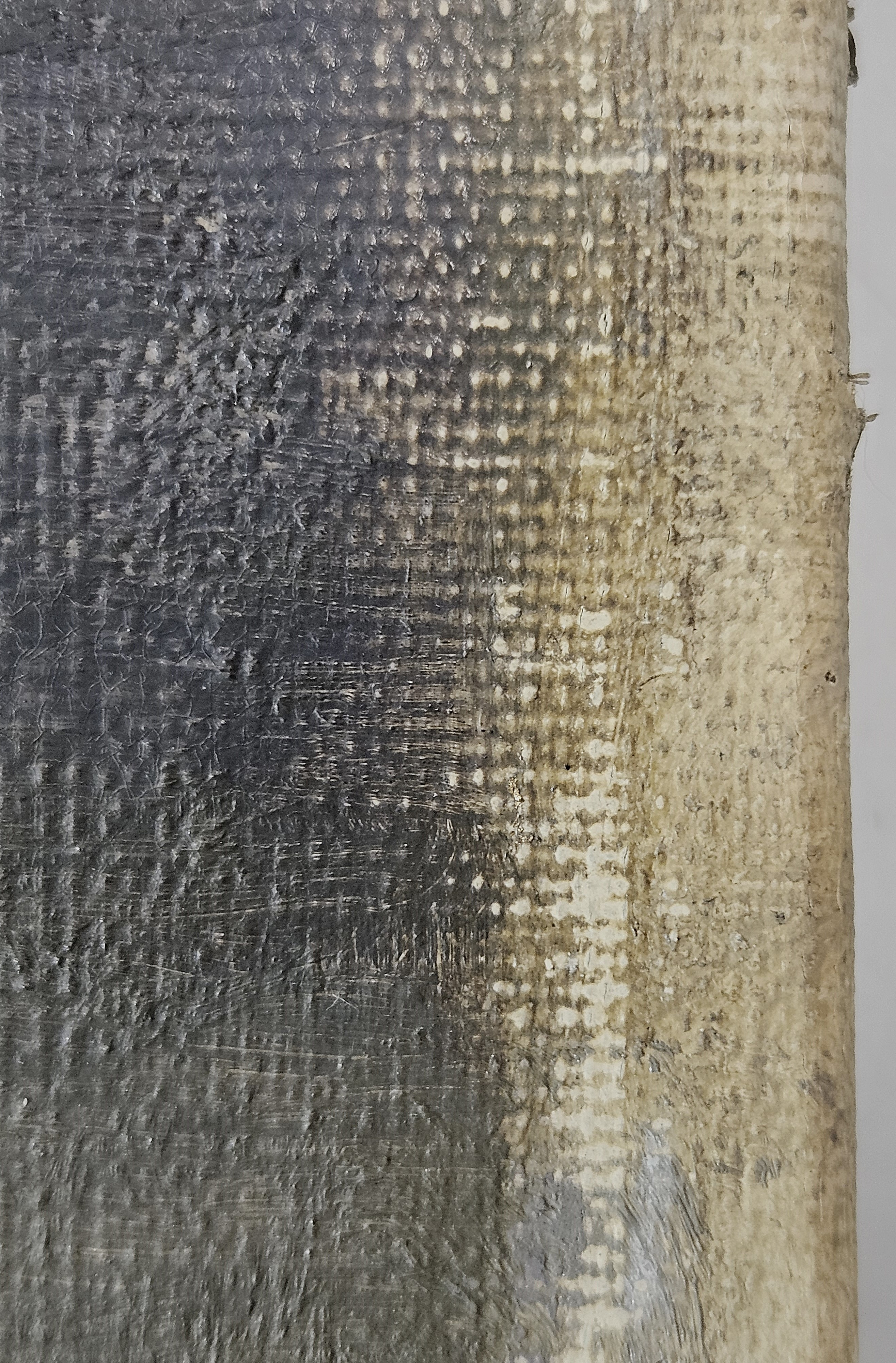 The ground layer is a preparatory layer applied directly to the support to create a smooth surface for painting. It is typically opaque and monochrome in color, providing a neutral base that influences the subsequent application of paint layers and the final appearance of the painting. The composition of the ground layer varies depending on the type of support and the historical period of the artwork. Hammershøi typically painted on white and industrially primed canvasses.