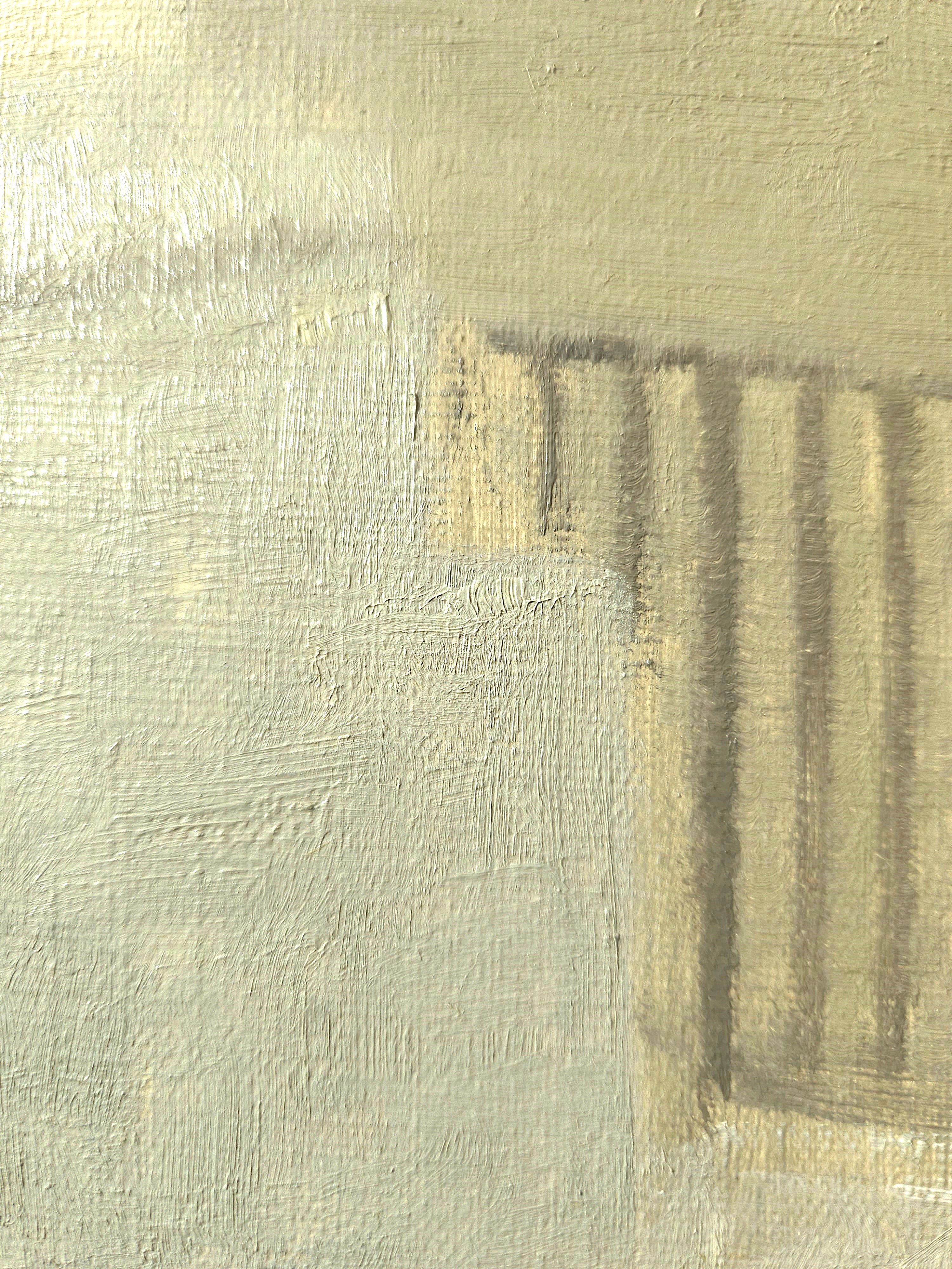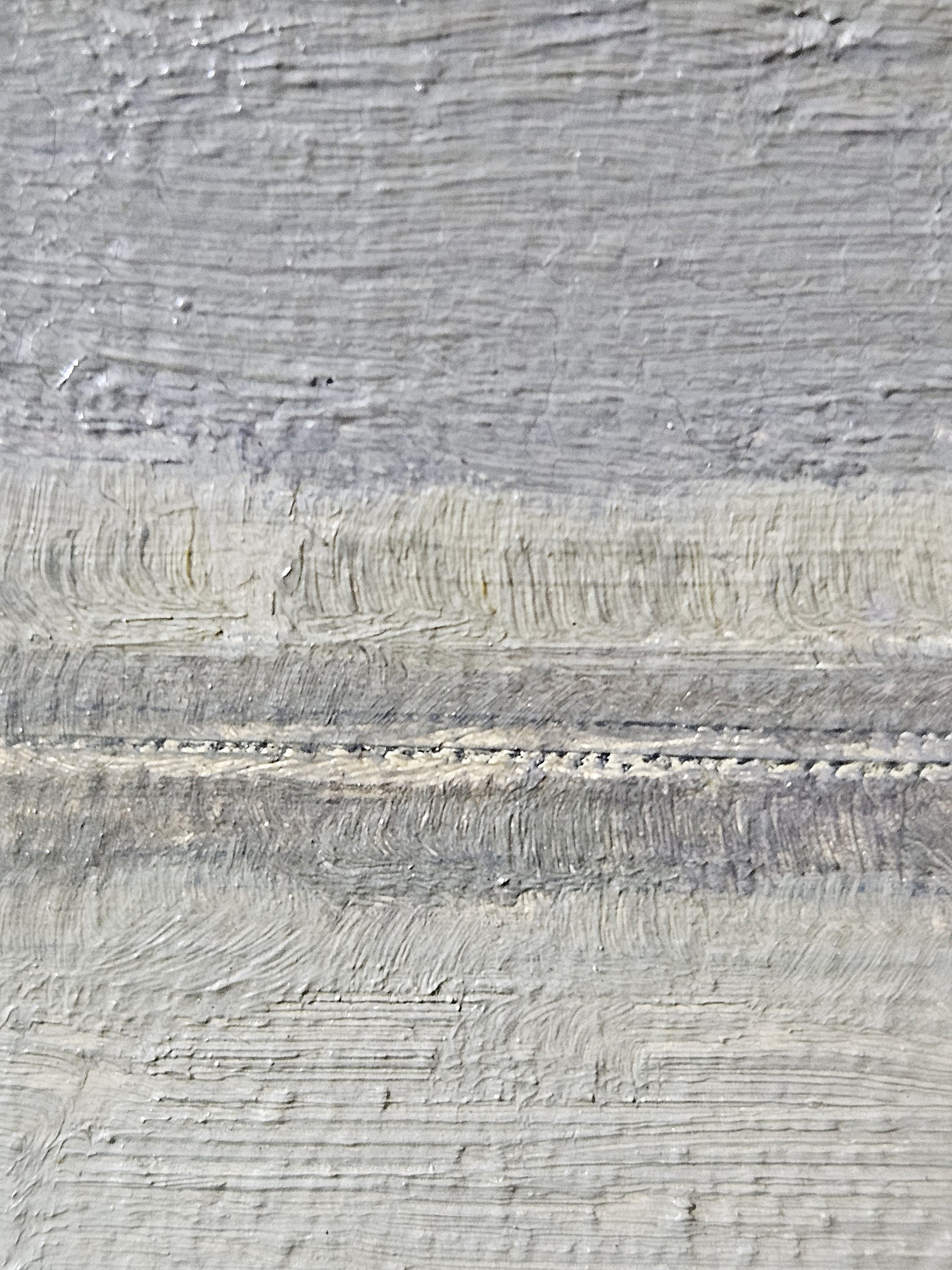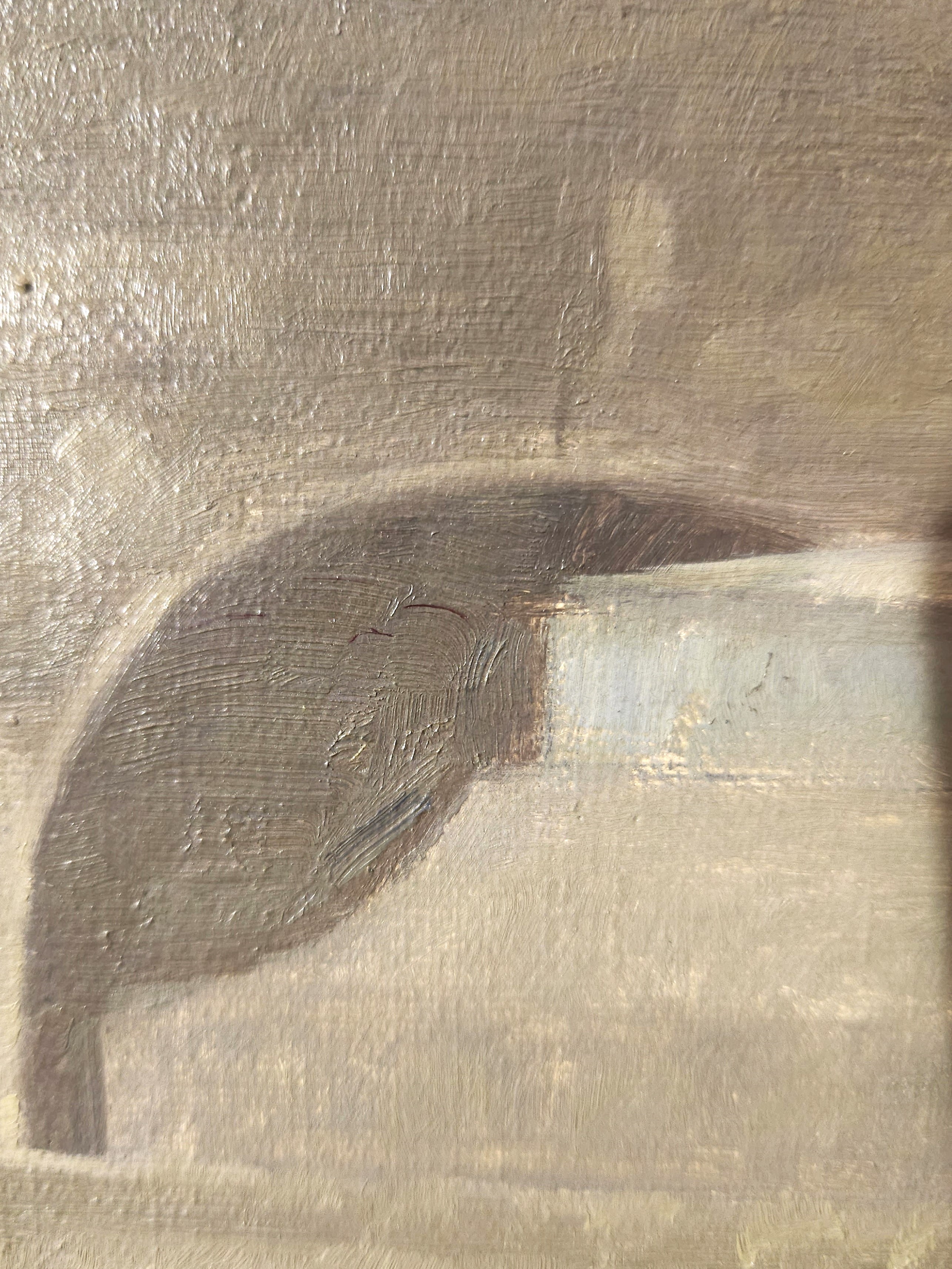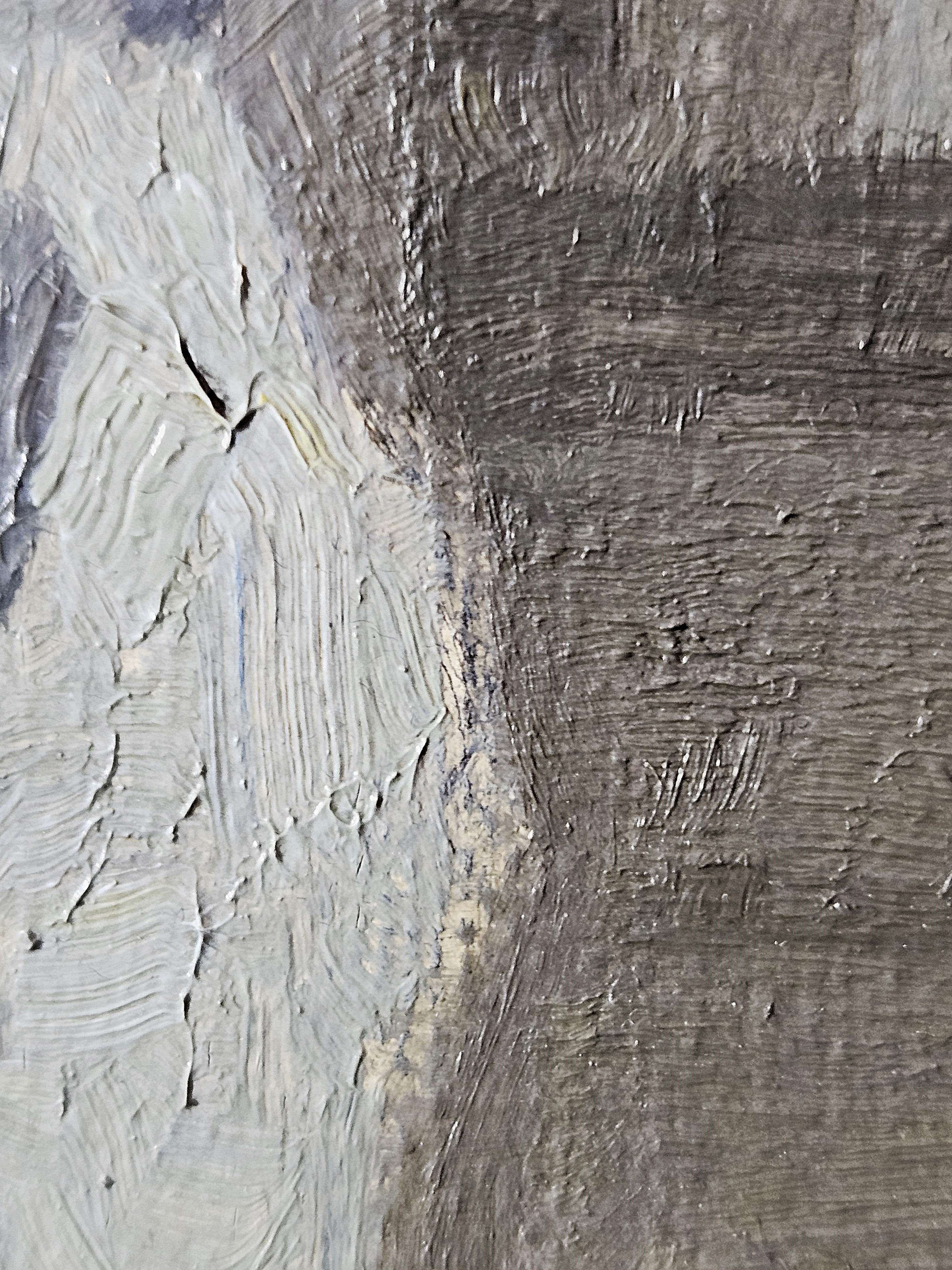 The ground layer is a preparatory layer applied directly to the support to create a smooth surface for painting. It is typically opaque and monochrome in color, providing a neutral base that influences the subsequent application of paint layers and the final appearance of the painting. The composition of the ground layer varies depending on the type of support and the historical period of the artwork. Hammershøi typically painted on white and industrially primed canvasses.