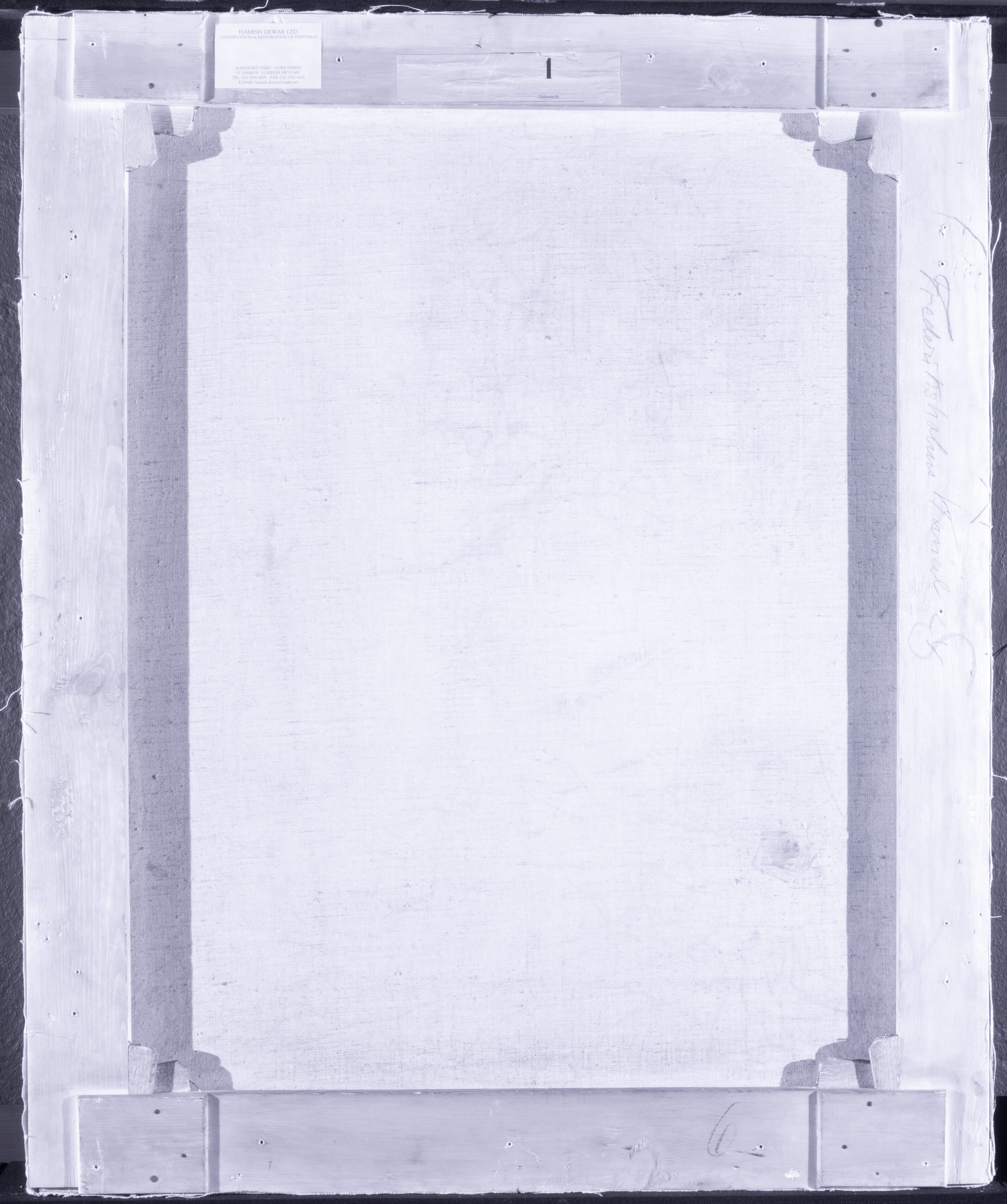 Inscriptions on the reverse of the frame include: