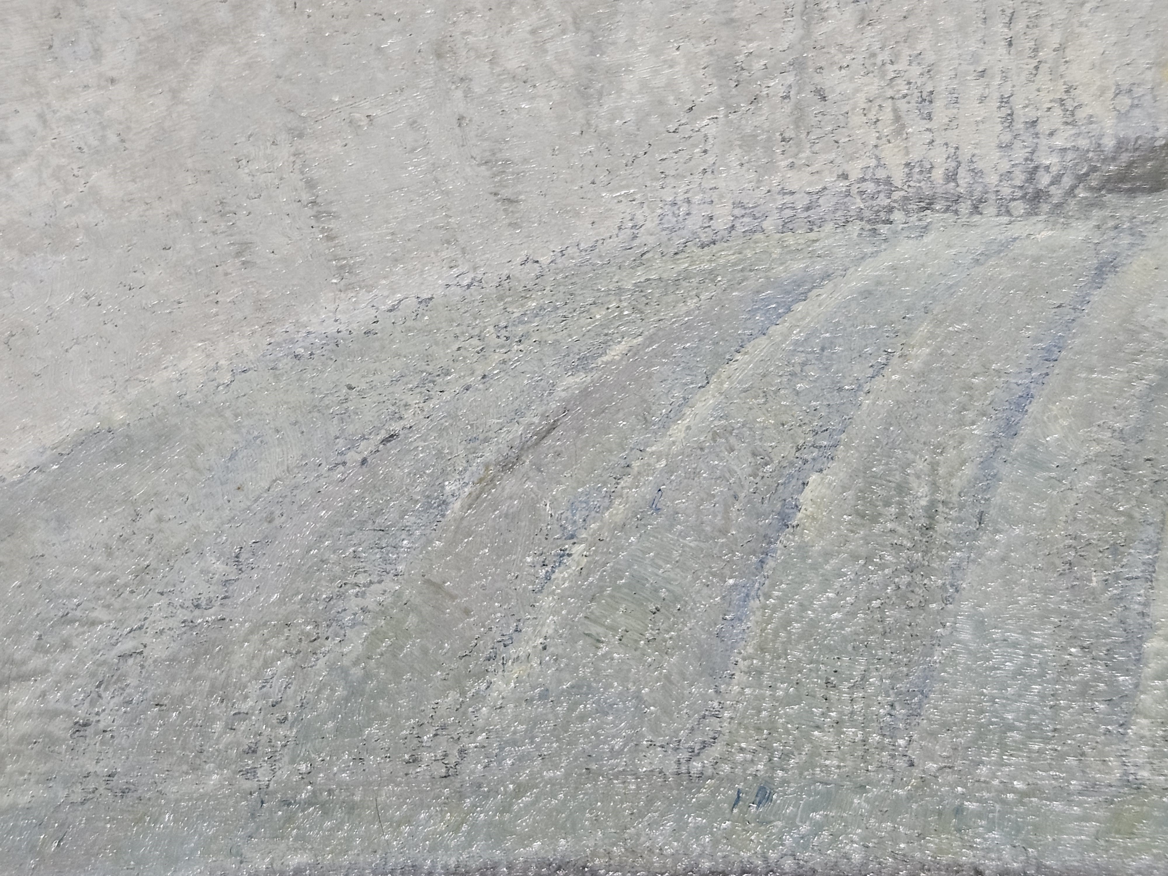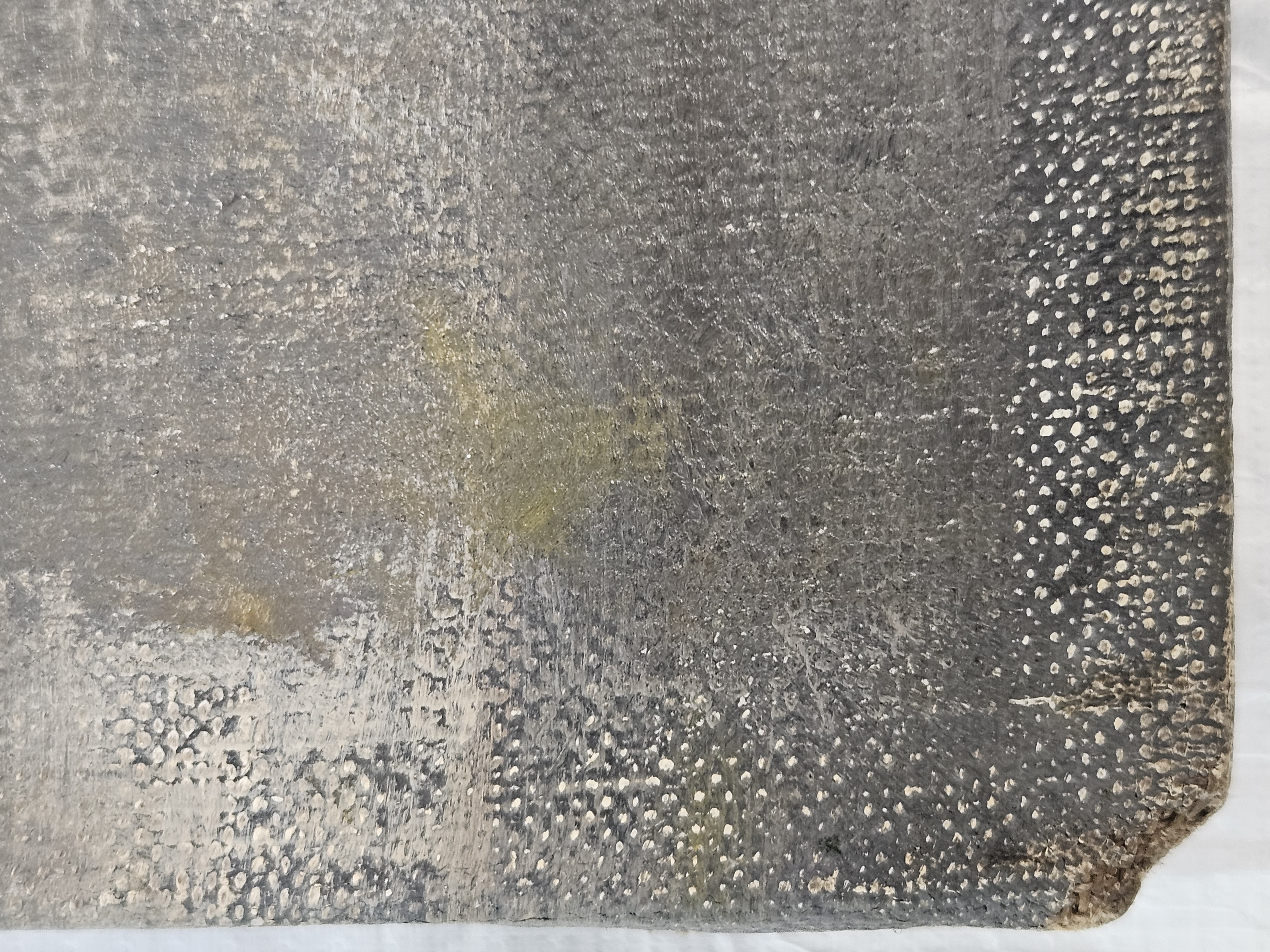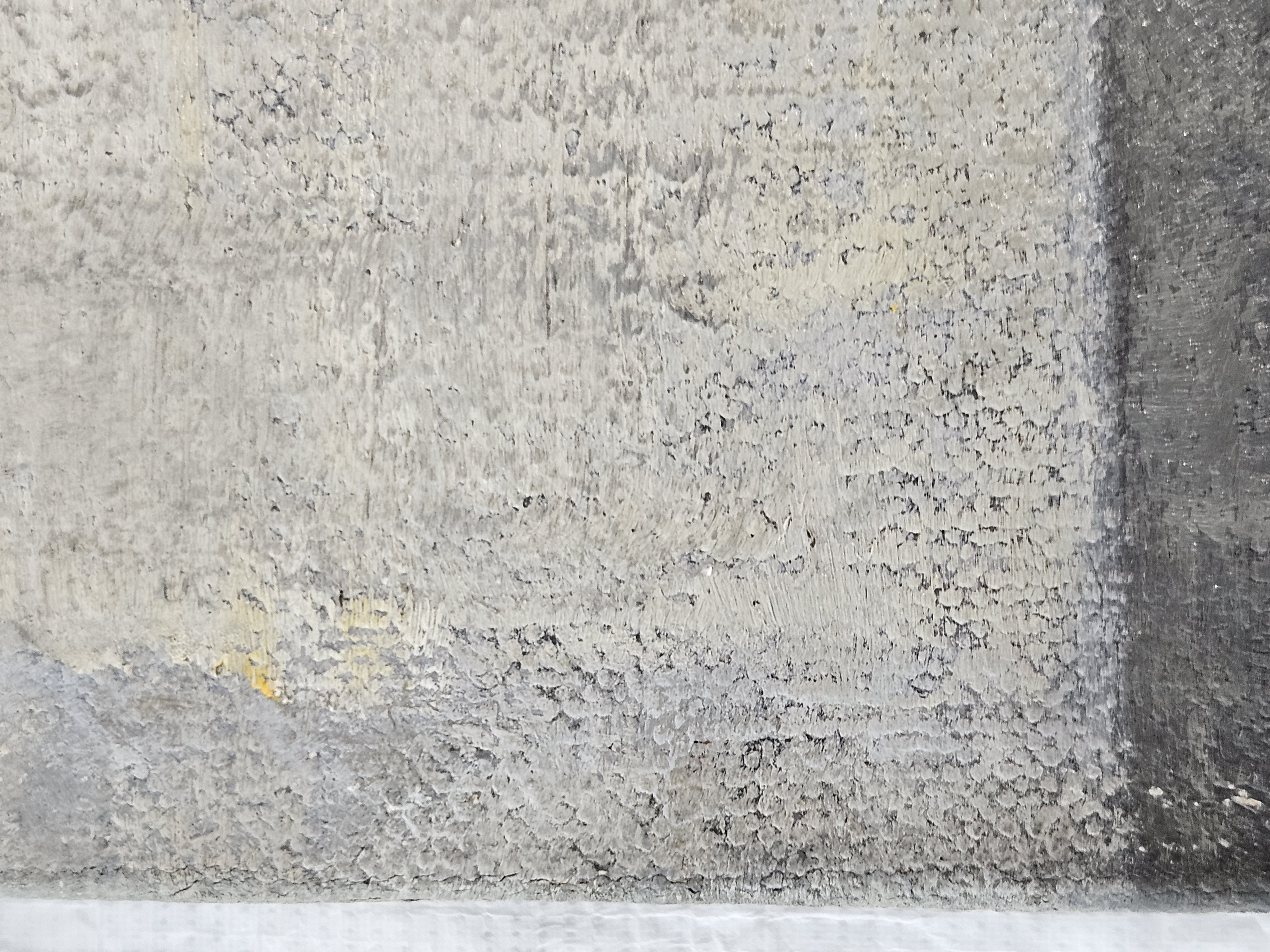 The ground layer is a preparatory layer applied directly to the support to create a smooth surface for painting. It is typically opaque and monochrome in color, providing a neutral base that influences the subsequent application of paint layers and the final appearance of the painting. The composition of the ground layer varies depending on the type of support and the historical period of the artwork. Hammershøi typically painted on white and industrially primed canvasses.