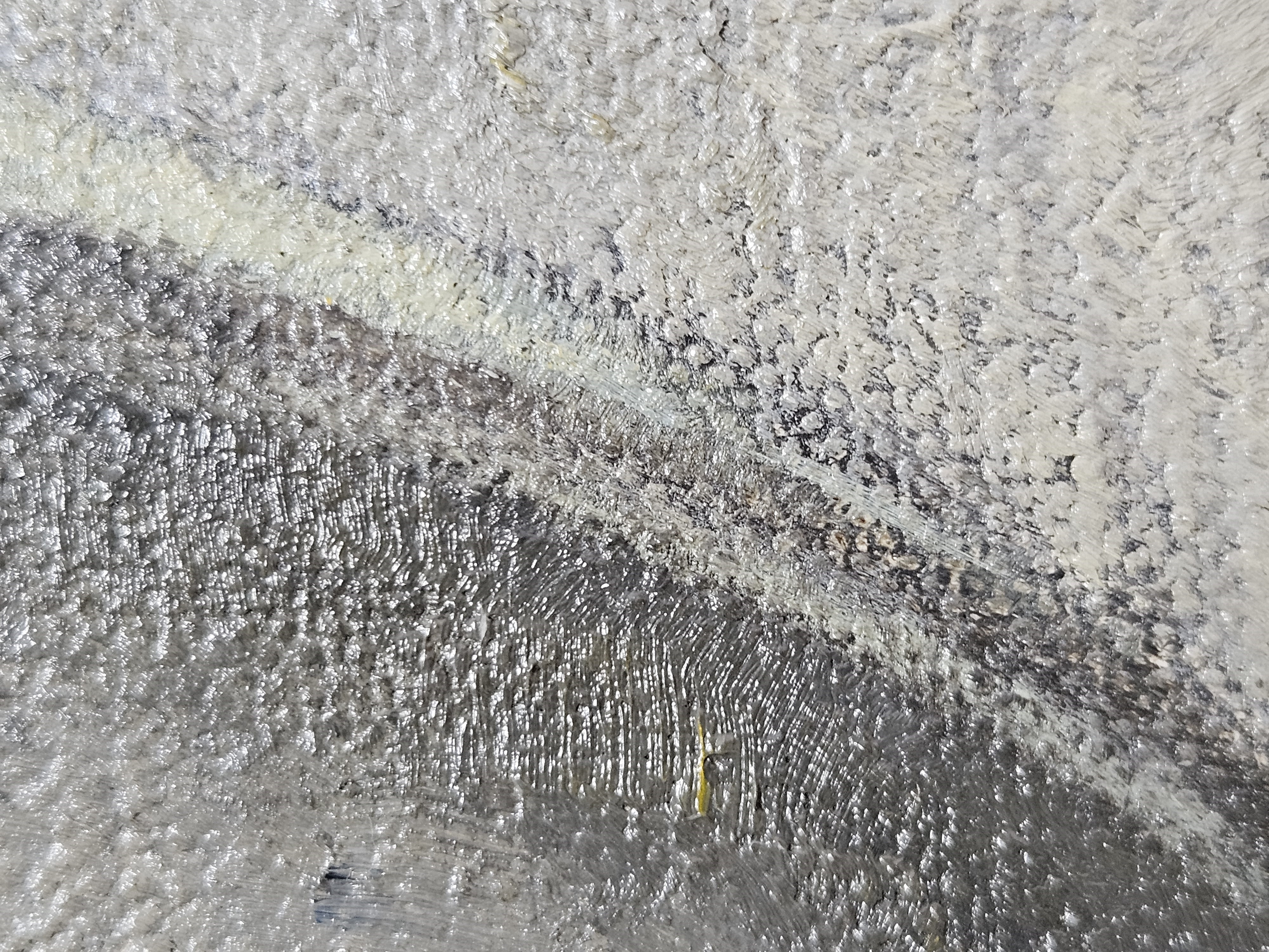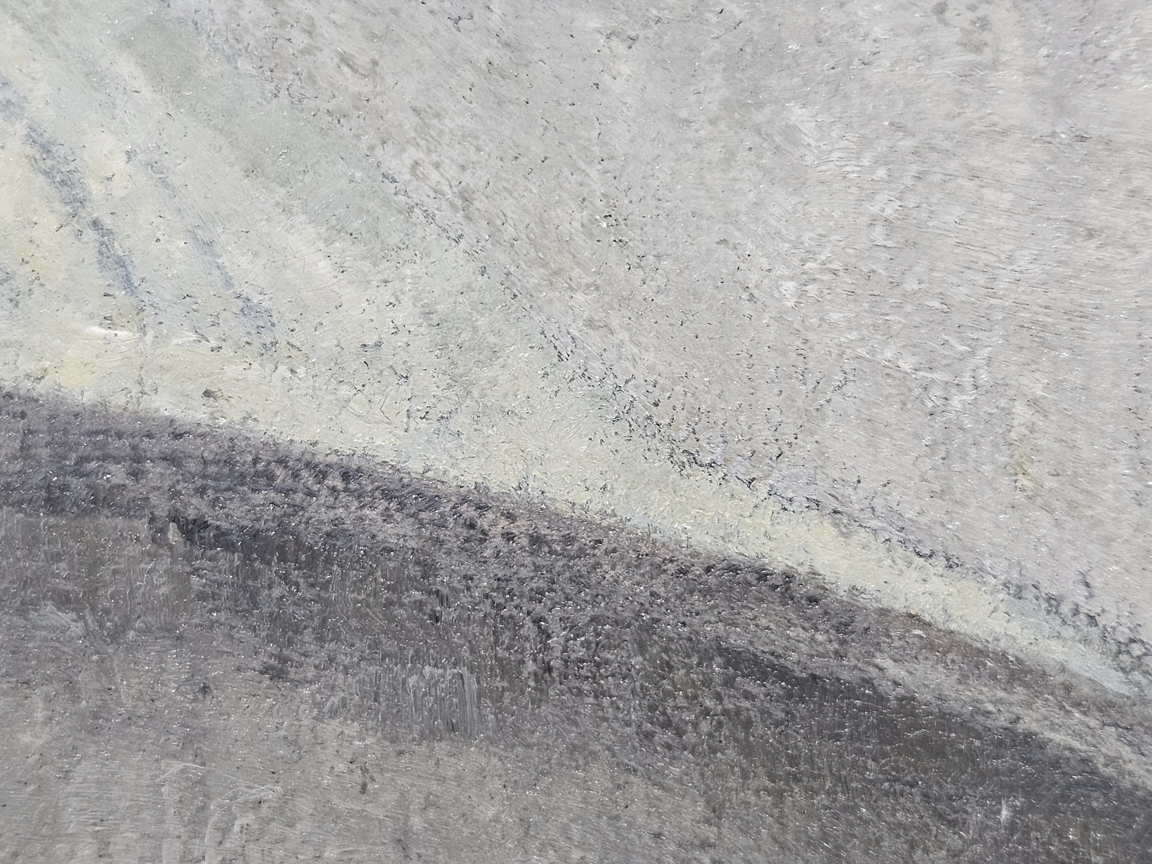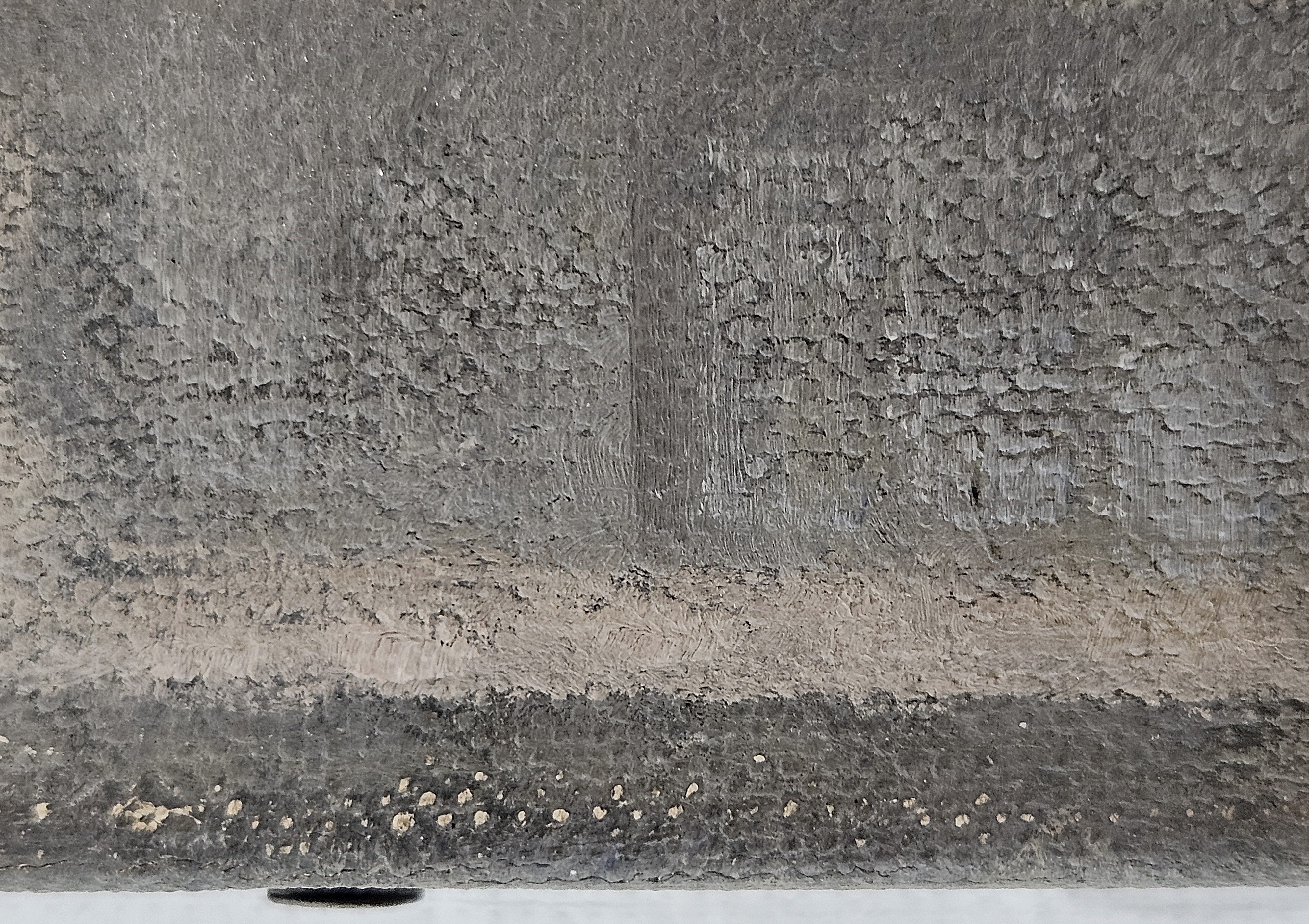 The ground layer is a preparatory layer applied directly to the support to create a smooth surface for painting. It is typically opaque and monochrome in color, providing a neutral base that influences the subsequent application of paint layers and the final appearance of the painting. The composition of the ground layer varies depending on the type of support and the historical period of the artwork. Hammershøi typically painted on white and industrially primed canvasses.
