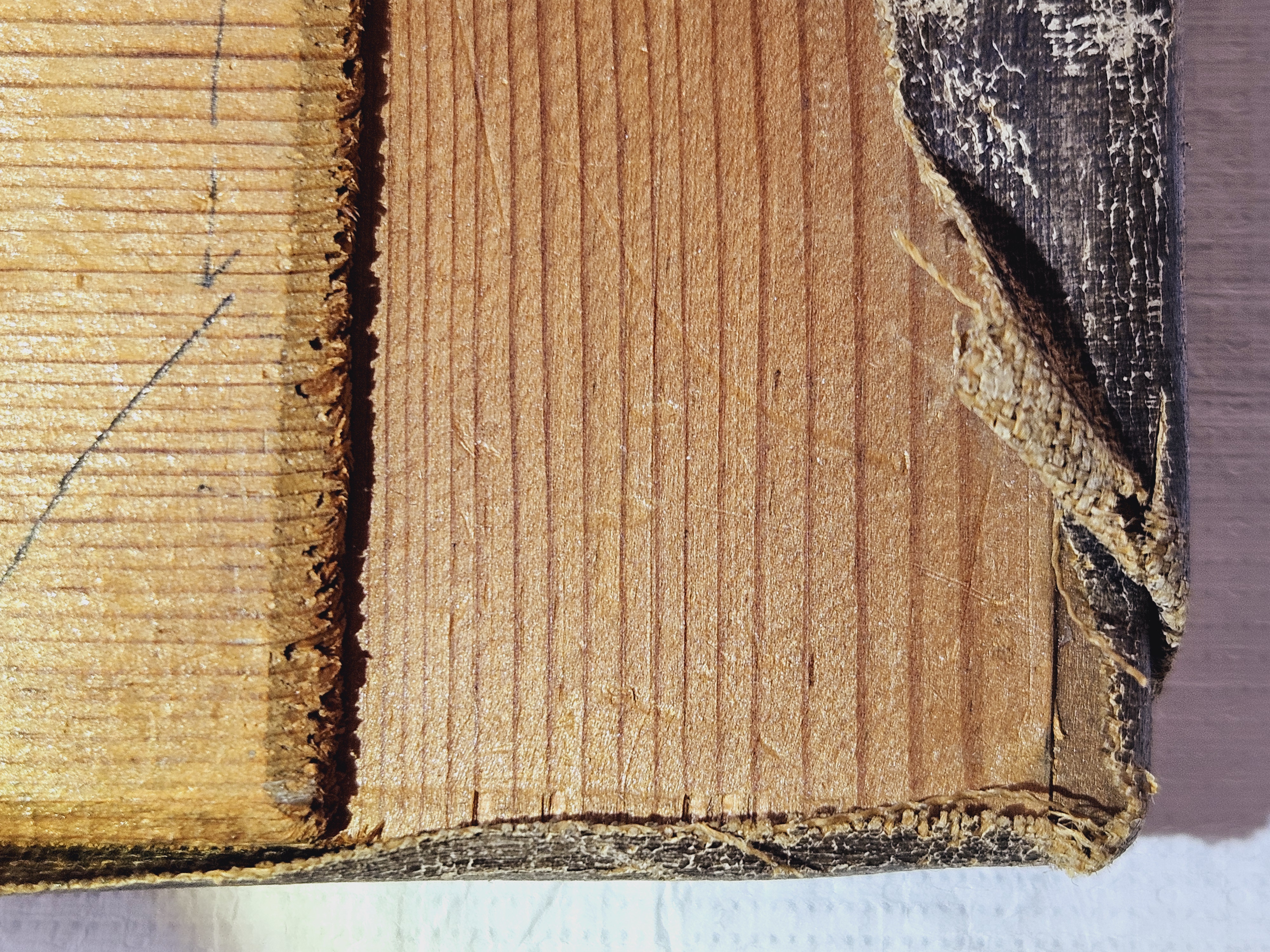 The paint, including details of the composition, continues onto the right-hand tacking edge, indicating that the painting was executed partly while mounted on a board or a larger working stretcher.