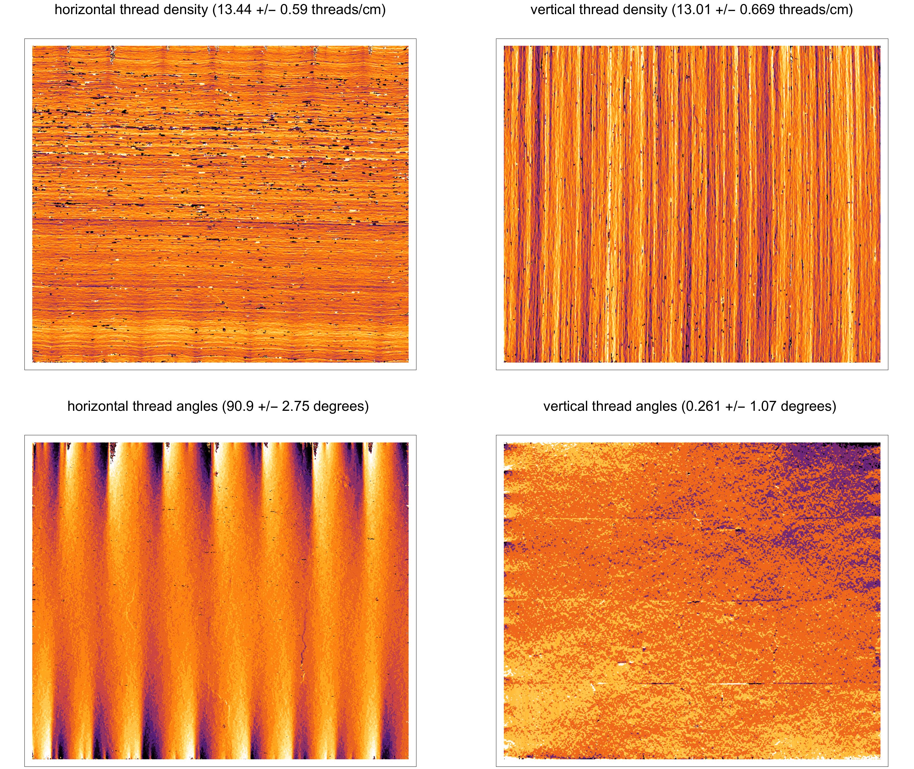 Weave maps are detailed visualisations of the thread patterns in a canvas, created by applying thread counting on high-resolution x-radiographs. These are used for analysing the structure of the canvas and to compare canvases used in different paintings. A comparison between weave maps can sometimes determine if two or more pieces of canvas derive from the same batch and thereby shed light on the place and period in which a painting has been created.