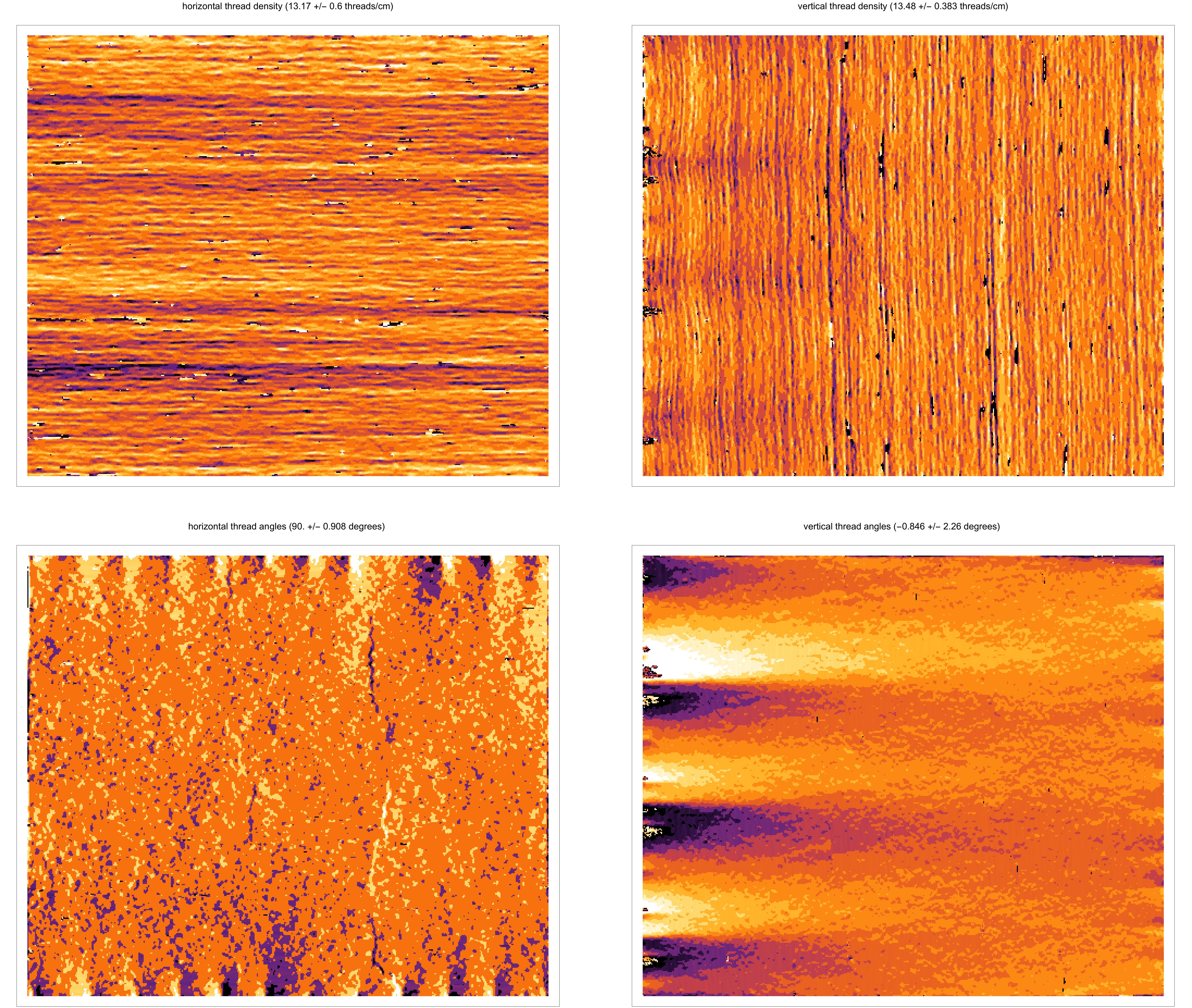 Weave maps are detailed visualisations of the thread patterns in a canvas, created by applying thread counting on high-resolution x-radiographs. These are used for analysing the structure of the canvas and to compare canvases used in different paintings. A comparison between weave maps can sometimes determine if two or more pieces of canvas derive from the same batch and thereby shed light on the place and period in which a painting has been created.