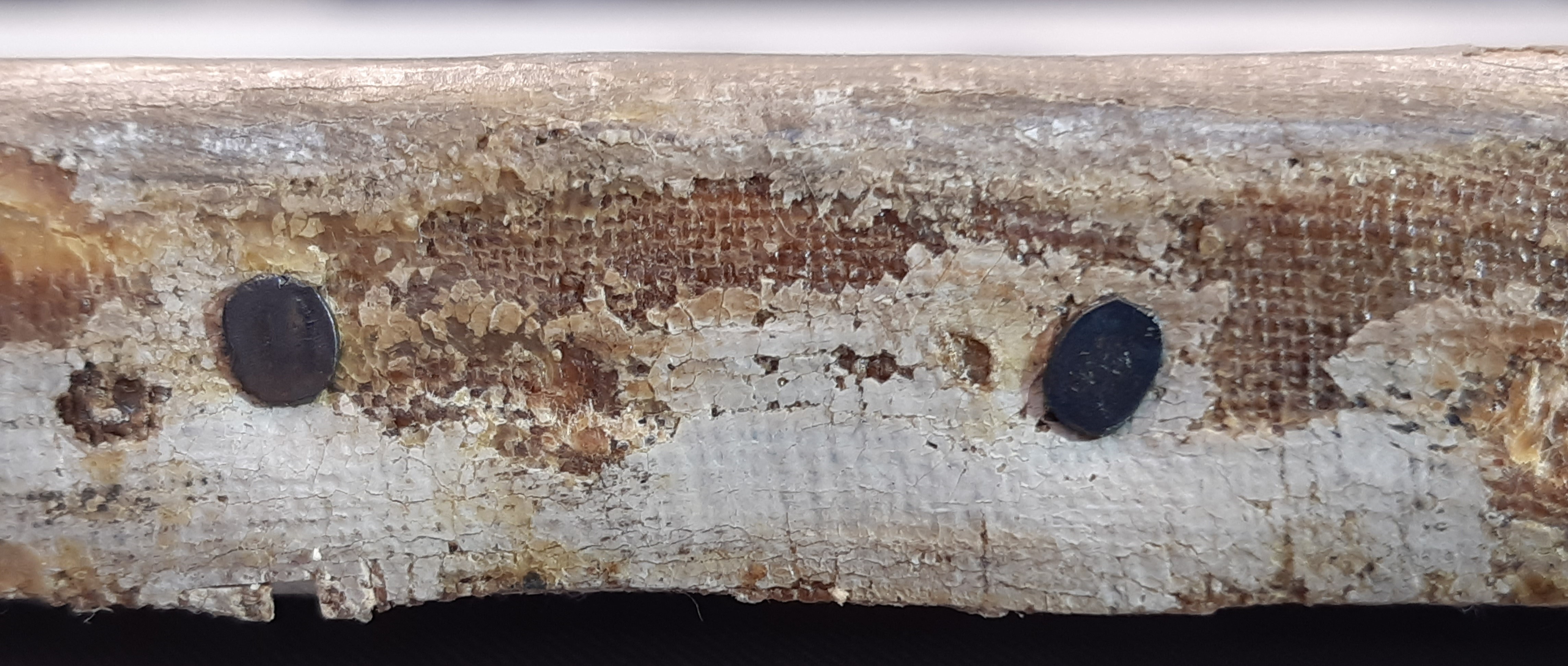 The lining canvas and the fine weave of the original canvas are camouflaging potential further secondary cusping.