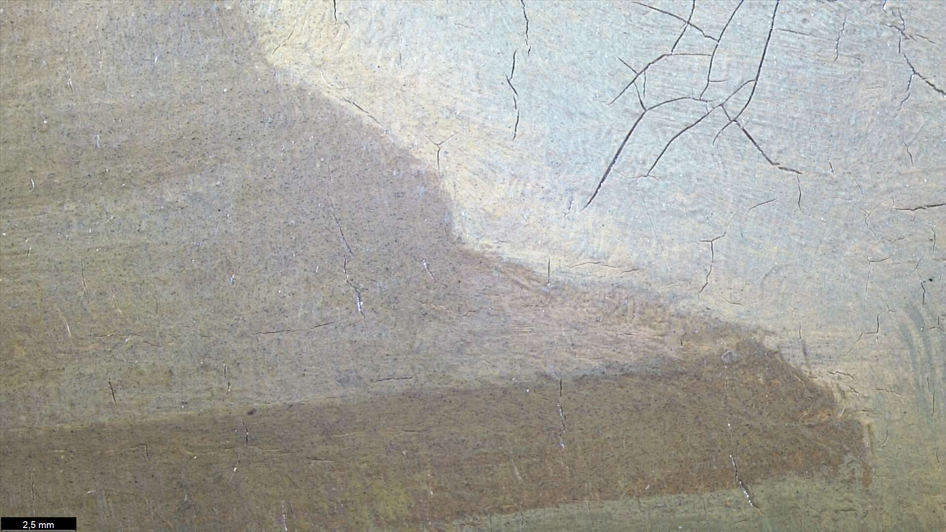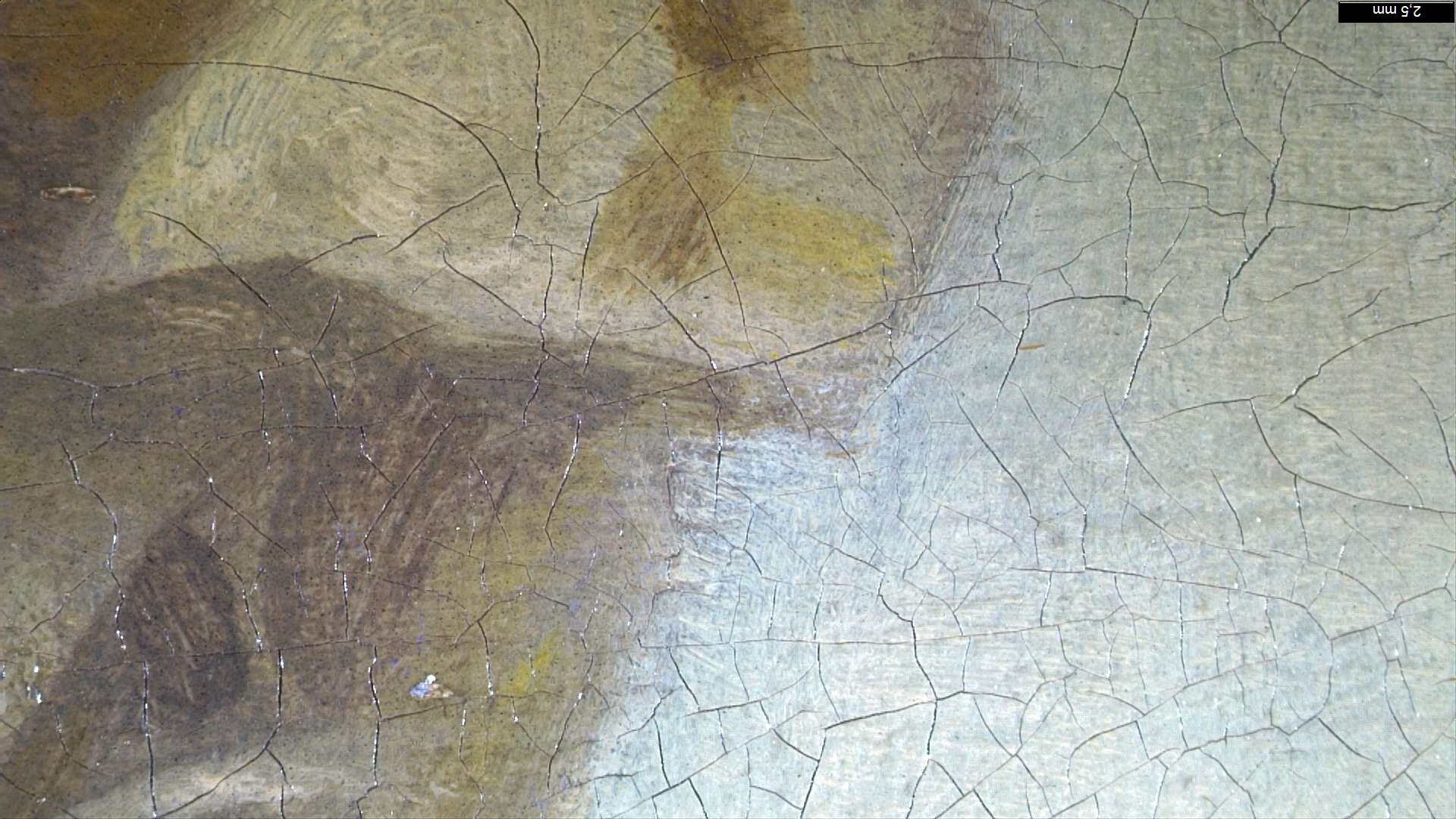 The underdrawing is a preliminary sketch applied directly onto the ground layer, serving as an outline for the composition or parts of it before the paint layers are added. These drawings are often not visible to the naked eye but can be revealed through infrared imaging (IRR and IR-R-IR) if carried out with a carbon-containing material on a light-coloured ground layer. The underdrawings can offer valuable insight into the artist’s creative process and planning, showing how the composition evolved prior to the final painting.