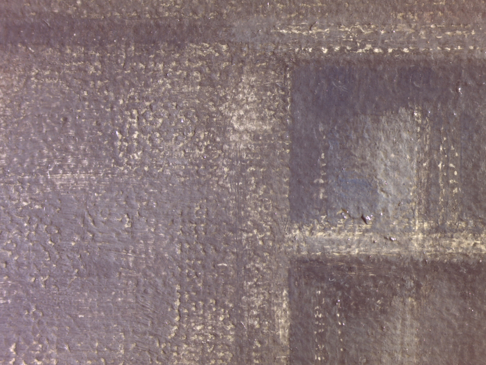 It is difficult to classify the layers in the painting into underpaint and paint layer, as the partly uncovered bottom paint layer plays a highly significant role in the overall optical effect. The scattered, open character of the upper paint layer enhances this role and makes it equally valid to identify the lower layer as part of the paint layer rather than underpainting.