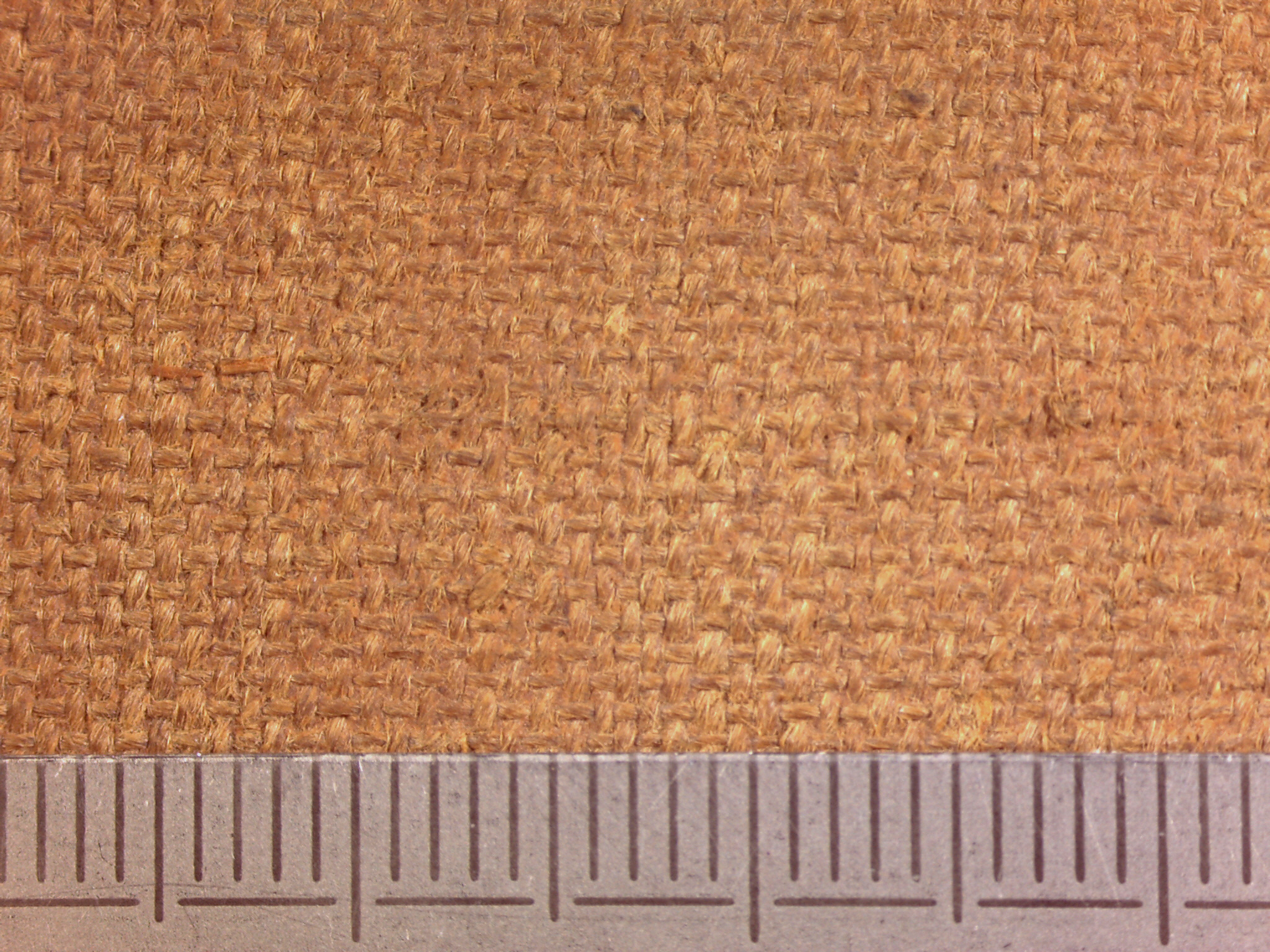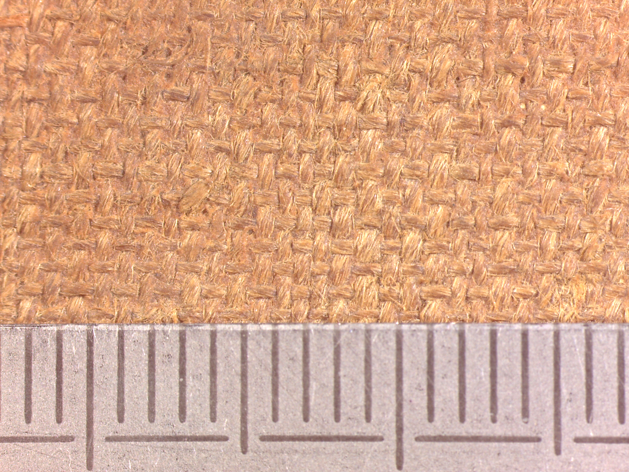 An industrial canvas with a fine to medium, tight weave and yarns of slightly uneven thickenss in both directions.