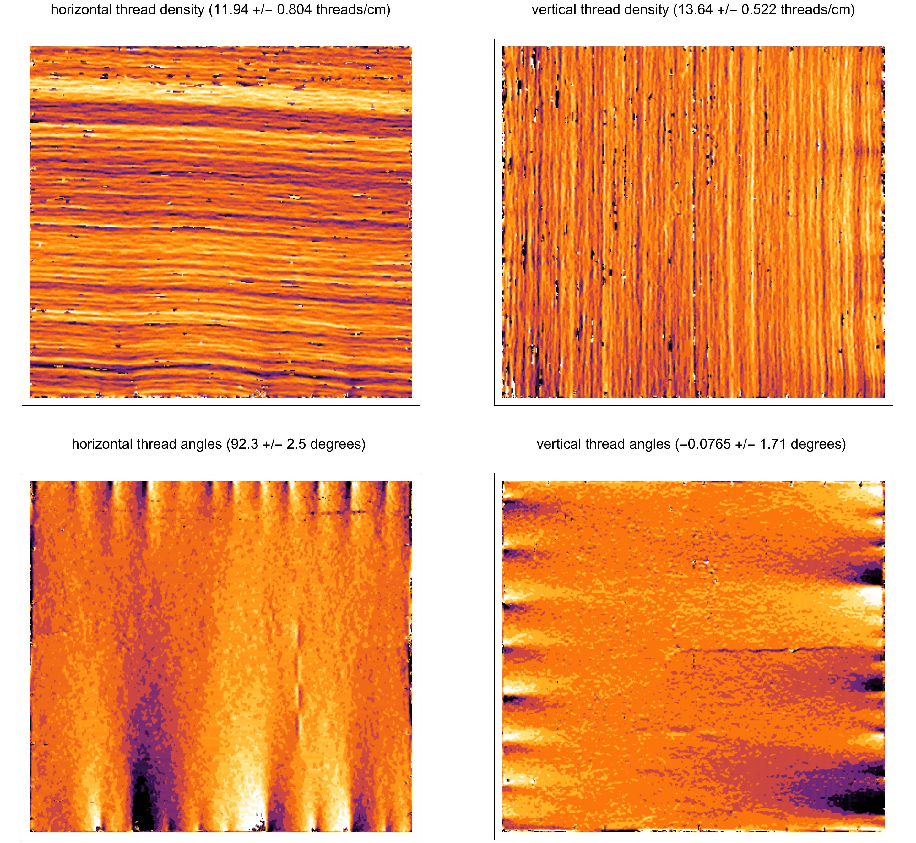 Weave maps are detailed visualisations of the thread patterns in a canvas, created by applying thread counting on high-resolution x-radiographs. These are used for analysing the structure of the canvas and to compare canvases used in different paintings. A comparison between weave maps can sometimes determine if two or more pieces of canvas derive from the same batch and thereby shed light on the place and period in which a painting has been created.
