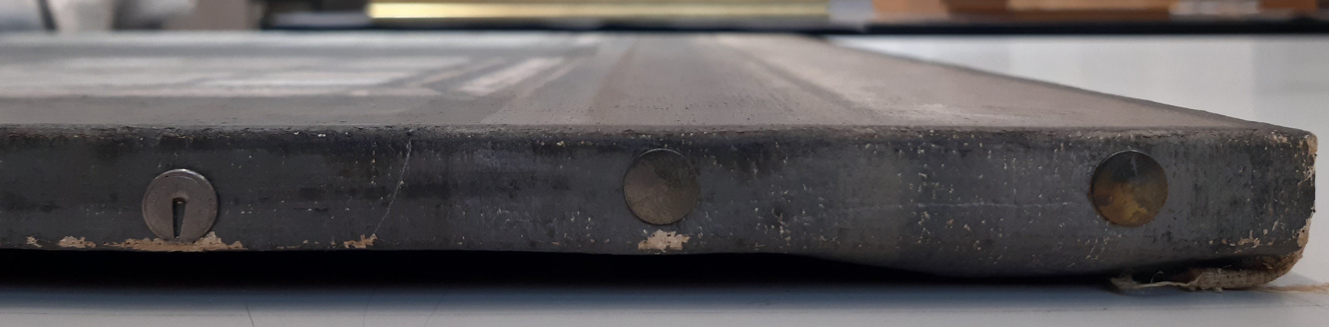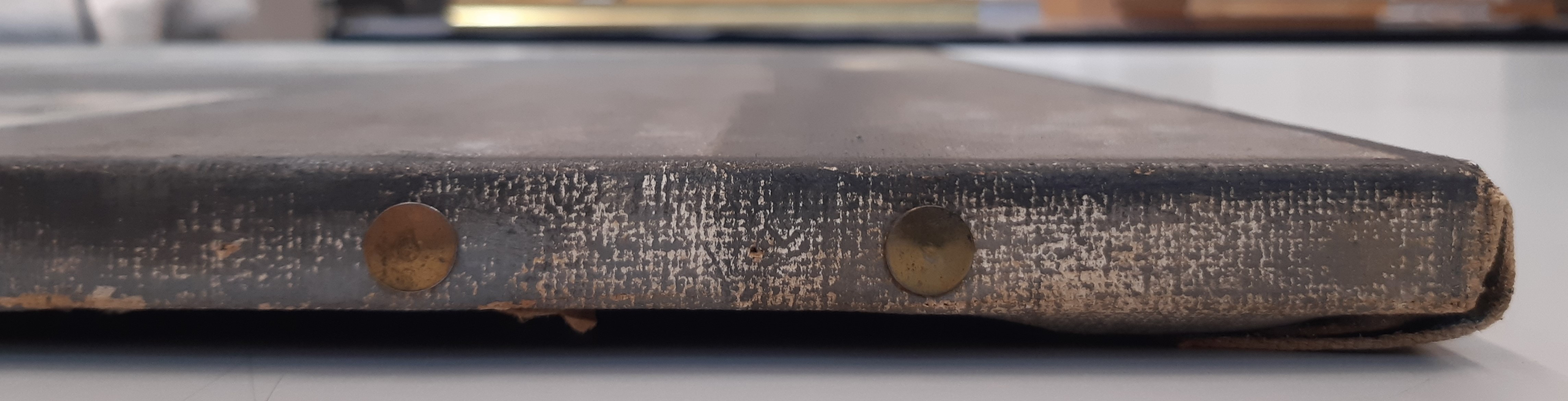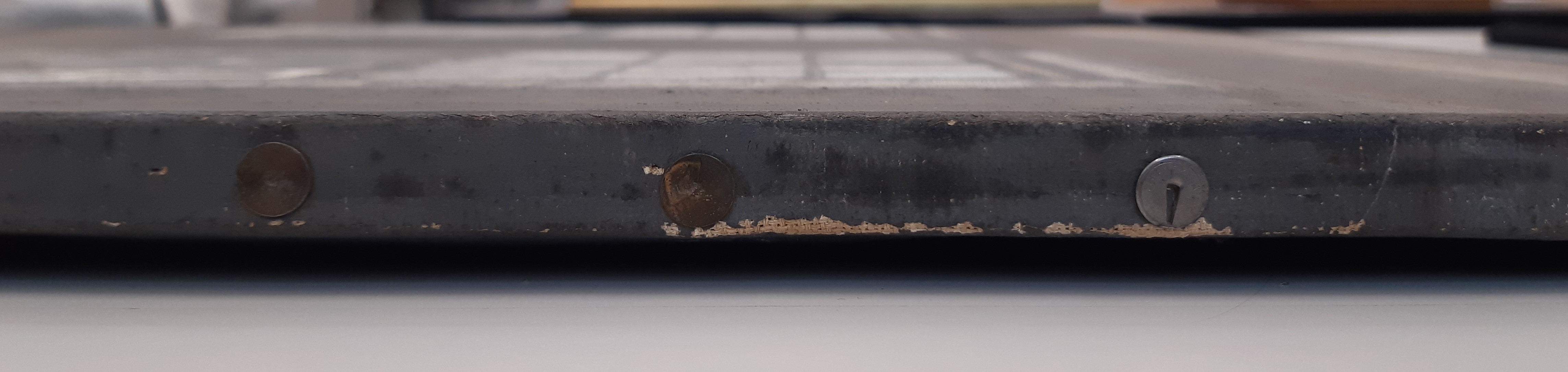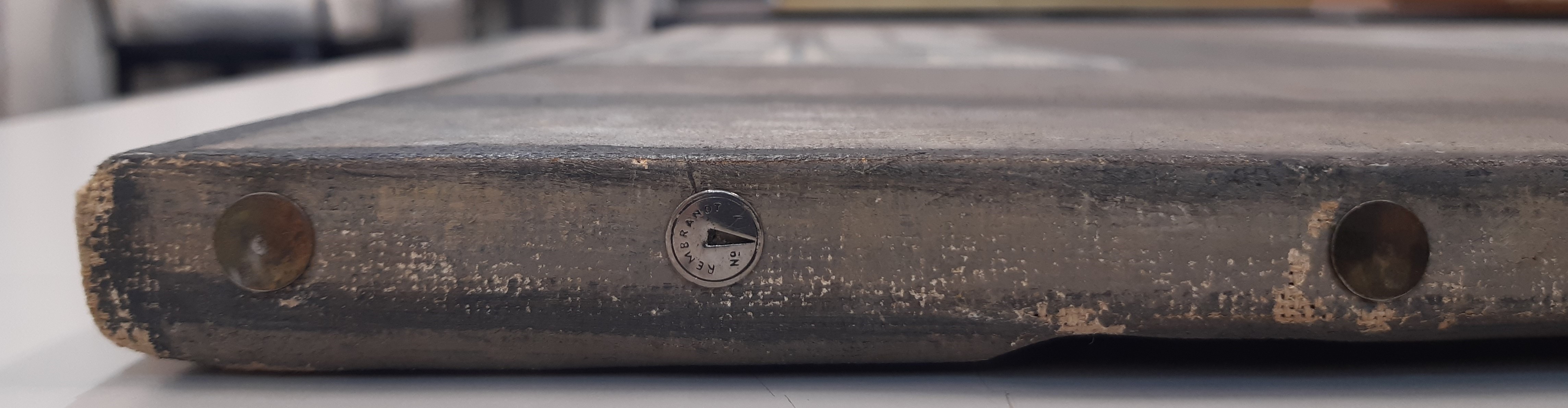 The tacking edges are fastened to the stretcher with drawing pins instead of nails.