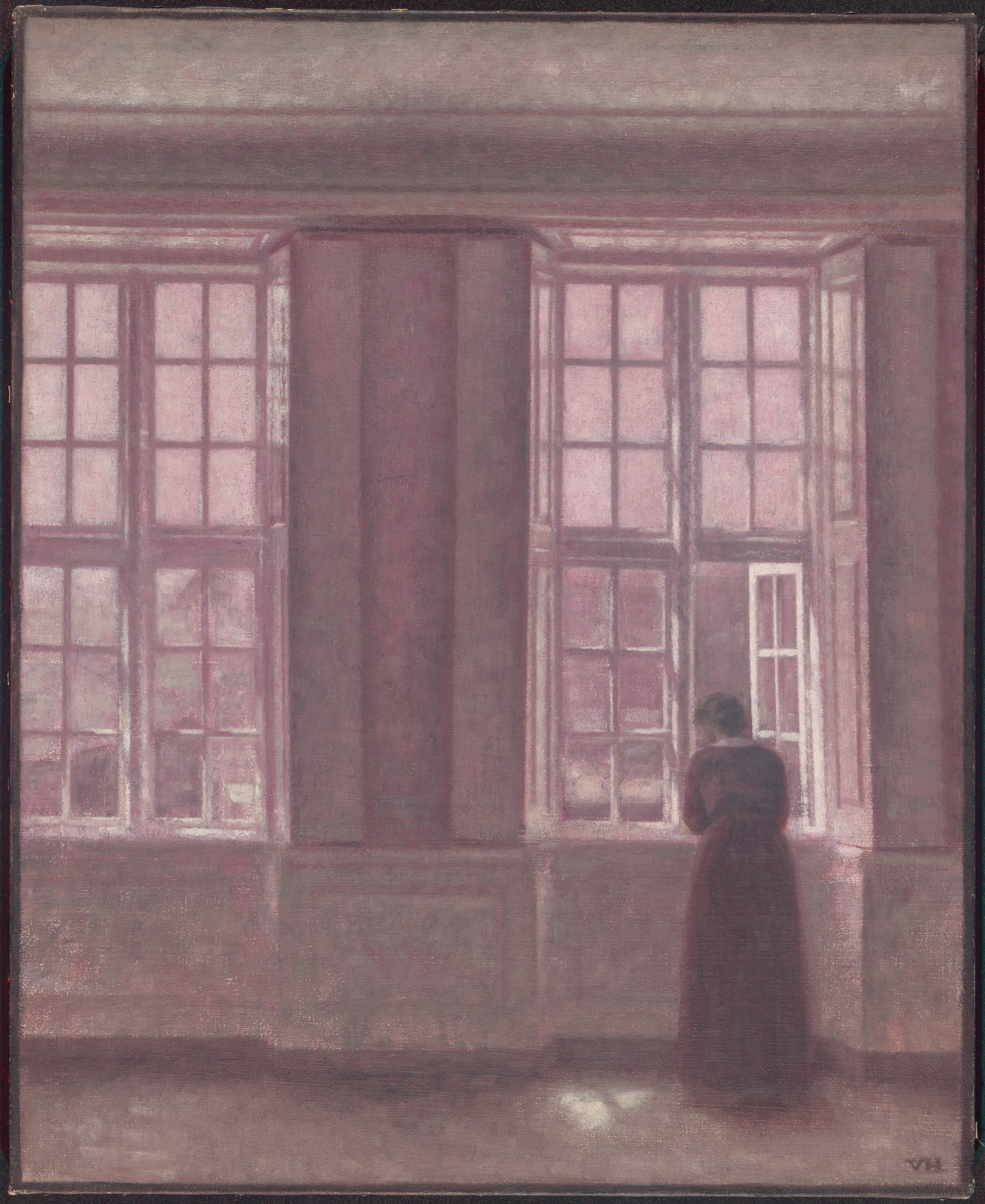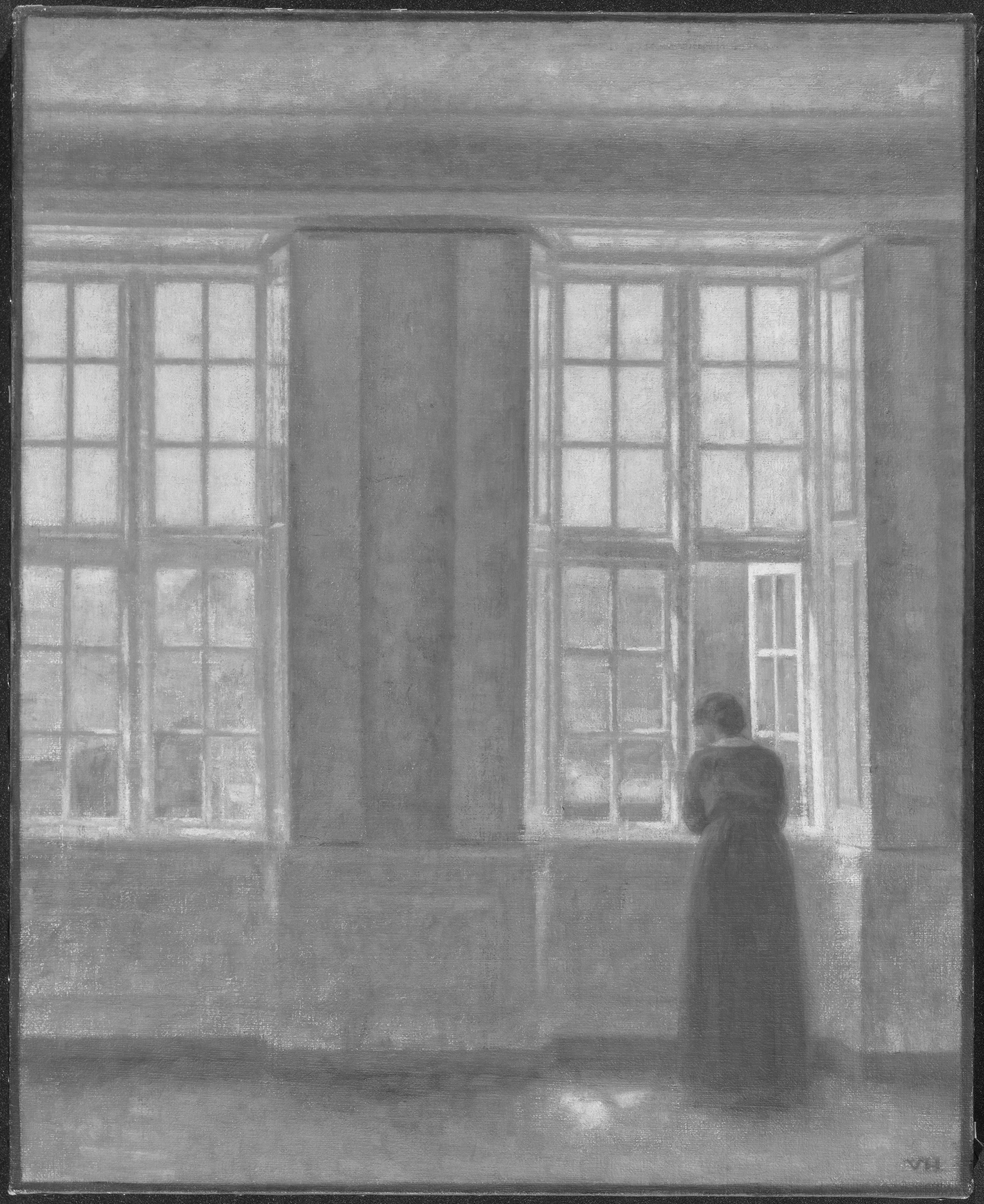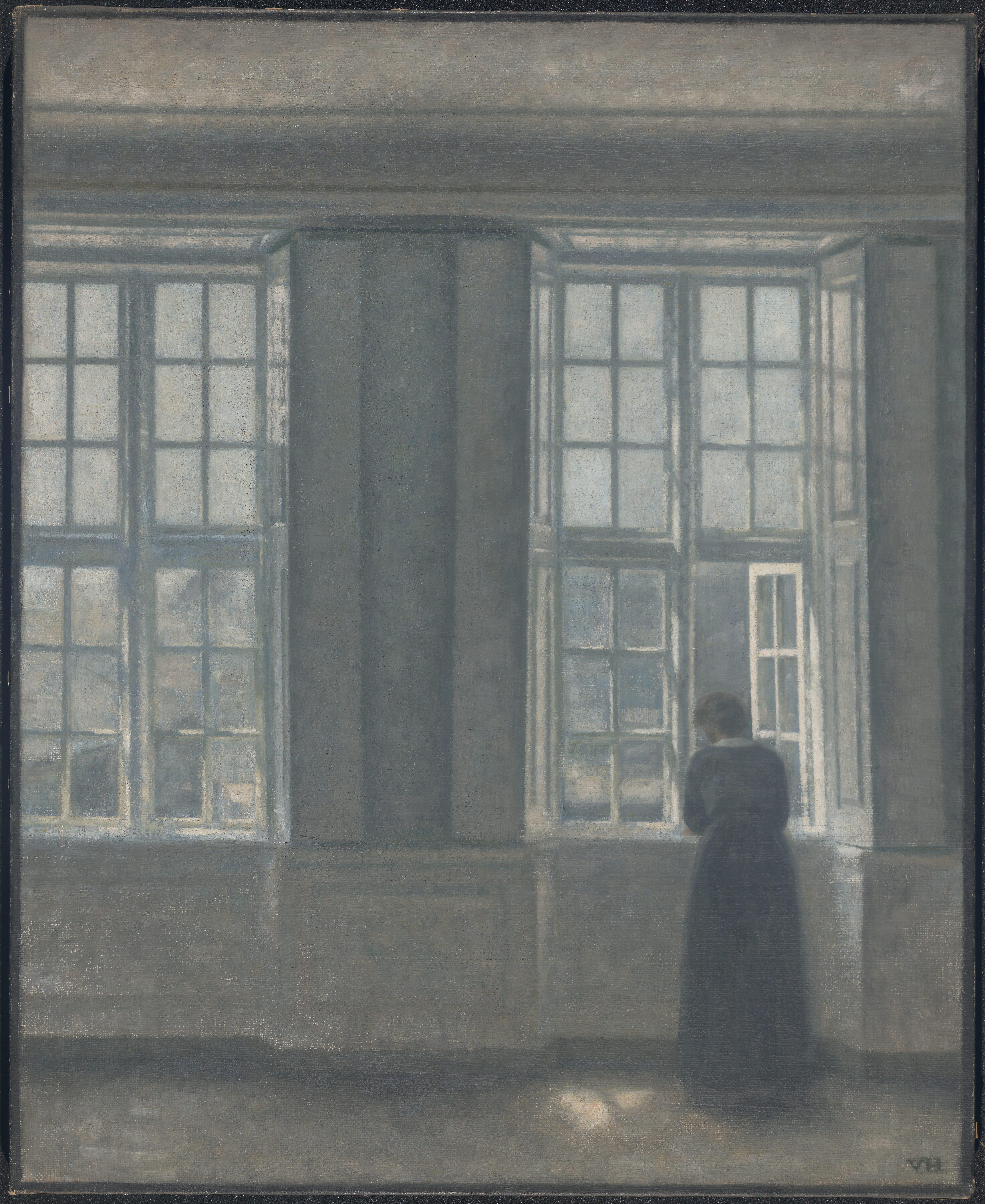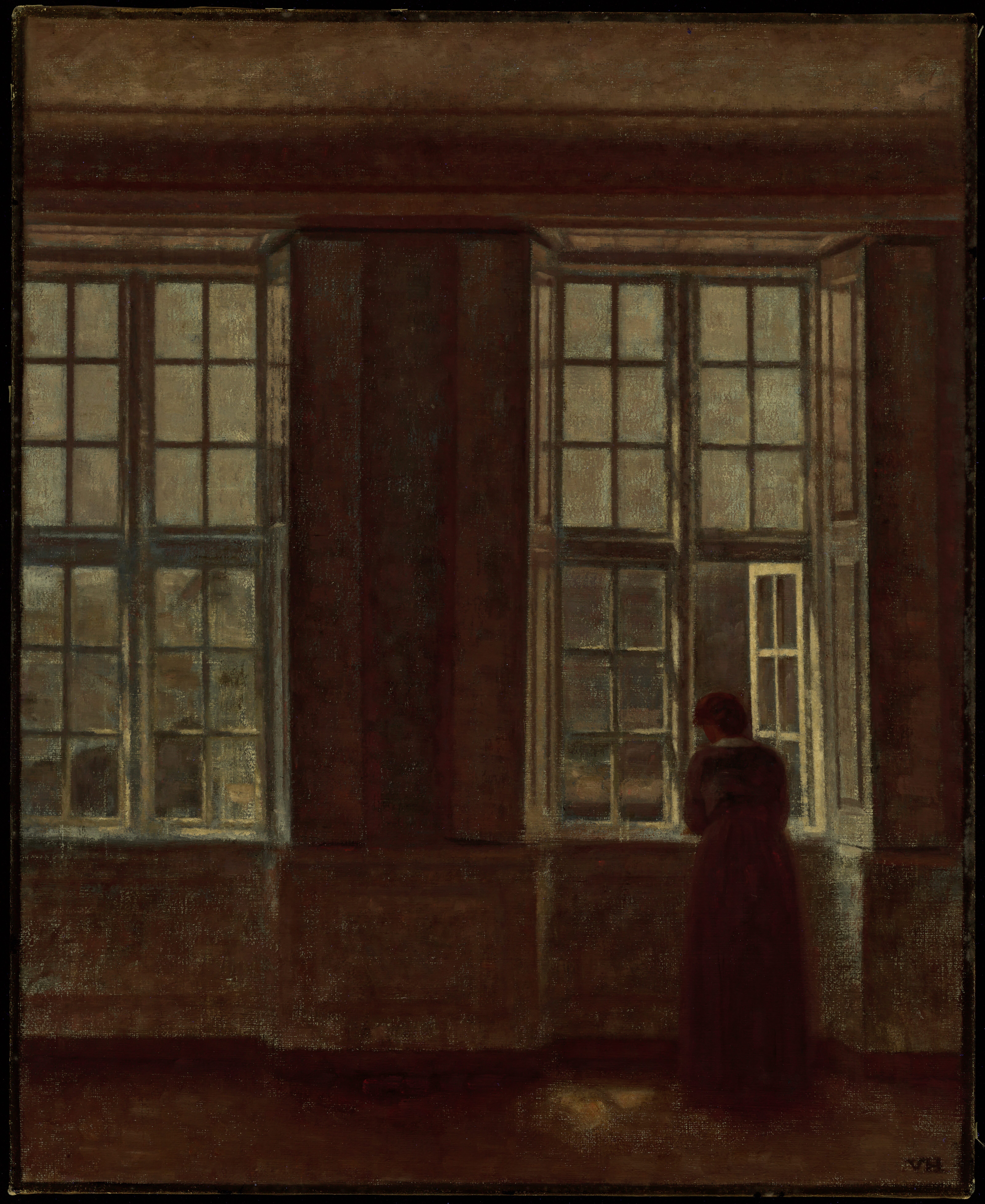 Painted in the apartment at Strandgade 25, Christianshavn, Copenhagen where Hammershøi lived with his wife Ida from 1913 until his death in 1916. The building that used to house the Asiatisk Kompagni was originally built in the eighteenth century after drawings by the architect Philip de Lange. The Hammershøi couple had previously lived just at the other side of the street at Strandgade 30 and since then longed to come back to this area of the city.