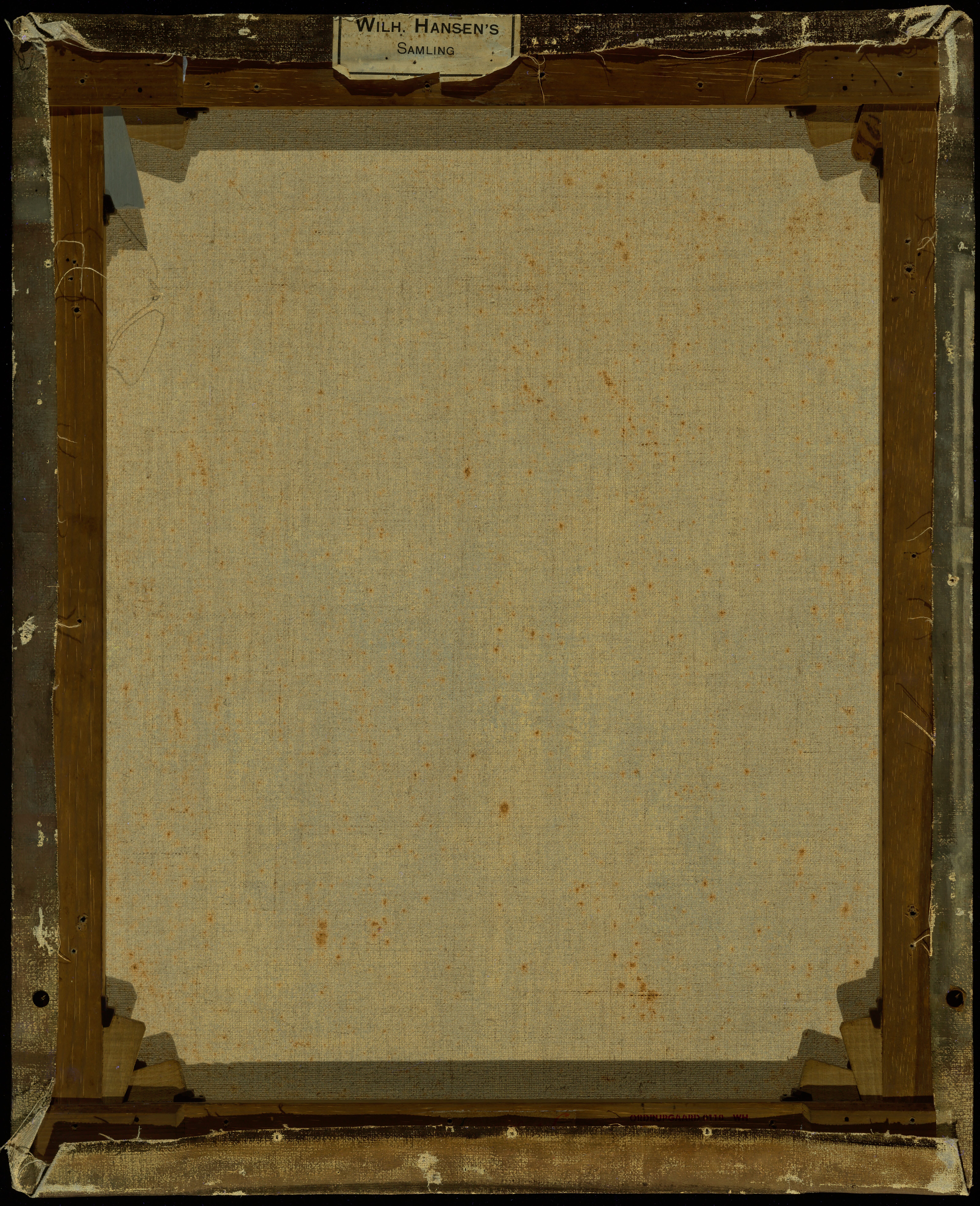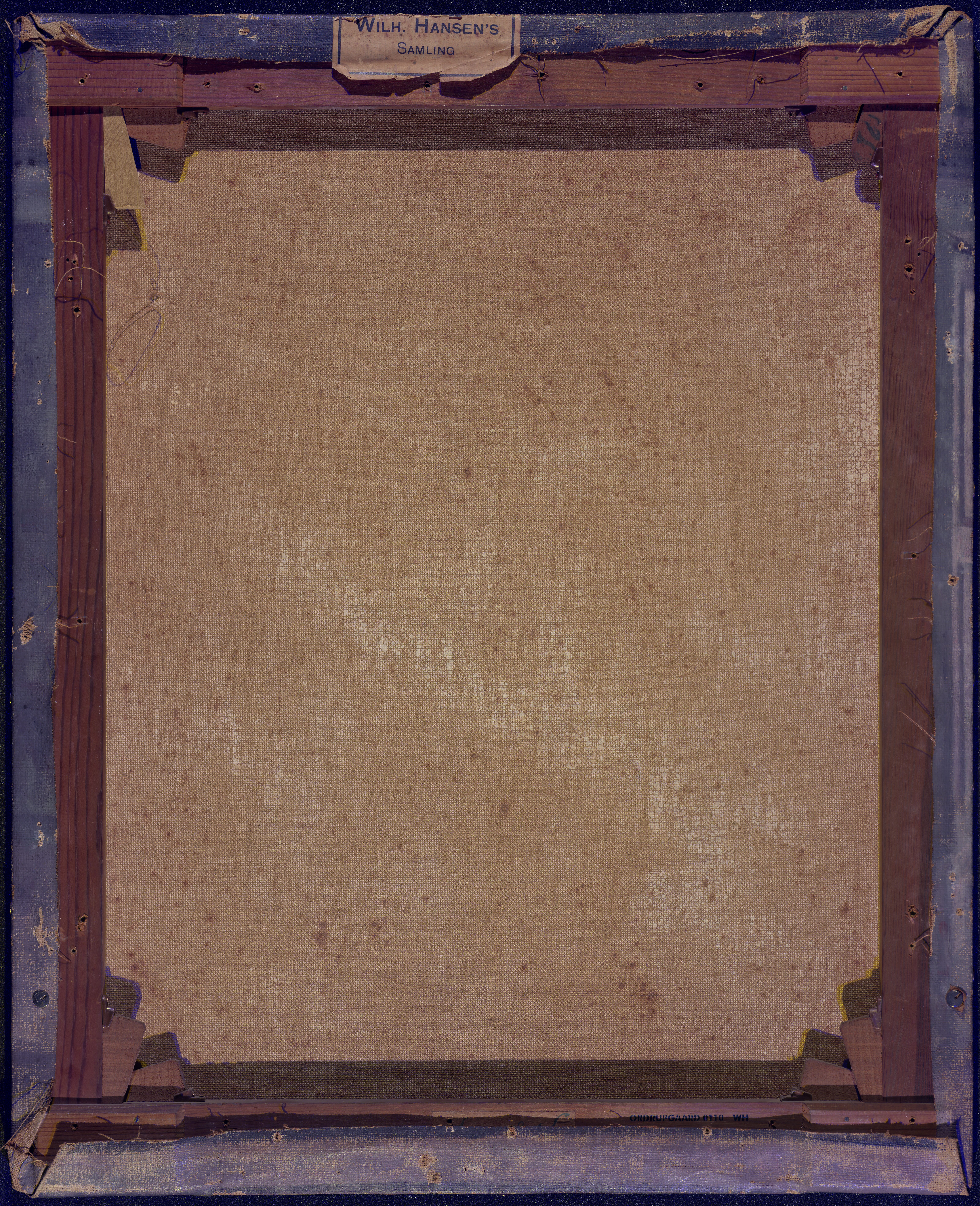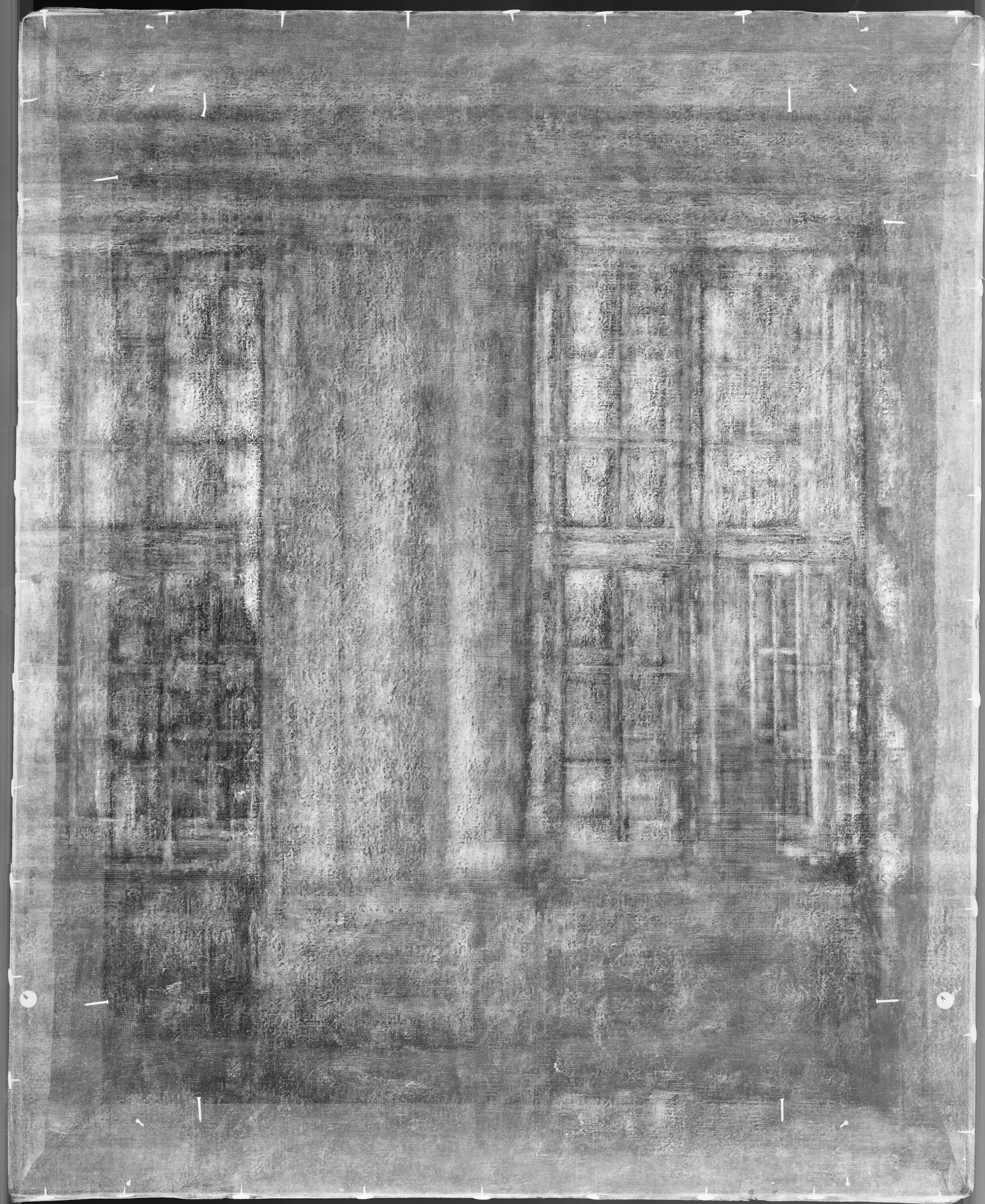 The ground layer is a preparatory layer applied directly to the support to create a smooth surface for painting. It is typically opaque and monochrome in color, providing a neutral base that influences the subsequent application of paint layers and the final appearance of the painting. The composition of the ground layer varies depending on the type of support and the historical period of the artwork. Hammershøi typically painted on white and industrially primed canvasses.