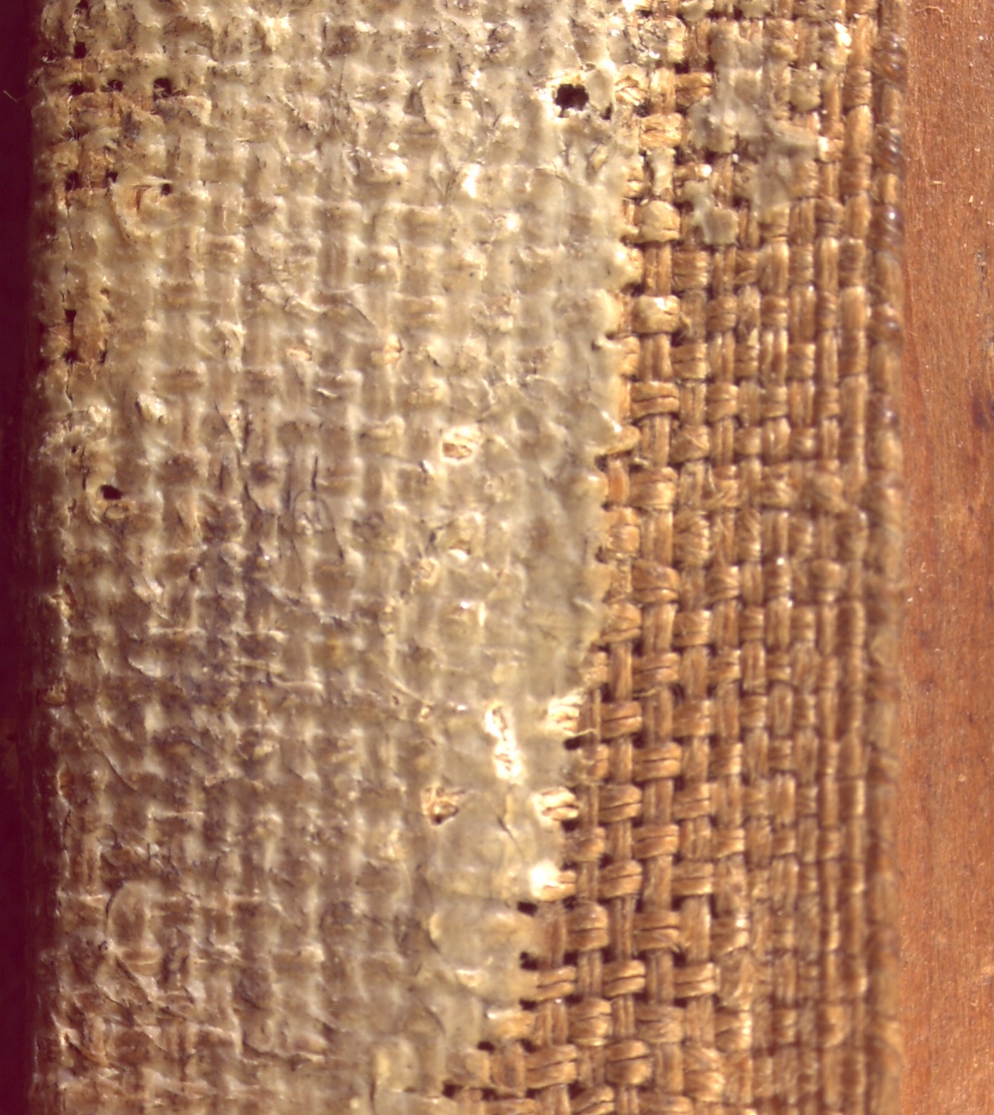 Many nails from the original stretching remain in the stretcher underneath the canvas and are visible in the X-radiograph.
