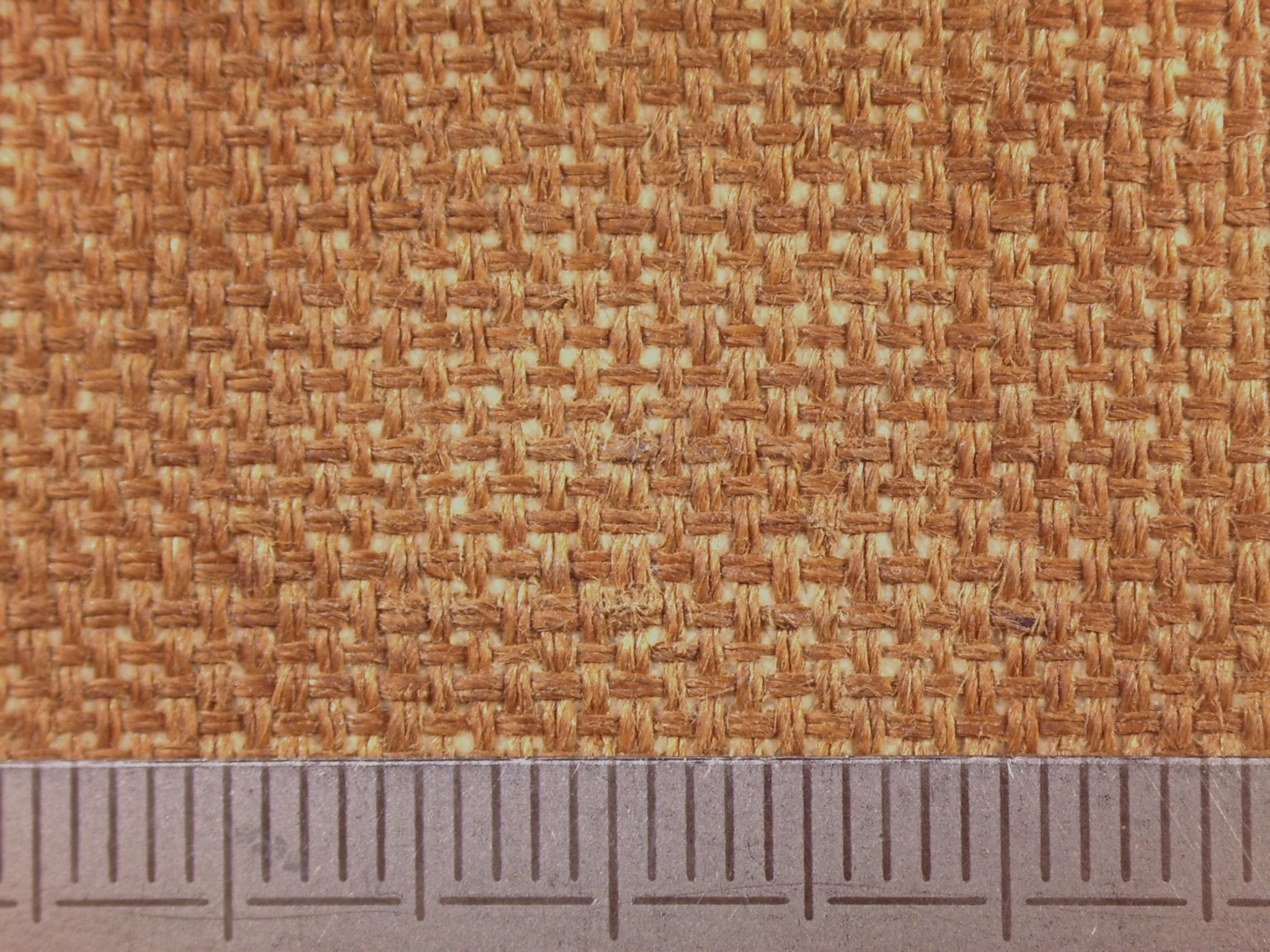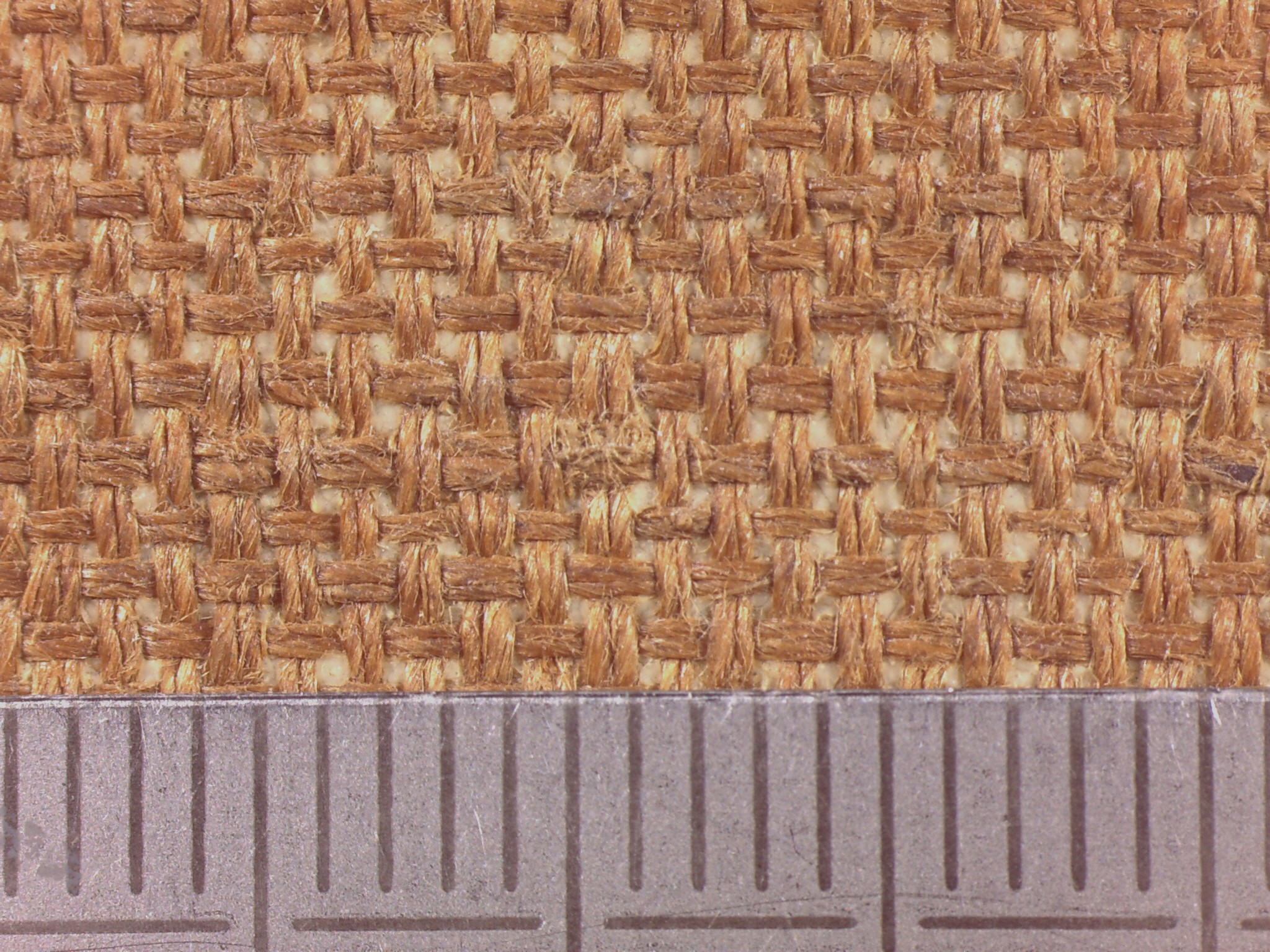 An industrial canvas with an even, slightly open weave and rather fine threads.