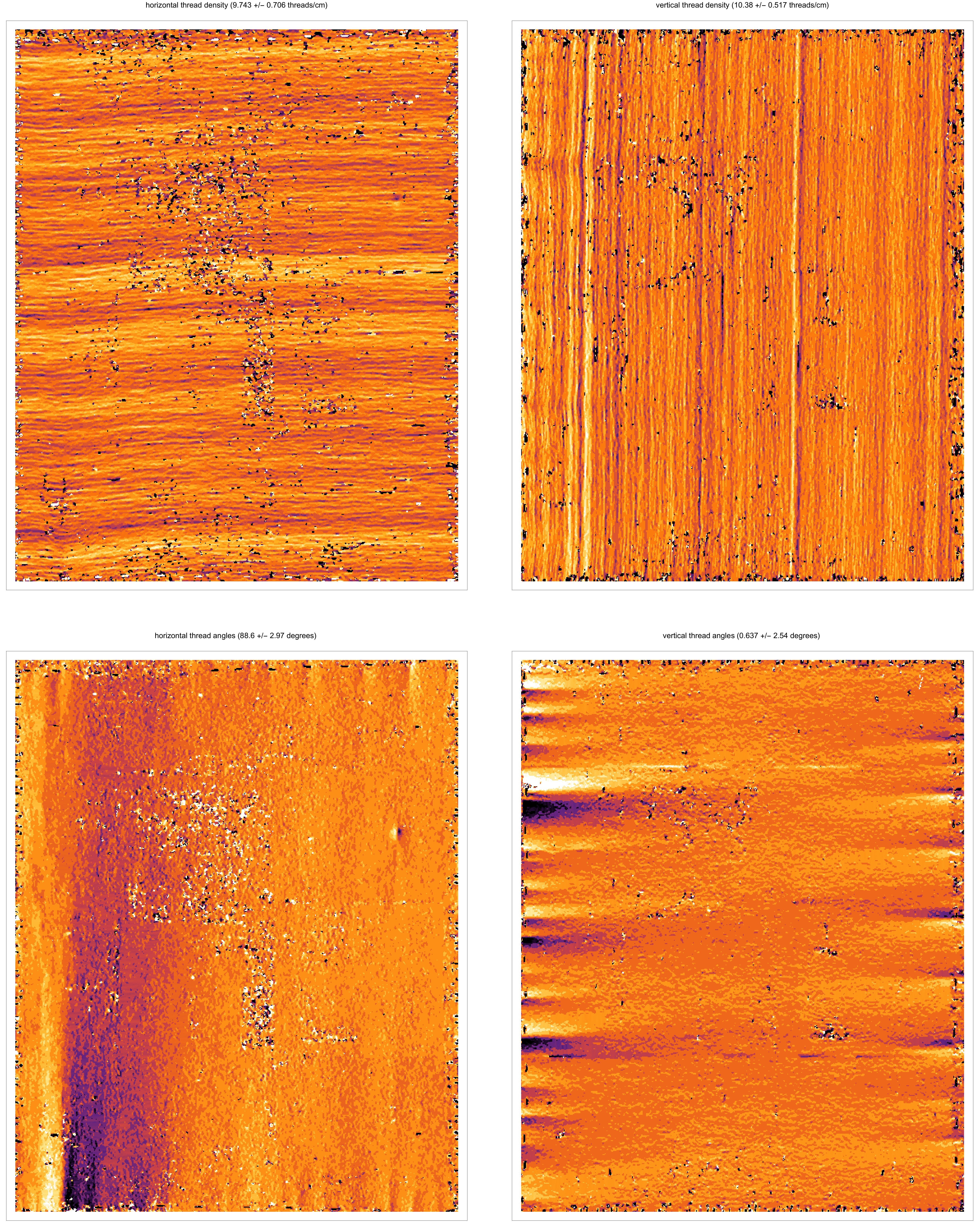 Weave maps are detailed visualisations of the thread patterns in a canvas, created by applying thread counting on high-resolution x-radiographs. These are used for analysing the structure of the canvas and to compare canvases used in different paintings. A comparison between weave maps can sometimes determine if two or more pieces of canvas derive from the same batch and thereby shed light on the place and period in which a painting has been created.