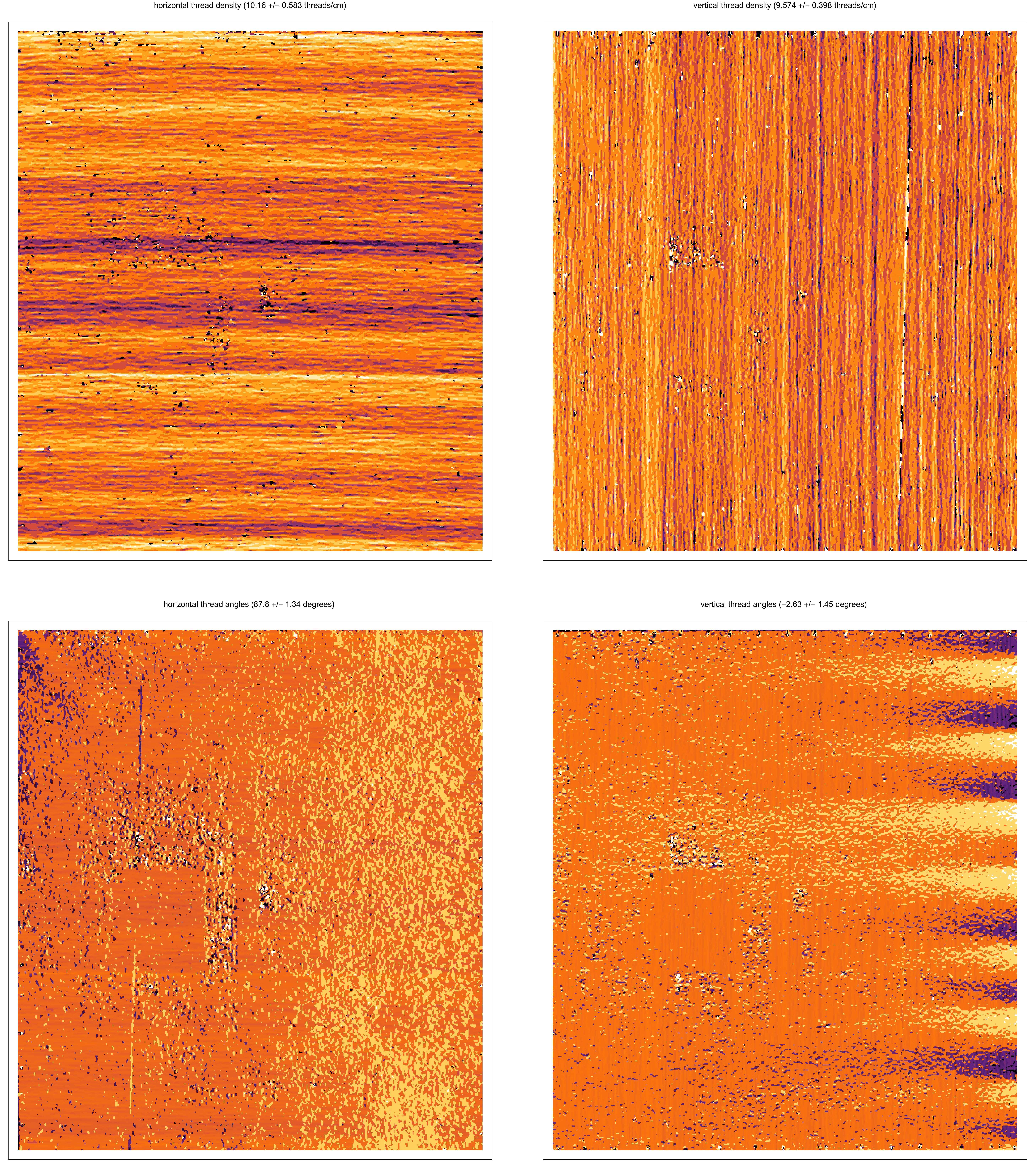 Weave maps are detailed visualisations of the thread patterns in a canvas, created by applying thread counting on high-resolution x-radiographs. These are used for analysing the structure of the canvas and to compare canvases used in different paintings. A comparison between weave maps can sometimes determine if two or more pieces of canvas derive from the same batch and thereby shed light on the place and period in which a painting has been created.