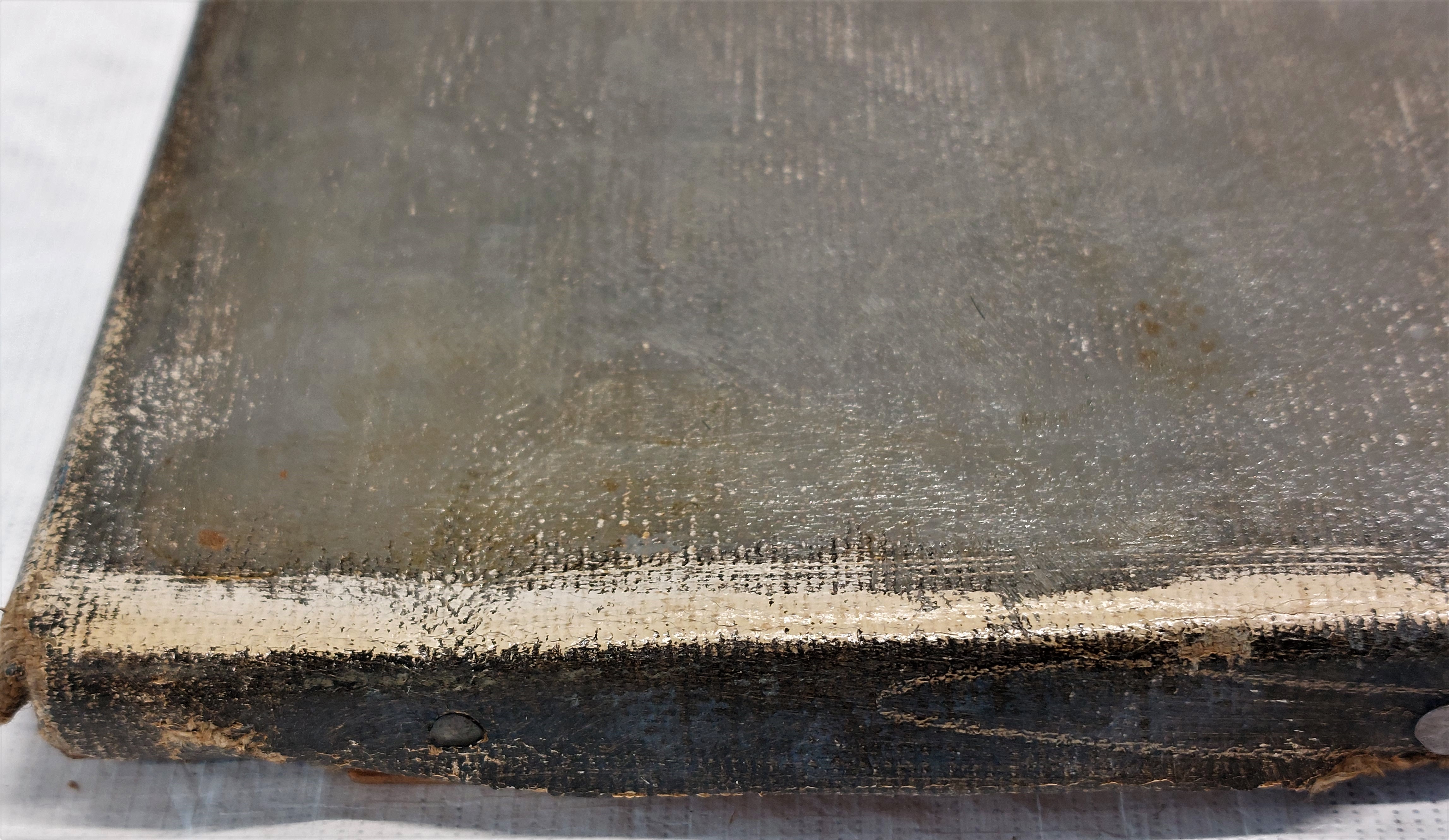 The ground layer is a preparatory layer applied directly to the support to create a smooth surface for painting. It is typically opaque and monochrome in color, providing a neutral base that influences the subsequent application of paint layers and the final appearance of the painting. The composition of the ground layer varies depending on the type of support and the historical period of the artwork. Hammershøi typically painted on white and industrially primed canvasses.