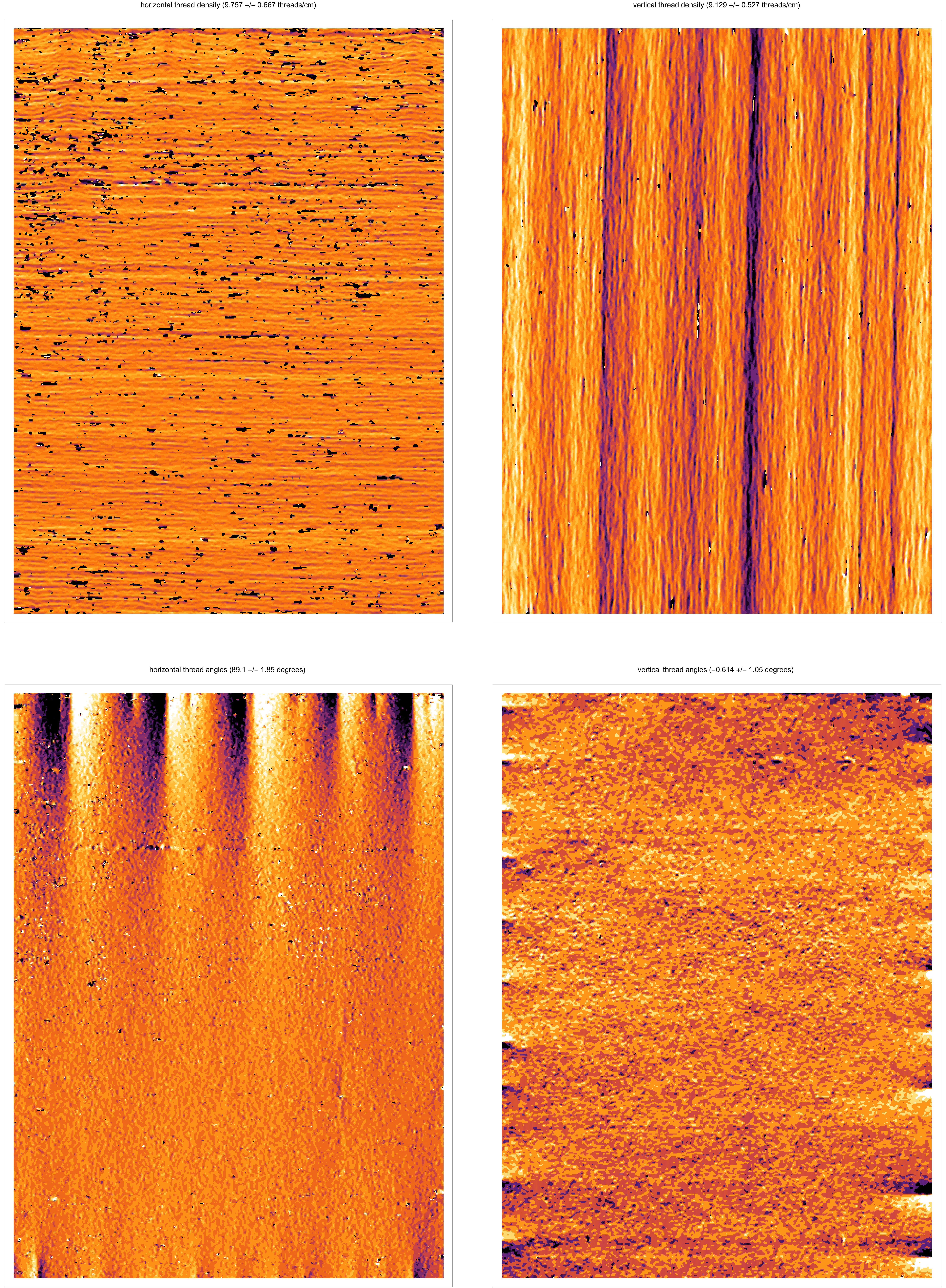 Weave maps are detailed visualisations of the thread patterns in a canvas, created by applying thread counting on high-resolution x-radiographs. These are used for analysing the structure of the canvas and to compare canvases used in different paintings. A comparison between weave maps can sometimes determine if two or more pieces of canvas derive from the same batch and thereby shed light on the place and period in which a painting has been created.