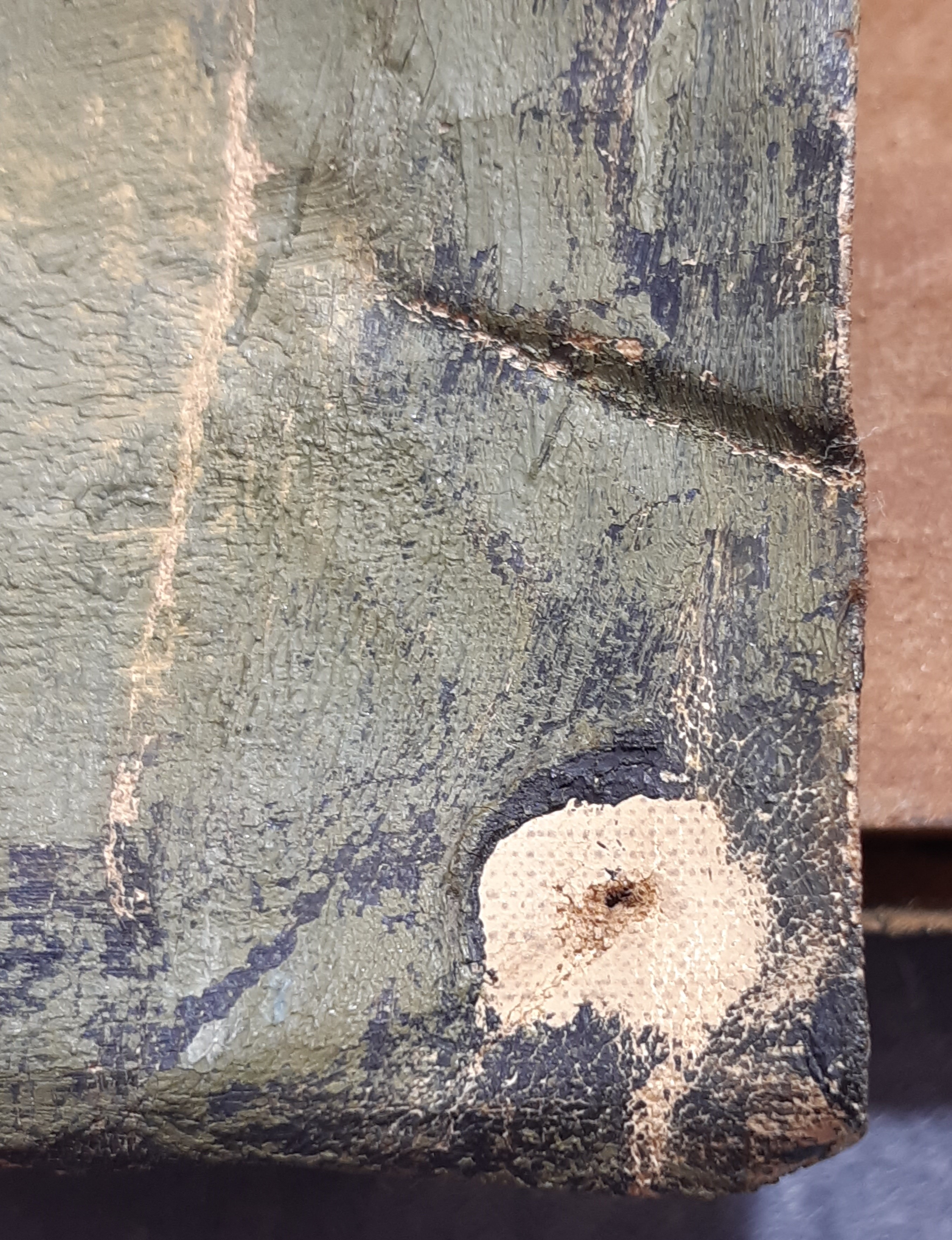 The support of a painting refers to the material on which the paint layers are applied. Over time, artists have used a variety of materials as supports, including canvas, wooden panels, copper plates, cardboard, and paper. The choice of support influences the painting’s texture, durability, and how it ages. It can also offer valuable insights into the artwork’s origin, technique, and historical context.