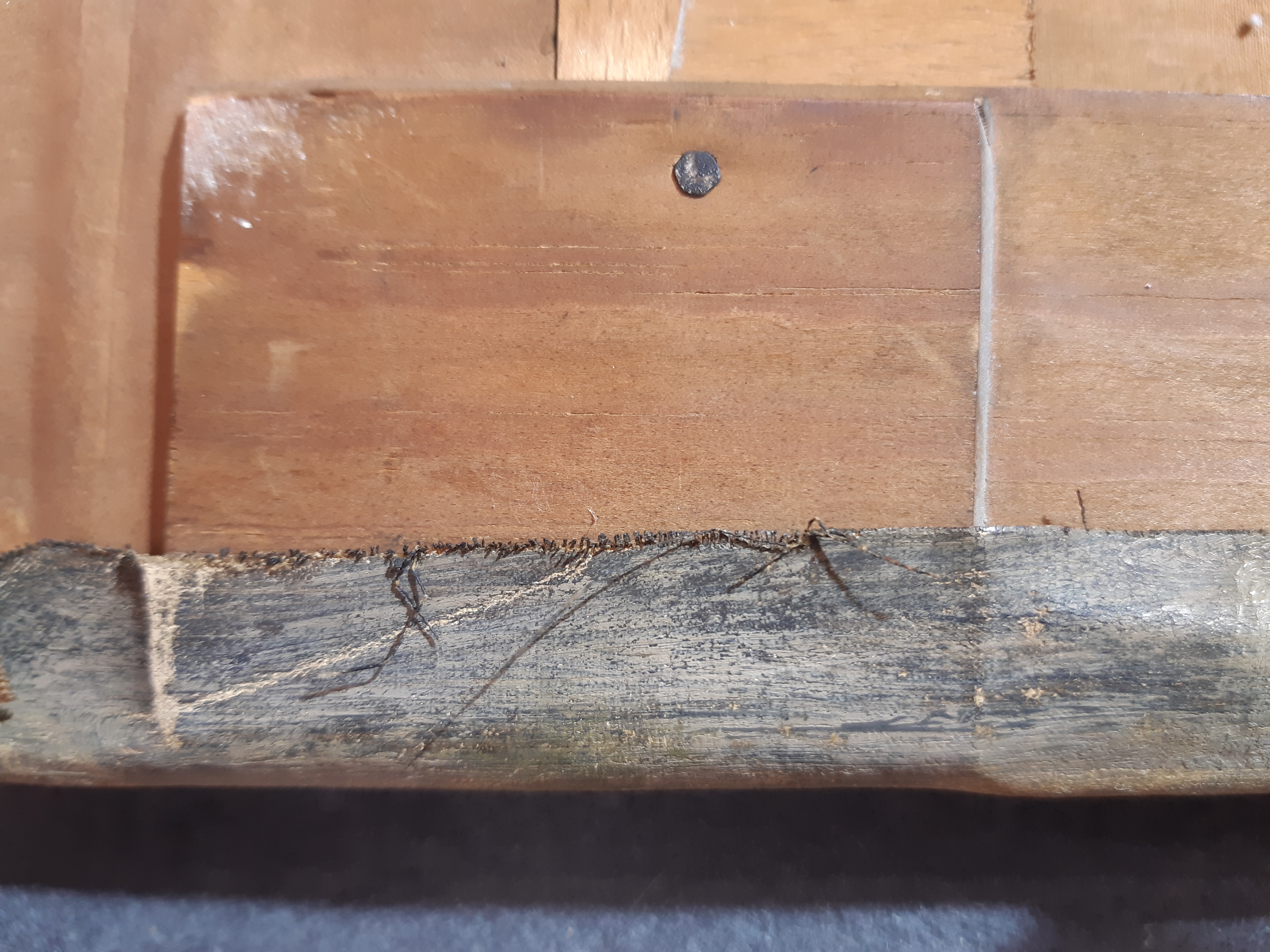 Lines of black paint along the top and left-hand edges, demarcating the final extent of the composition, show that the adjustment consisted of repositioning the elements of the landscape by reducing the width from both sides by c. 9 cm in all, and bringing the trees c. 6,5 cm towards the right, thereby closer to the centre of the painting. The height of the composition was reduced by c. 4,5 cm taken from the top of the sky.