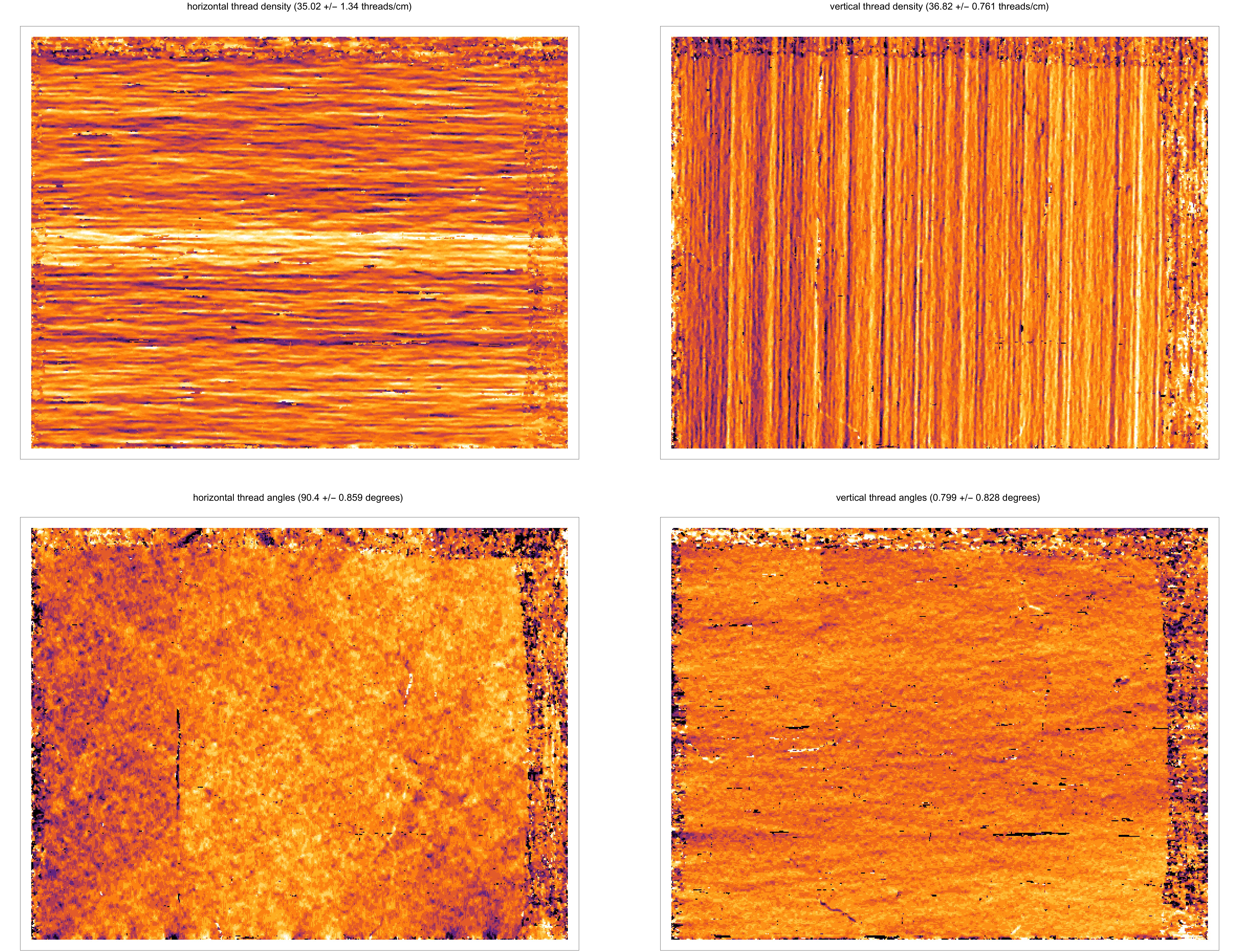 Weave maps are detailed visualisations of the thread patterns in a canvas, created by applying thread counting on high-resolution x-radiographs. These are used for analysing the structure of the canvas and to compare canvases used in different paintings. A comparison between weave maps can sometimes determine if two or more pieces of canvas derive from the same batch and thereby shed light on the place and period in which a painting has been created.