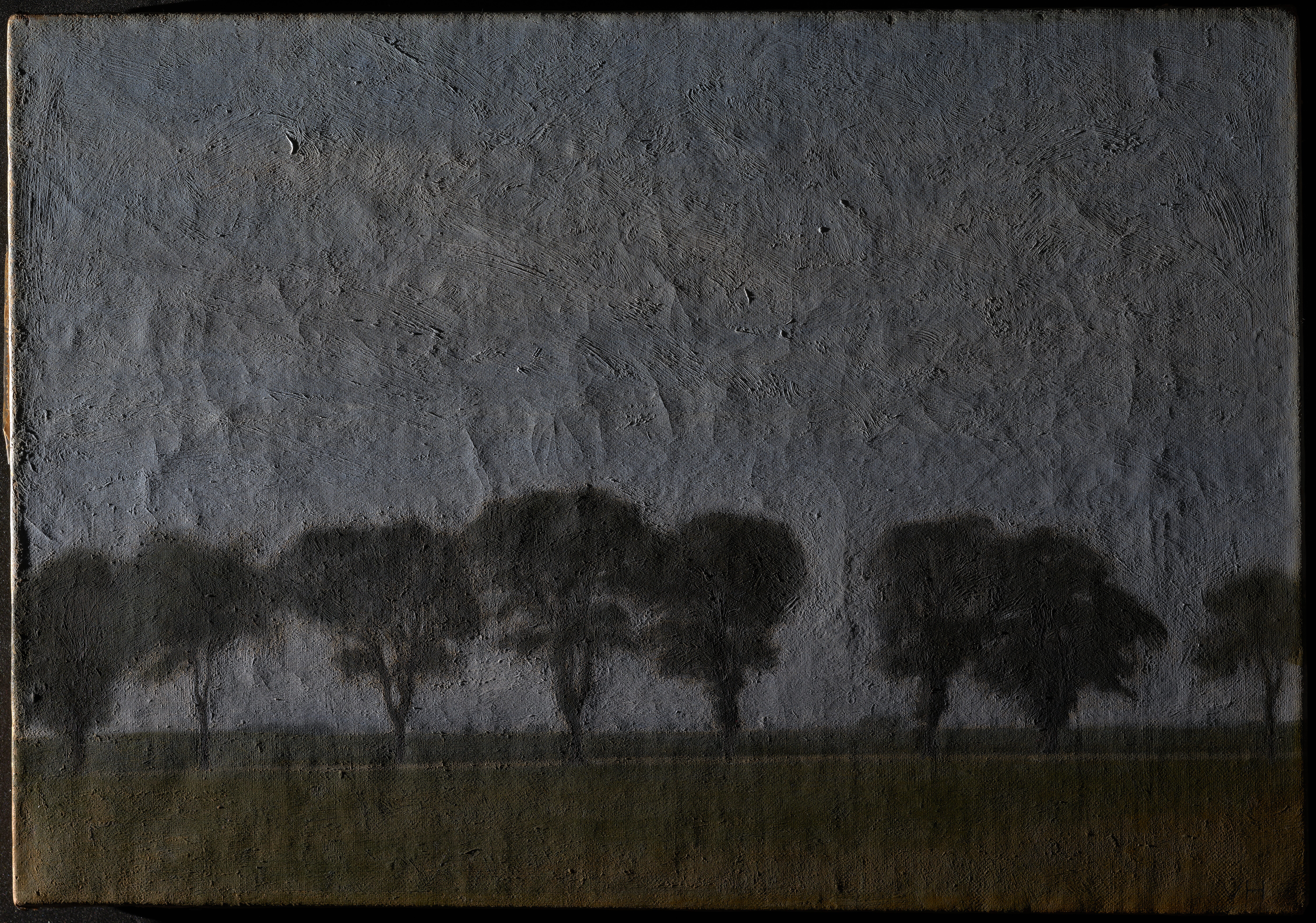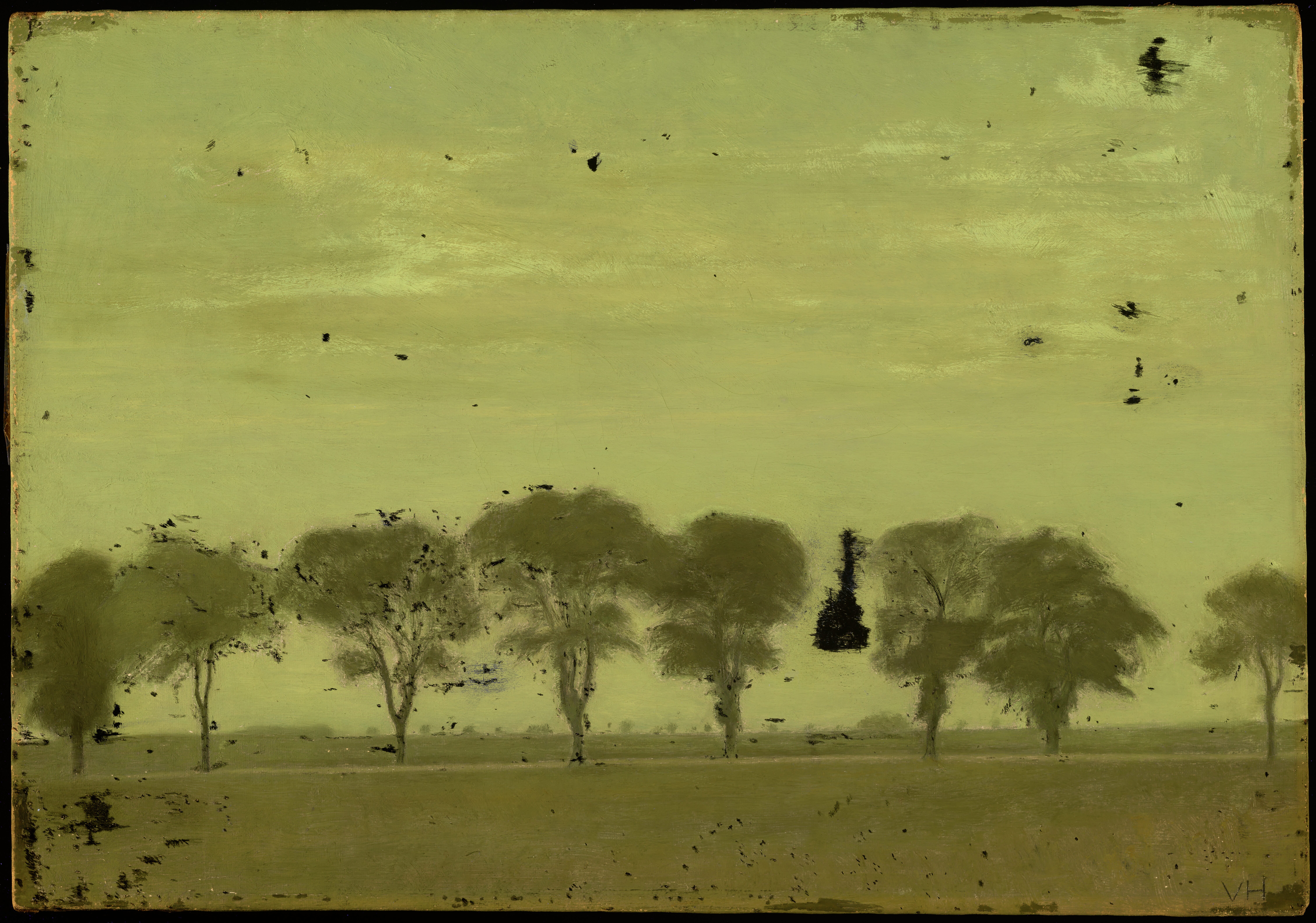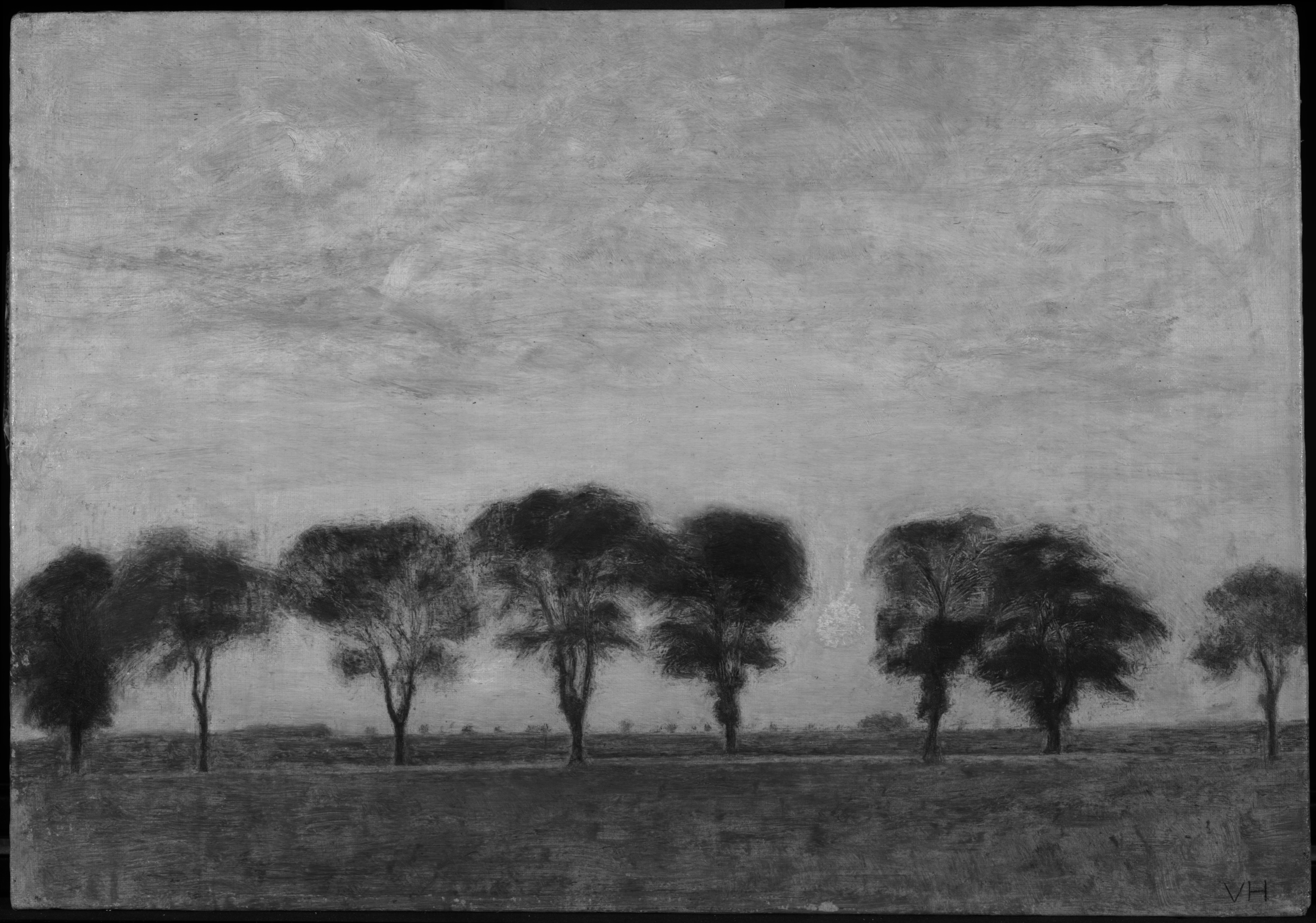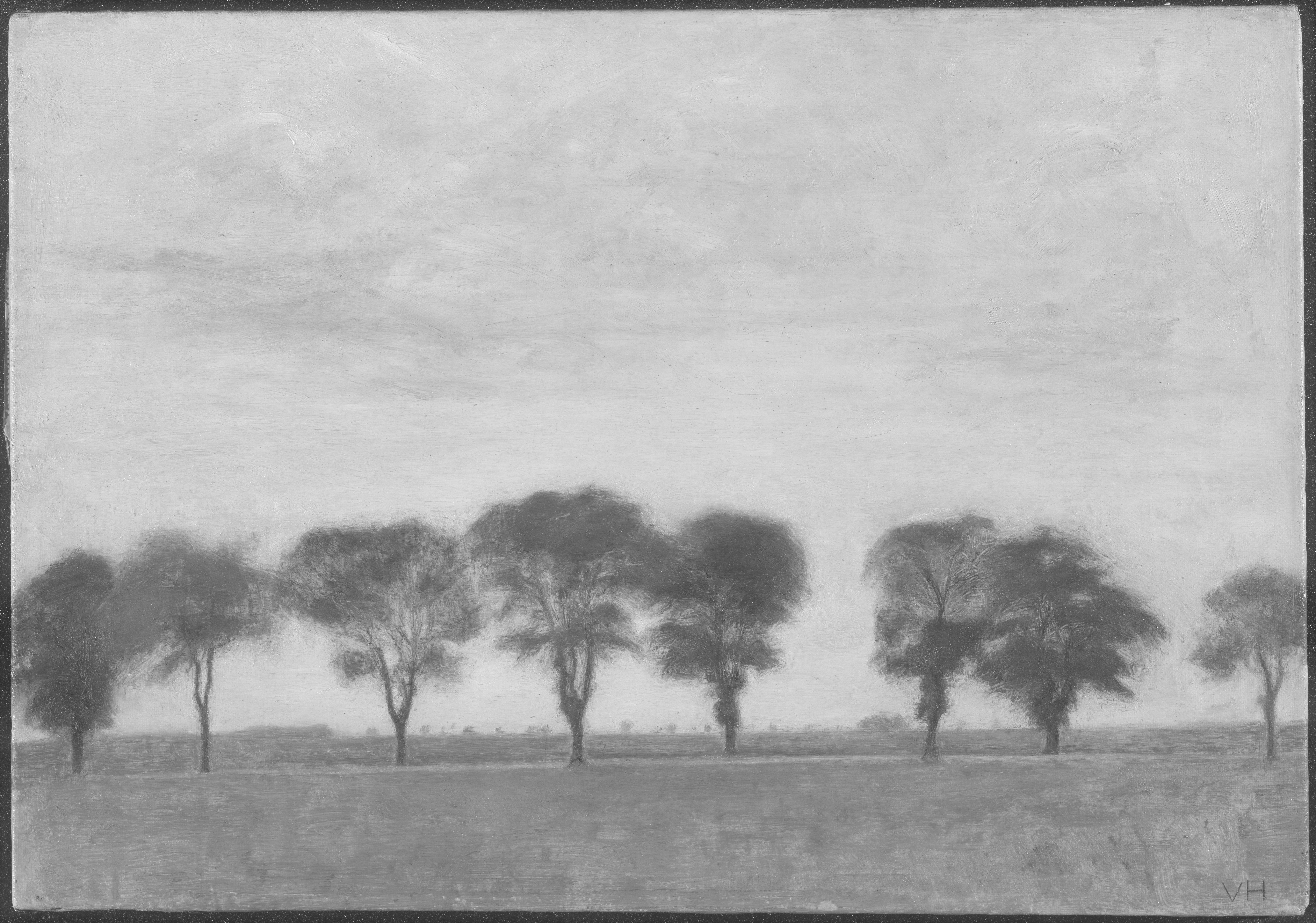 (Transl.): LANDSCAPE. Preliminary work – The nature study – for No. 115. Eight trees constituting the middle part of the picture. The sky is brighter and more bluish than on the [final] painting