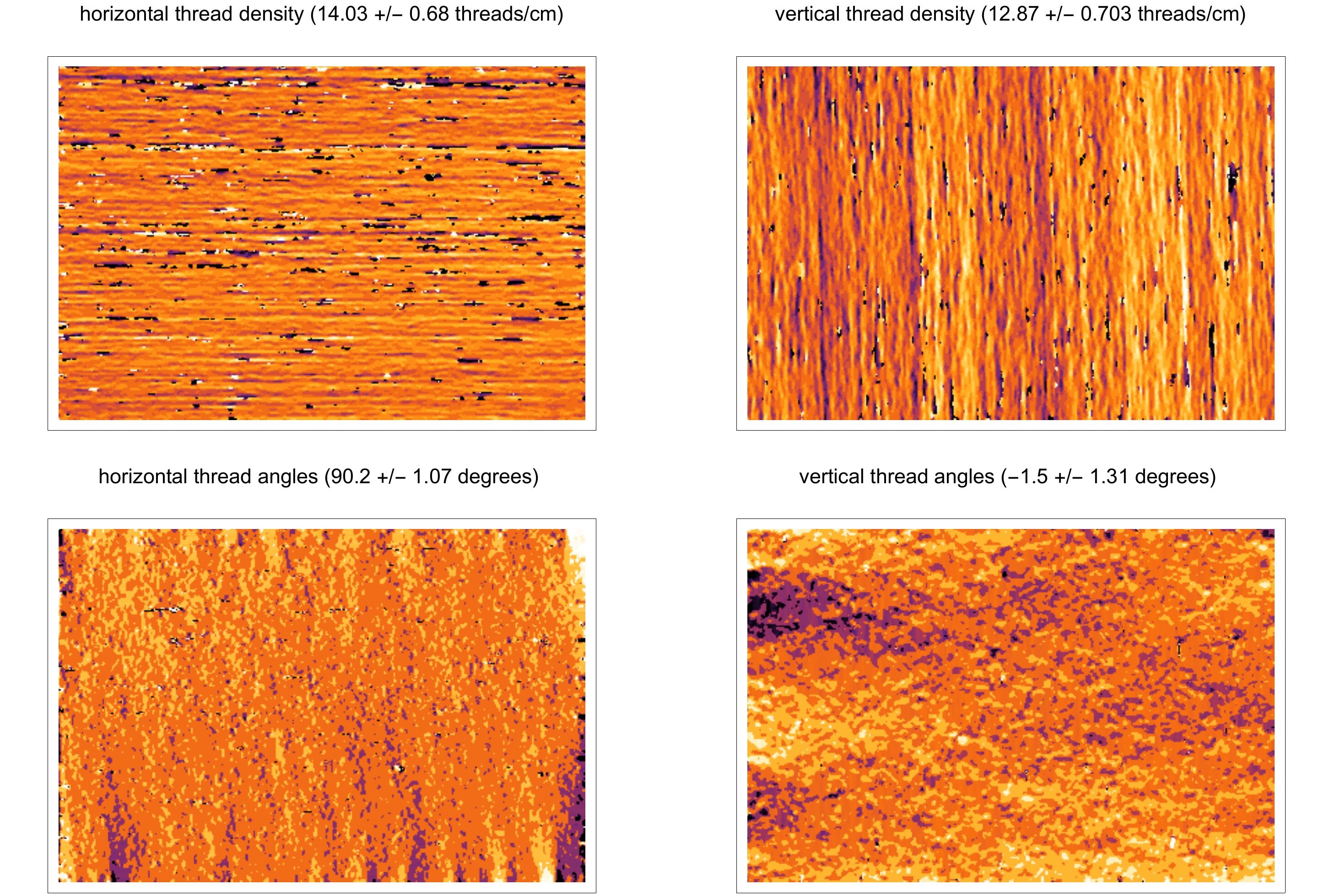 An industrial semi-coarse canvas with yarns of varying thickness and a locally slightly open weave. The horizontal yarns are more irregular than the vertical yarns.