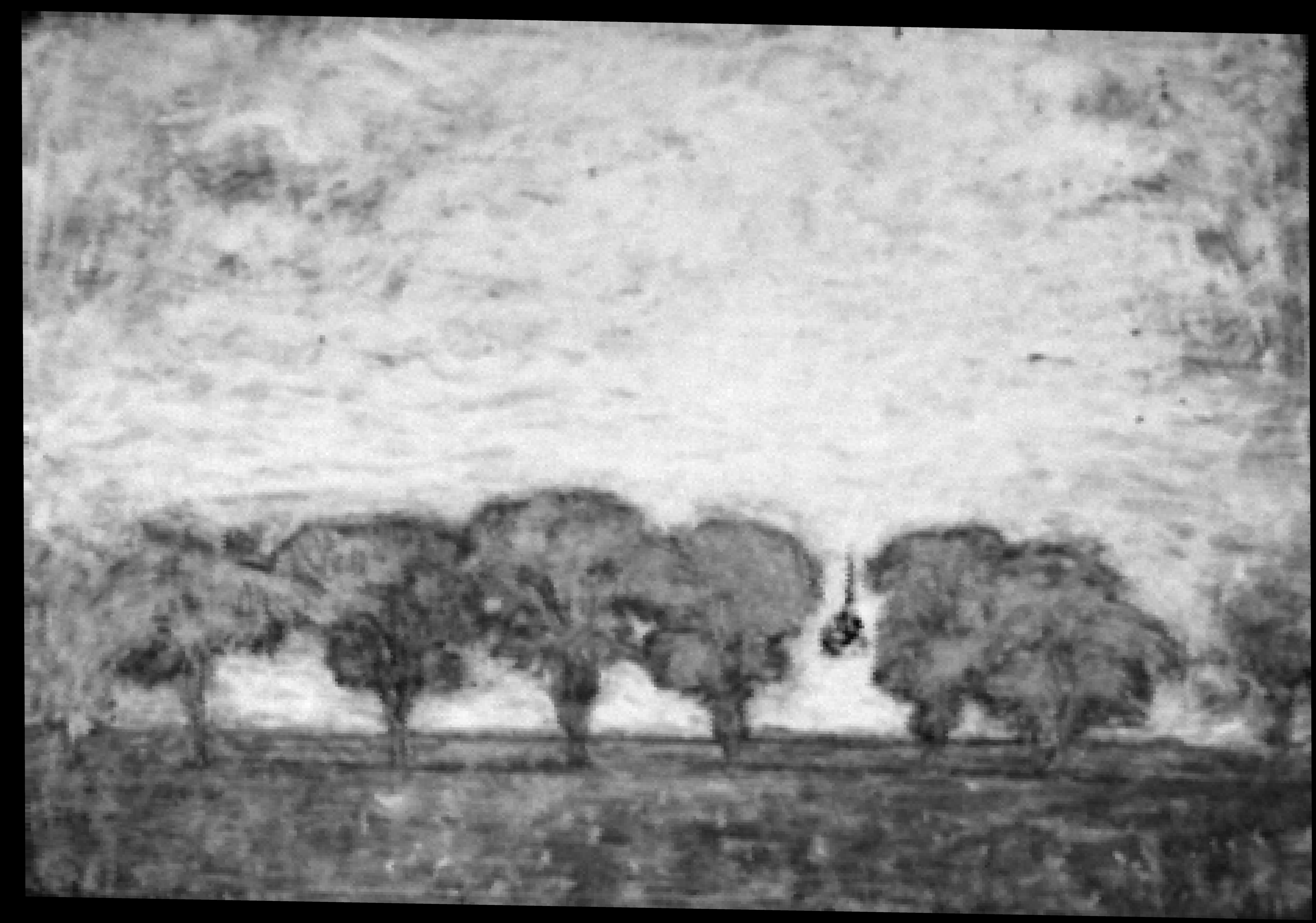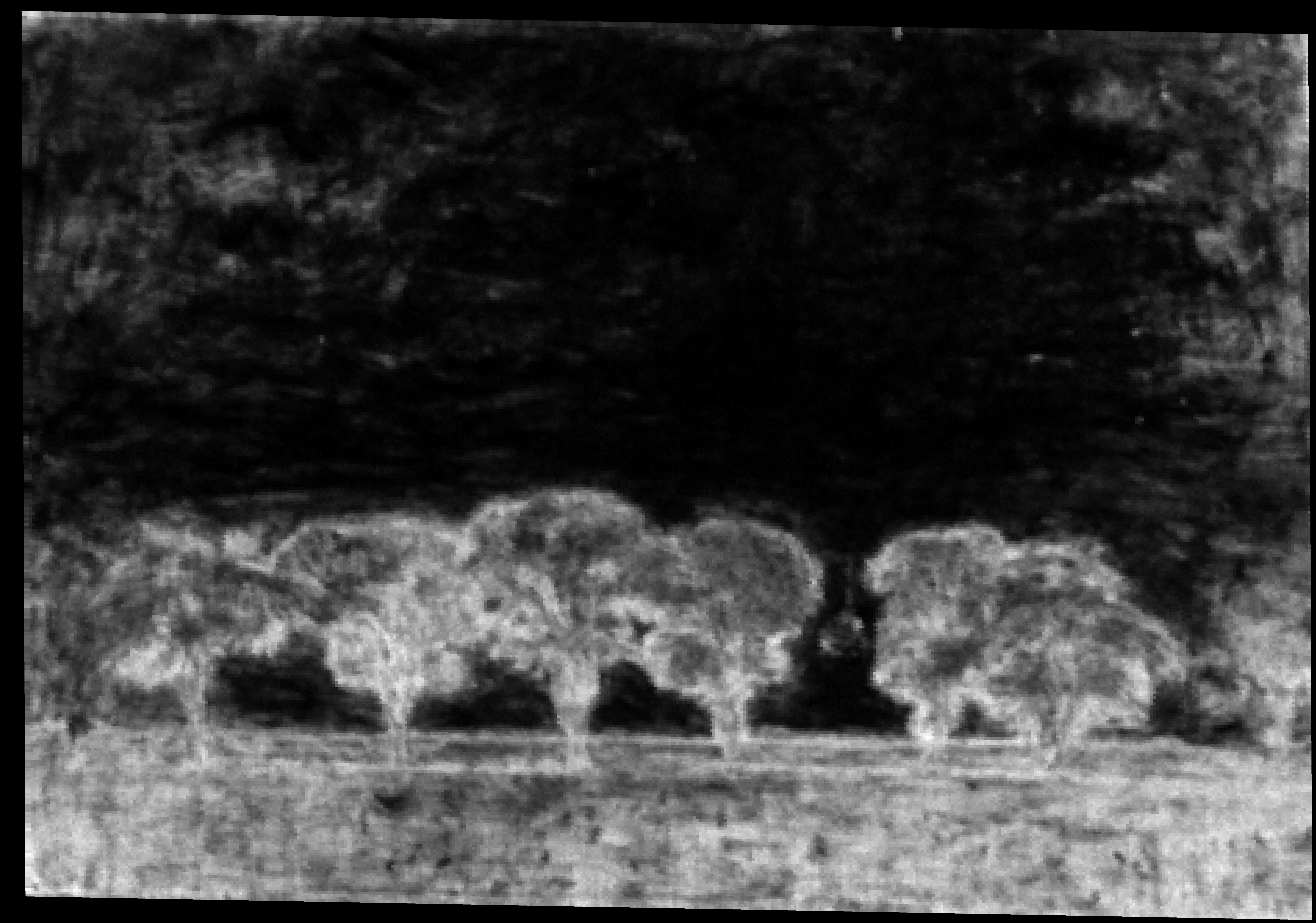 The underdrawing is a preliminary sketch applied directly onto the ground layer, serving as an outline for the composition or parts of it before the paint layers are added. These drawings are often not visible to the naked eye but can be revealed through infrared imaging (IRR and IR-R-IR) if carried out with a carbon-containing material on a light-coloured ground layer. The underdrawings can offer valuable insight into the artist’s creative process and planning, showing how the composition evolved prior to the final painting.