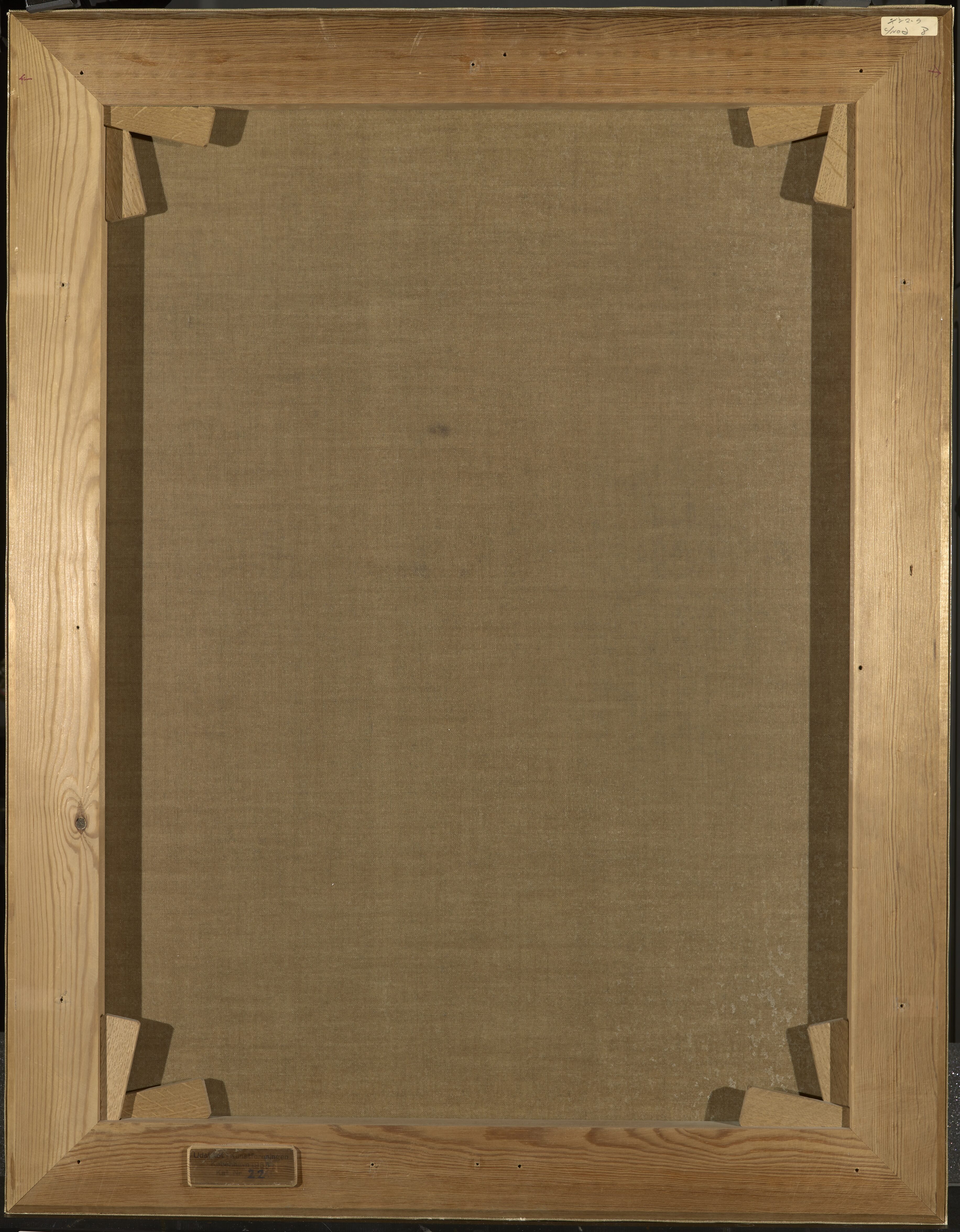 The description is based on a b/w photograph of the original stretcher which was replaced in 1977 in connection with the lining.