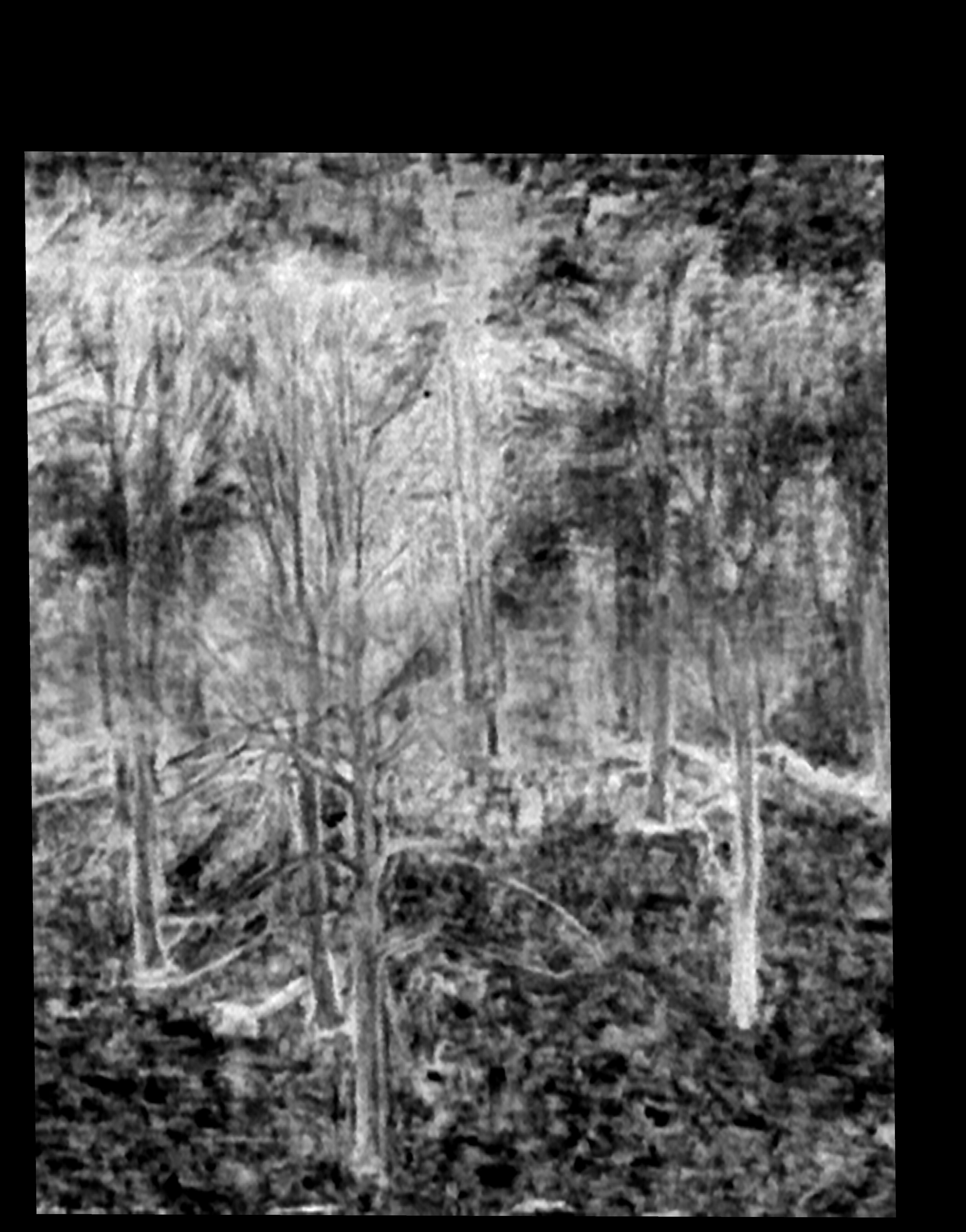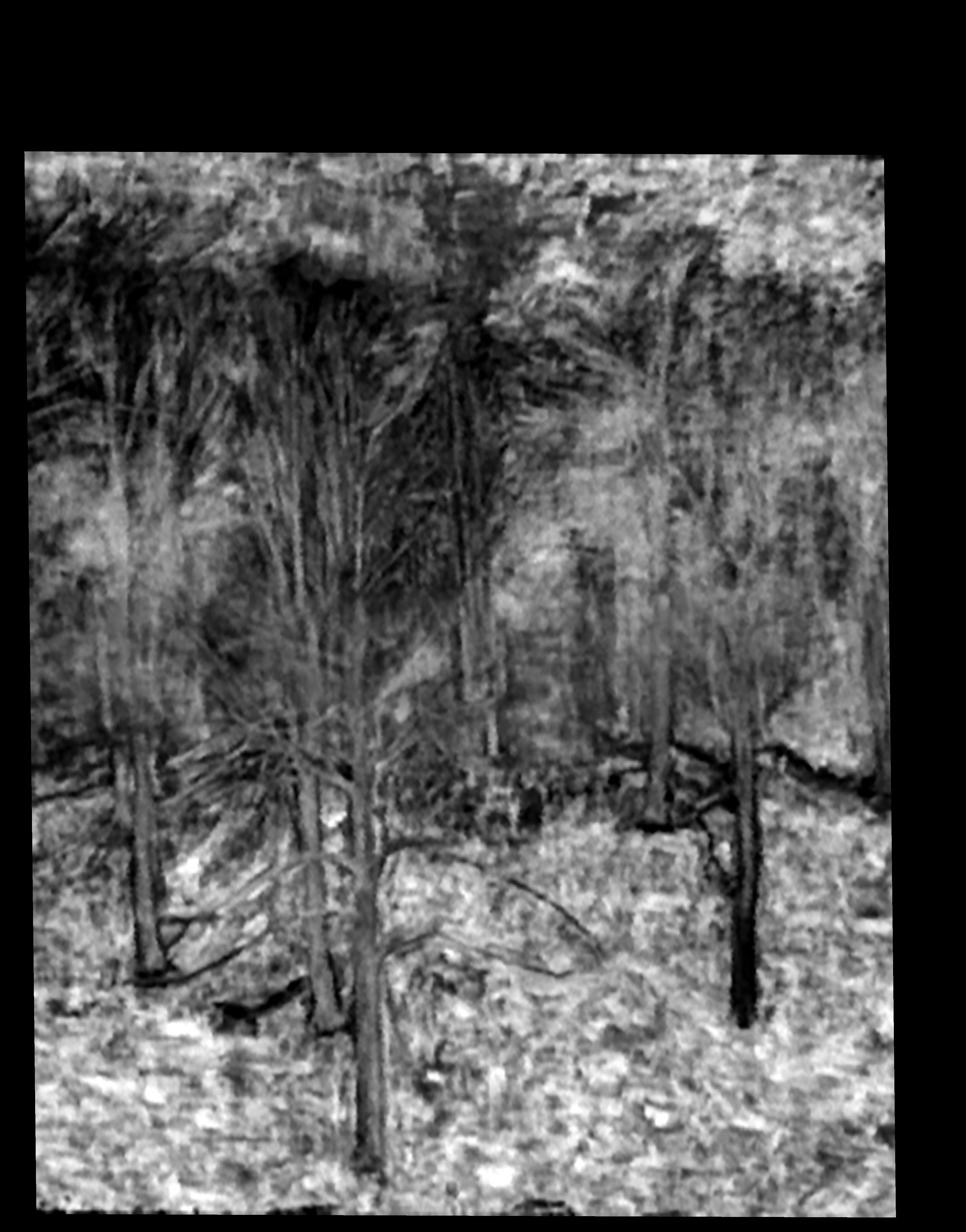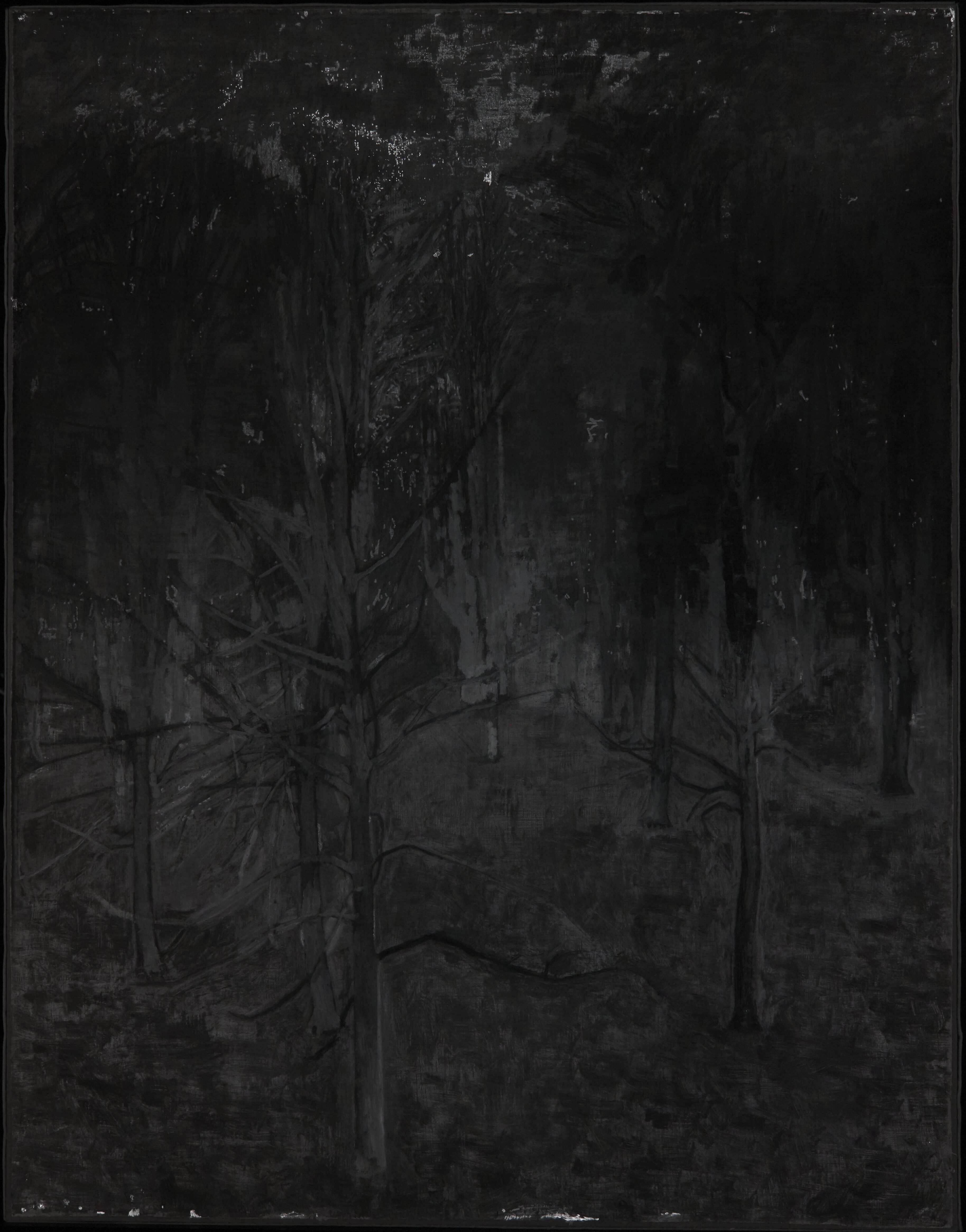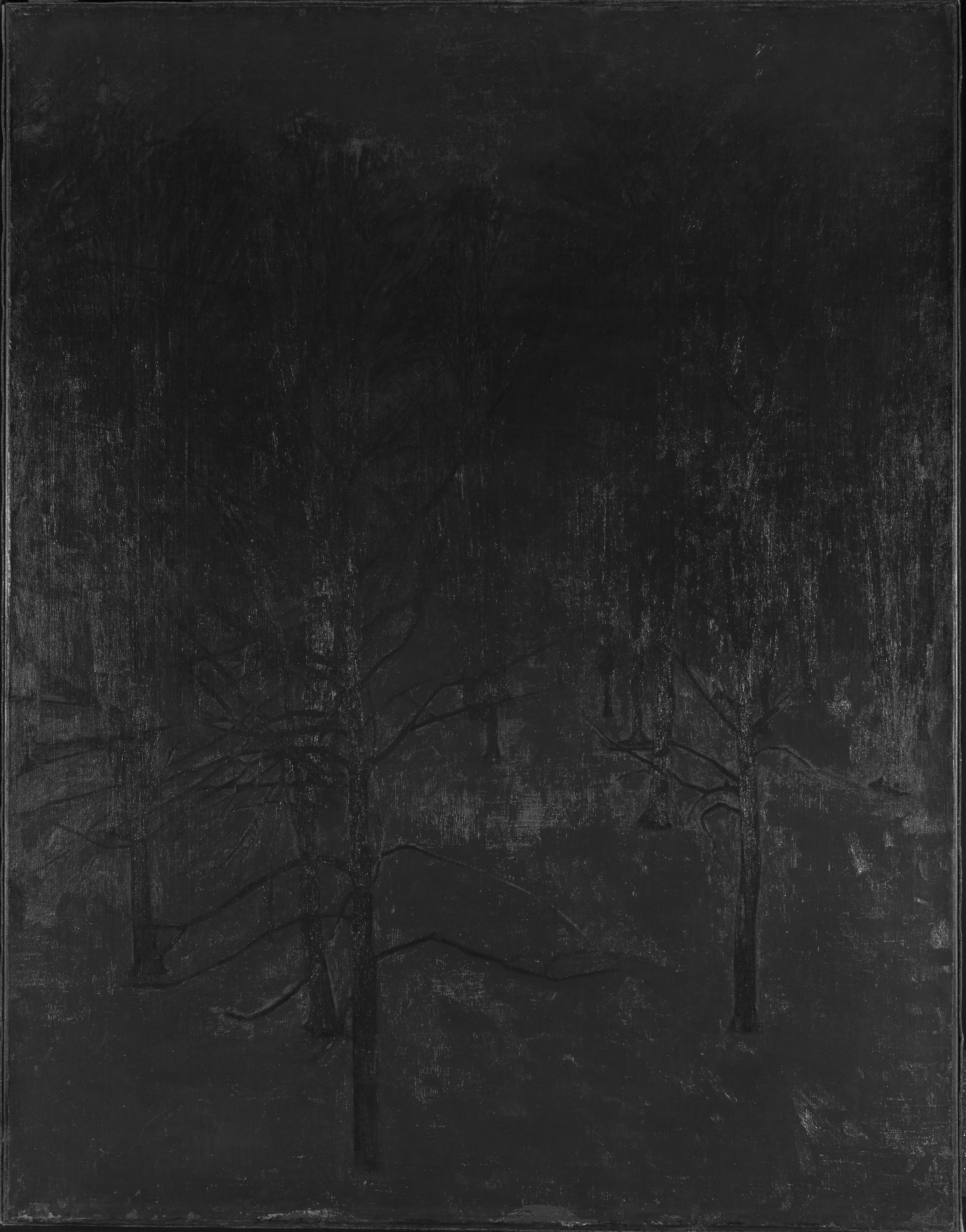 Underdrawing lines are faintly discernible in relation to some of the foremost branches of the foreground.