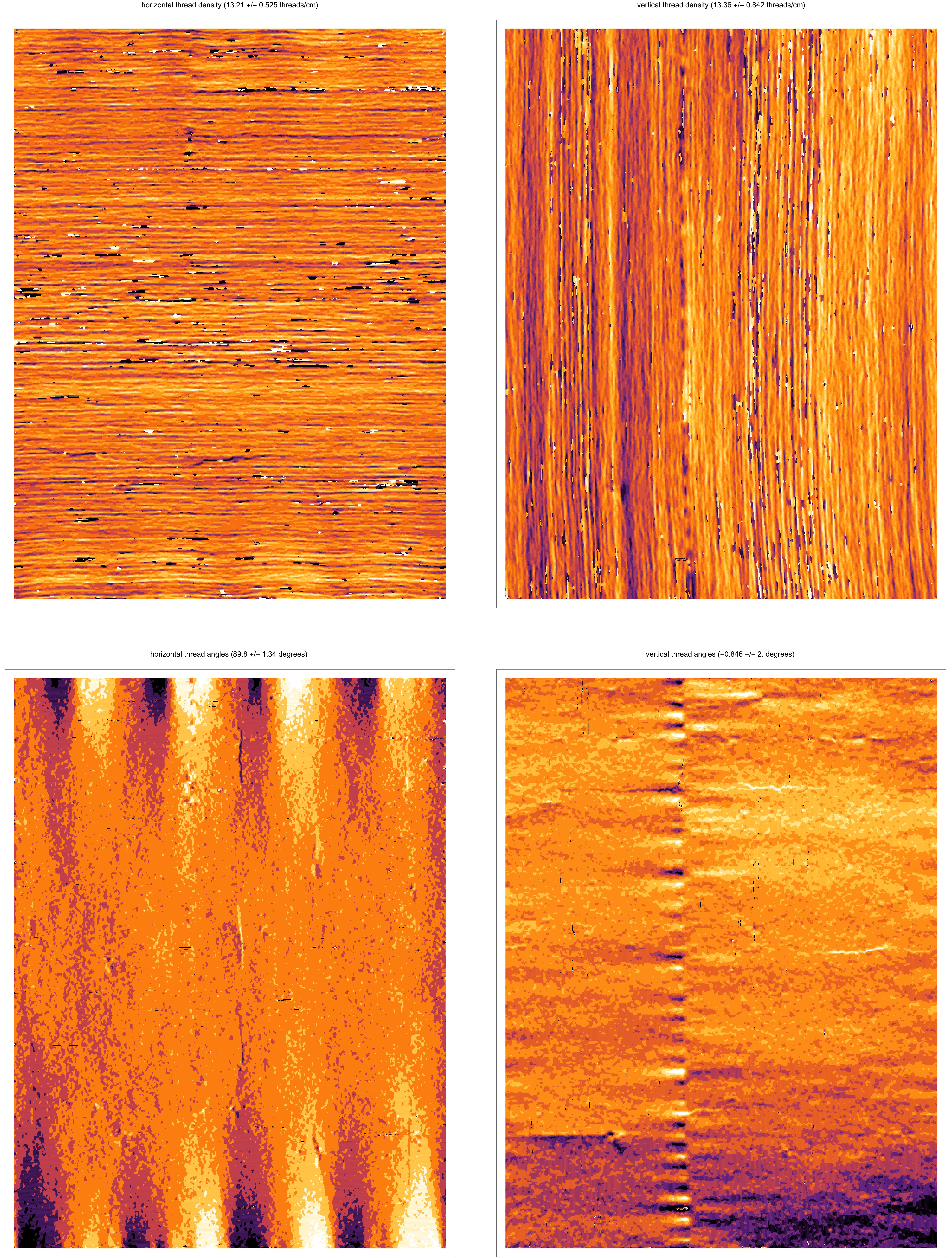 Weave maps are detailed visualisations of the thread patterns in a canvas, created by applying thread counting on high-resolution x-radiographs. These are used for analysing the structure of the canvas and to compare canvases used in different paintings. A comparison between weave maps can sometimes determine if two or more pieces of canvas derive from the same batch and thereby shed light on the place and period in which a painting has been created.