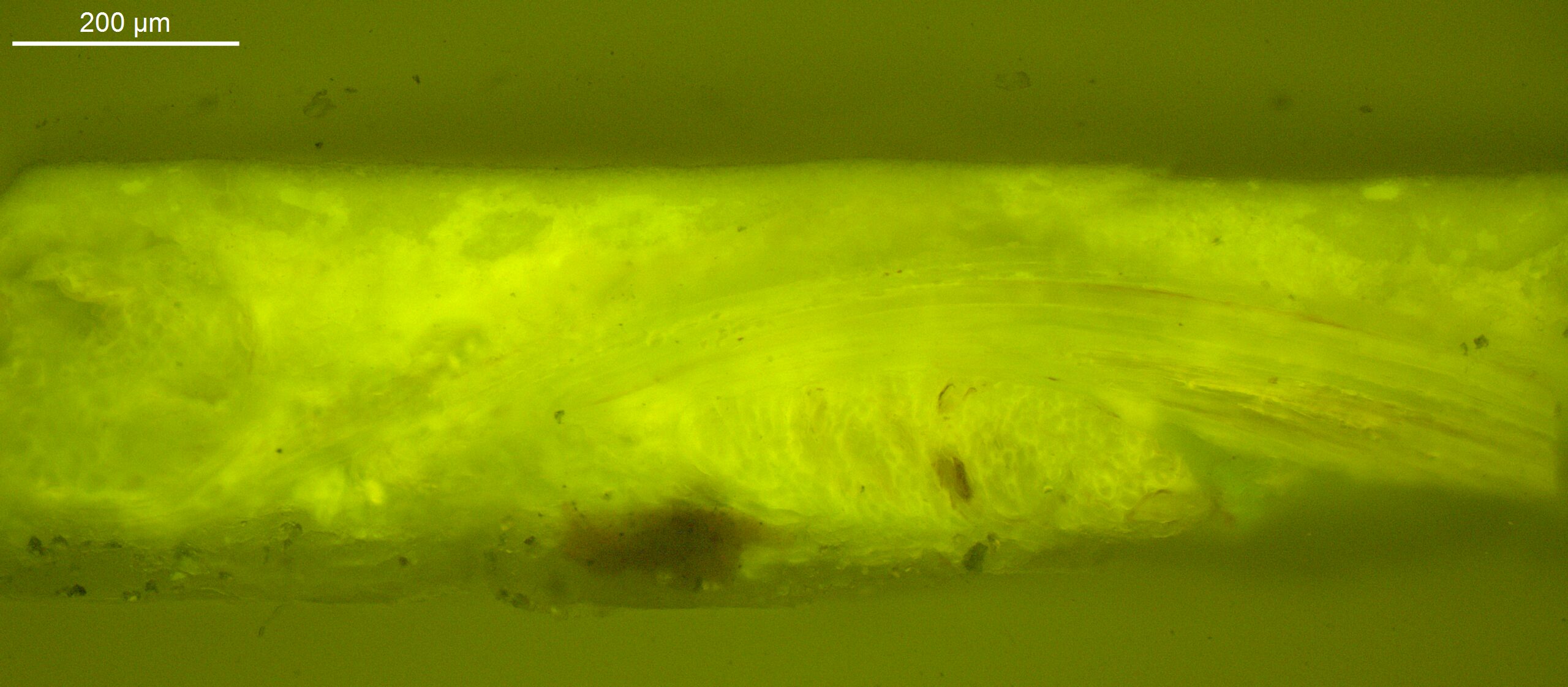 Slightly green UV-fluorescence