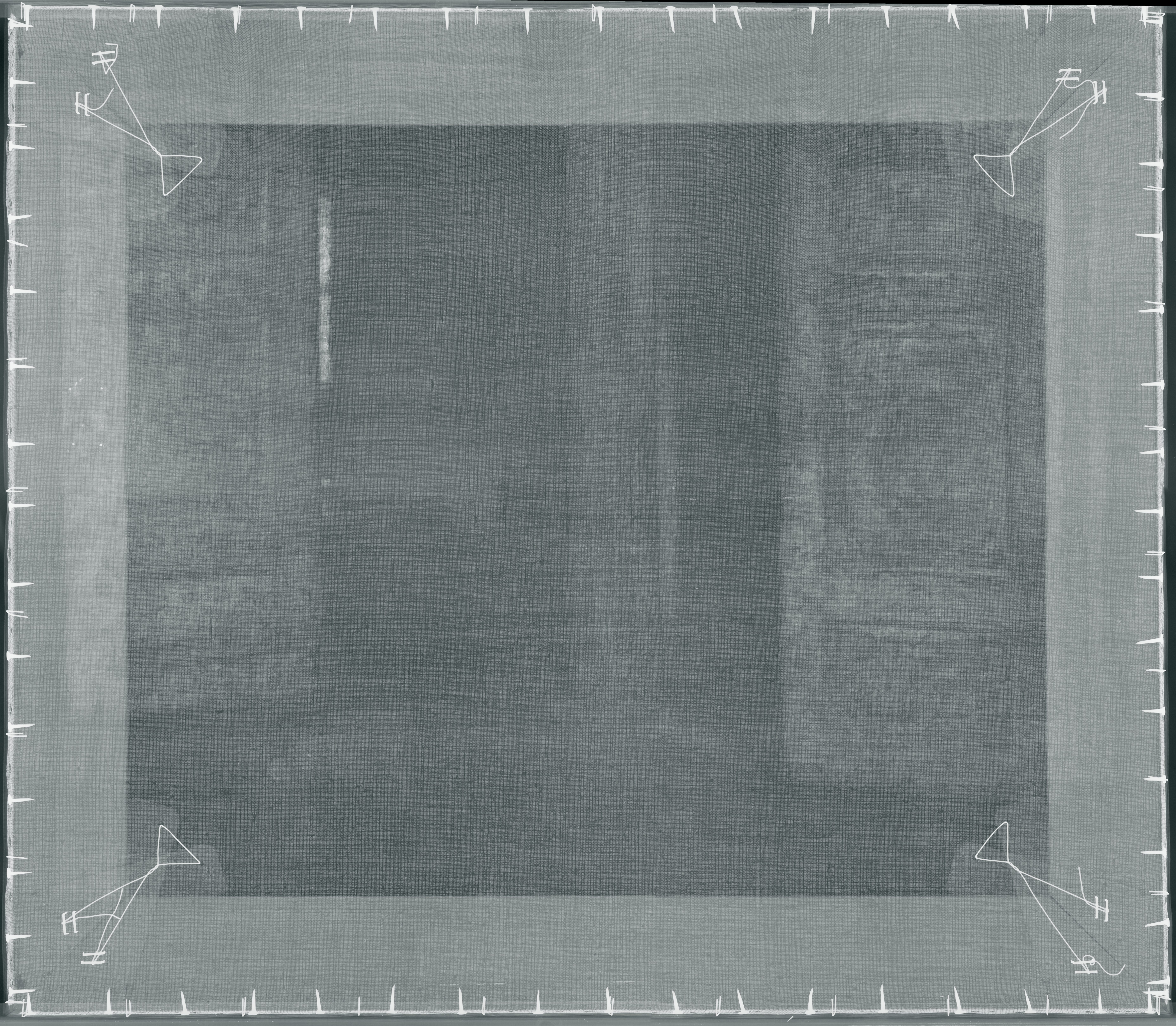 The ground layer is a preparatory layer applied directly to the support to create a smooth surface for painting. It is typically opaque and monochrome in color, providing a neutral base that influences the subsequent application of paint layers and the final appearance of the painting. The composition of the ground layer varies depending on the type of support and the historical period of the artwork. Hammershøi typically painted on white and industrially primed canvasses.
