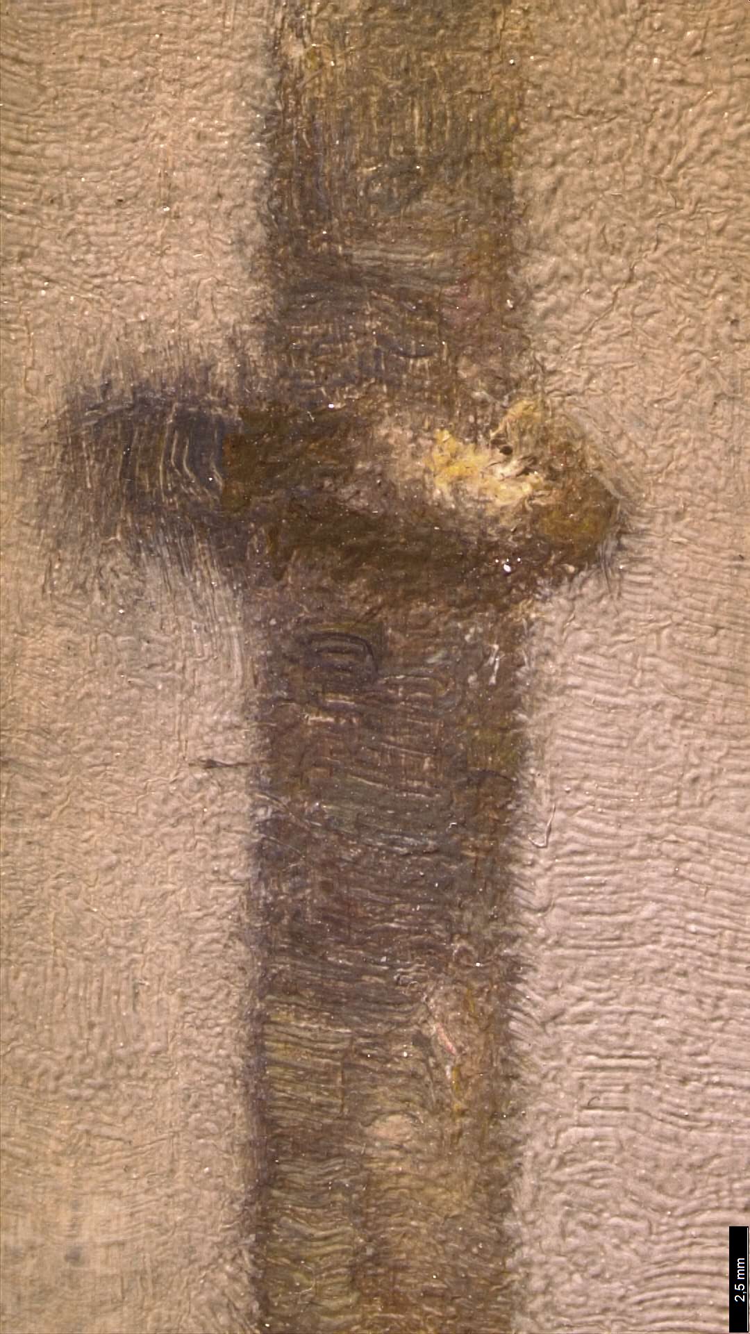 The underdrawing is a preliminary sketch applied directly onto the ground layer, serving as an outline for the composition or parts of it before the paint layers are added. These drawings are often not visible to the naked eye but can be revealed through infrared imaging (IRR and IR-R-IR) if carried out with a carbon-containing material on a light-coloured ground layer. The underdrawings can offer valuable insight into the artist’s creative process and planning, showing how the composition evolved prior to the final painting.