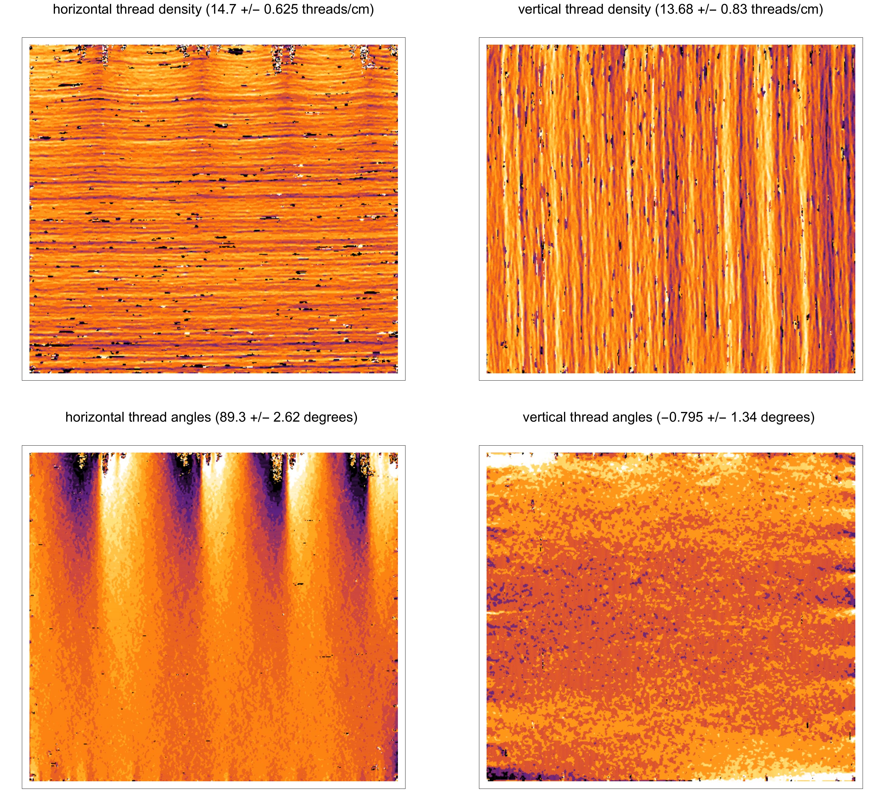Weave maps are detailed visualisations of the thread patterns in a canvas, created by applying thread counting on high-resolution x-radiographs. These are used for analysing the structure of the canvas and to compare canvases used in different paintings. A comparison between weave maps can sometimes determine if two or more pieces of canvas derive from the same batch and thereby shed light on the place and period in which a painting has been created.