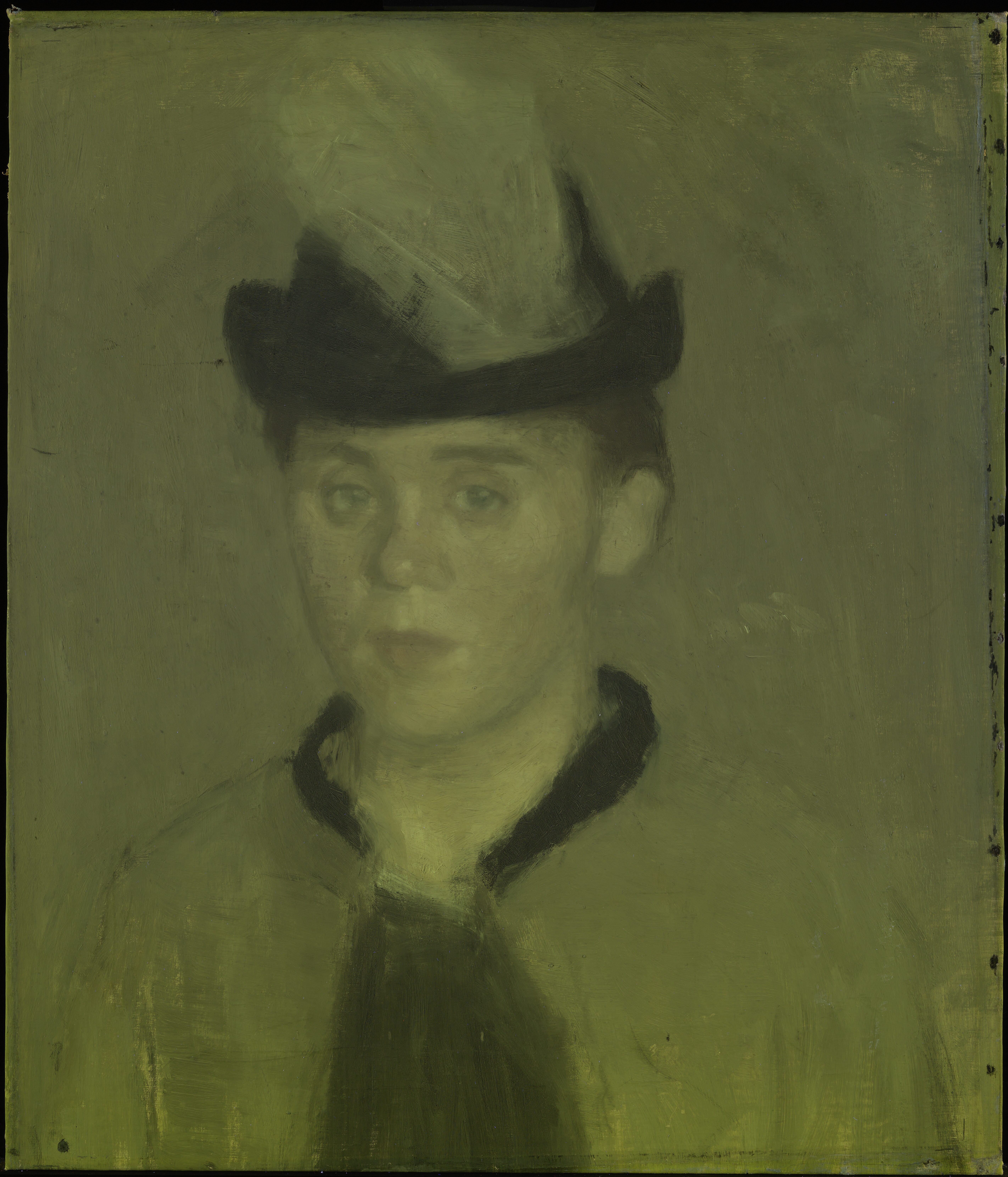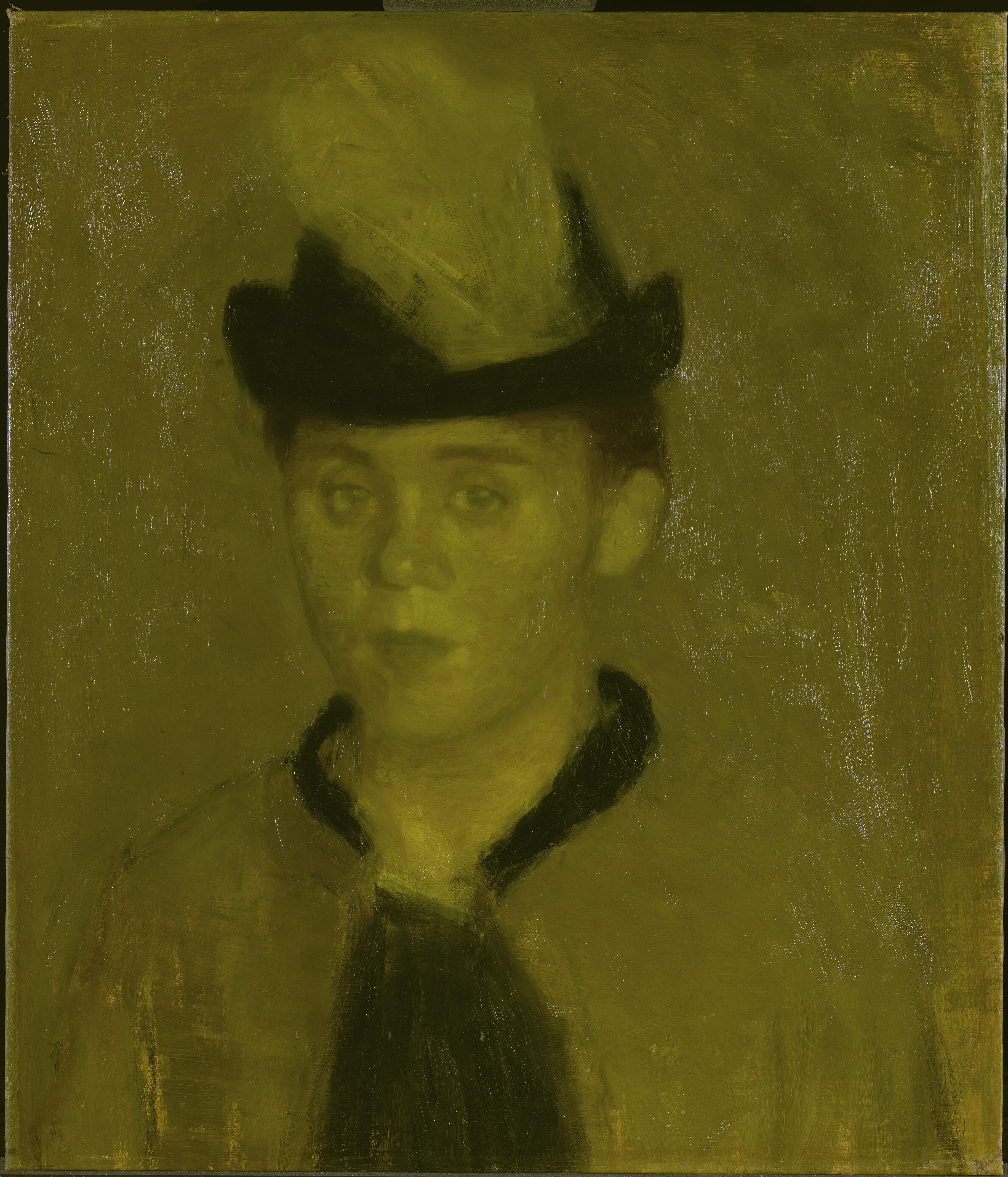 A varnish is sometimes applied as a final transparent layer over the dried paint layer to protect the artwork from dust, dirt, and mechanical damage. In addition to providing protection, varnish saturates the colours and evens out the surface gloss. Over time, this layer may yellow, or degrade. Until the 20th century, it was common practice to varnish oil paintings. In Hammershøi’s time, however, oil paintings were not always varnished, and we know that Hammershøi sometimes deliberately chose to leave his works unvarnished.