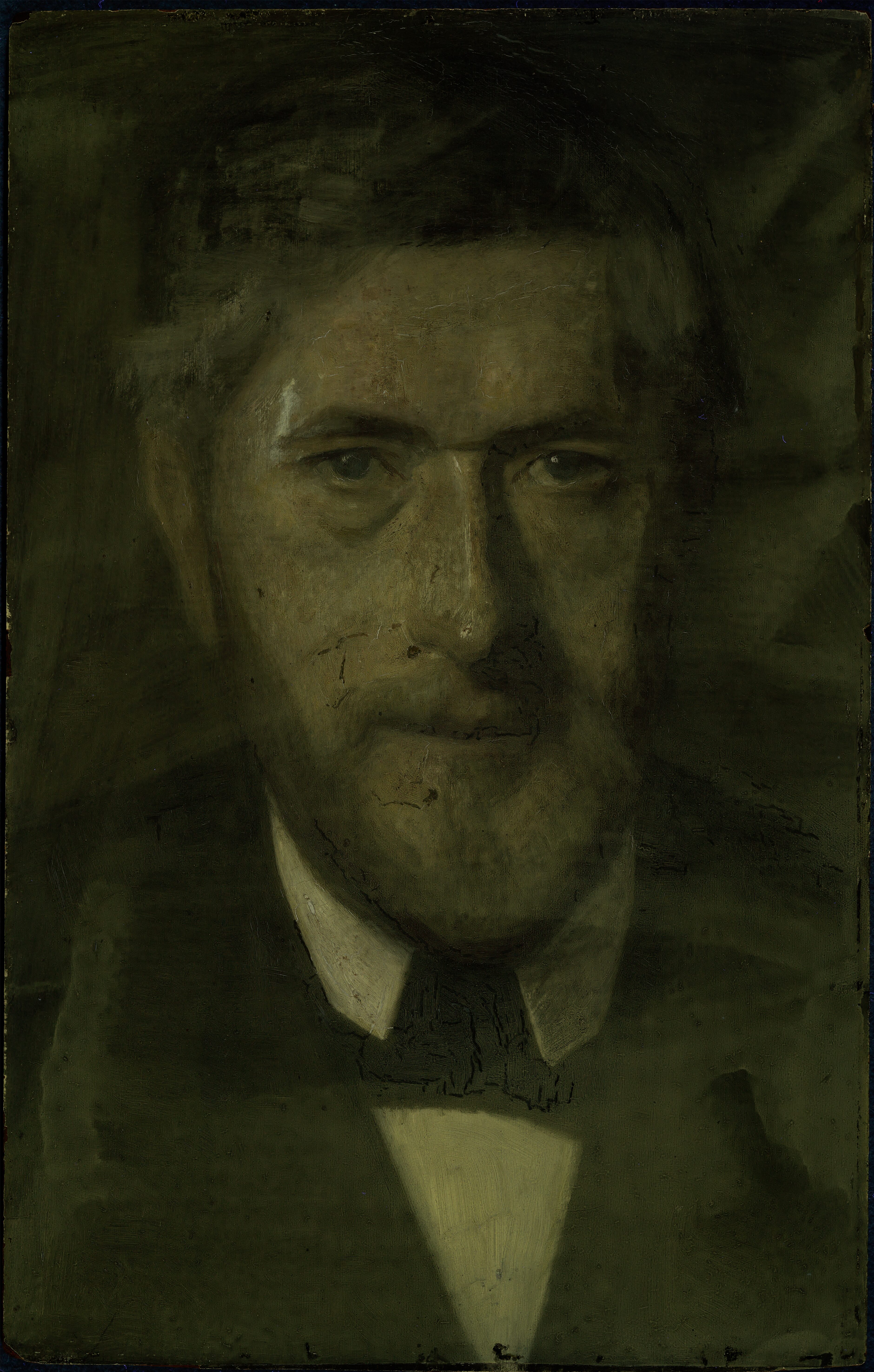(Transl.): PORTRAIT. J. F. Willumsen, 38 years old. Head and shoulders portrait. Life-size. En face. Preliminary study for “Five Portraits” No. 216.