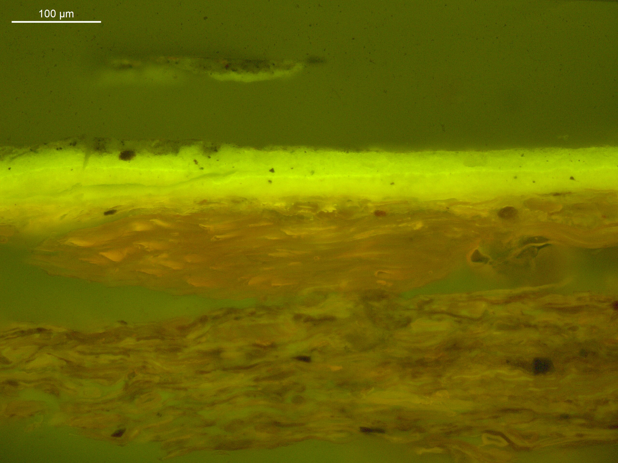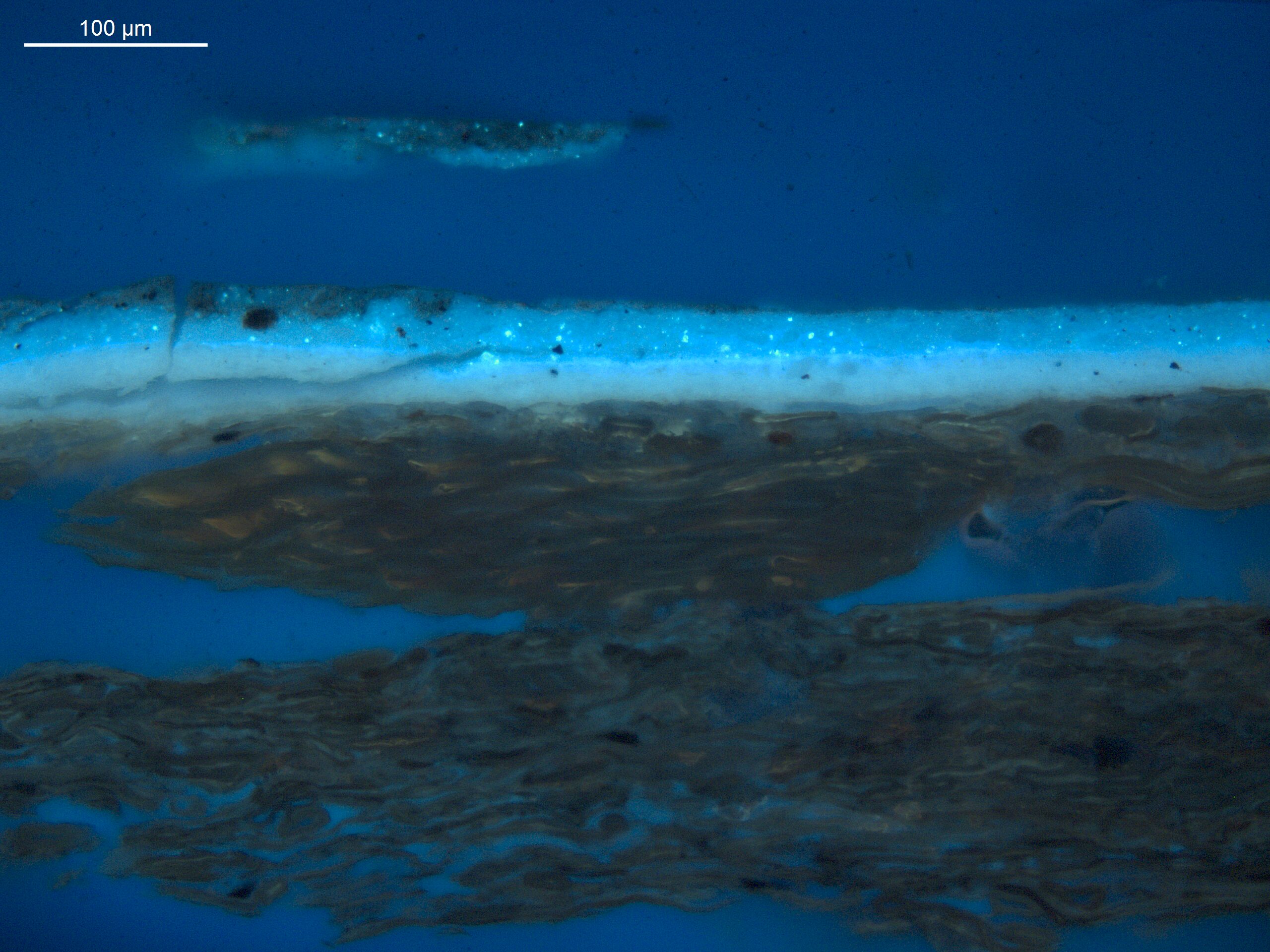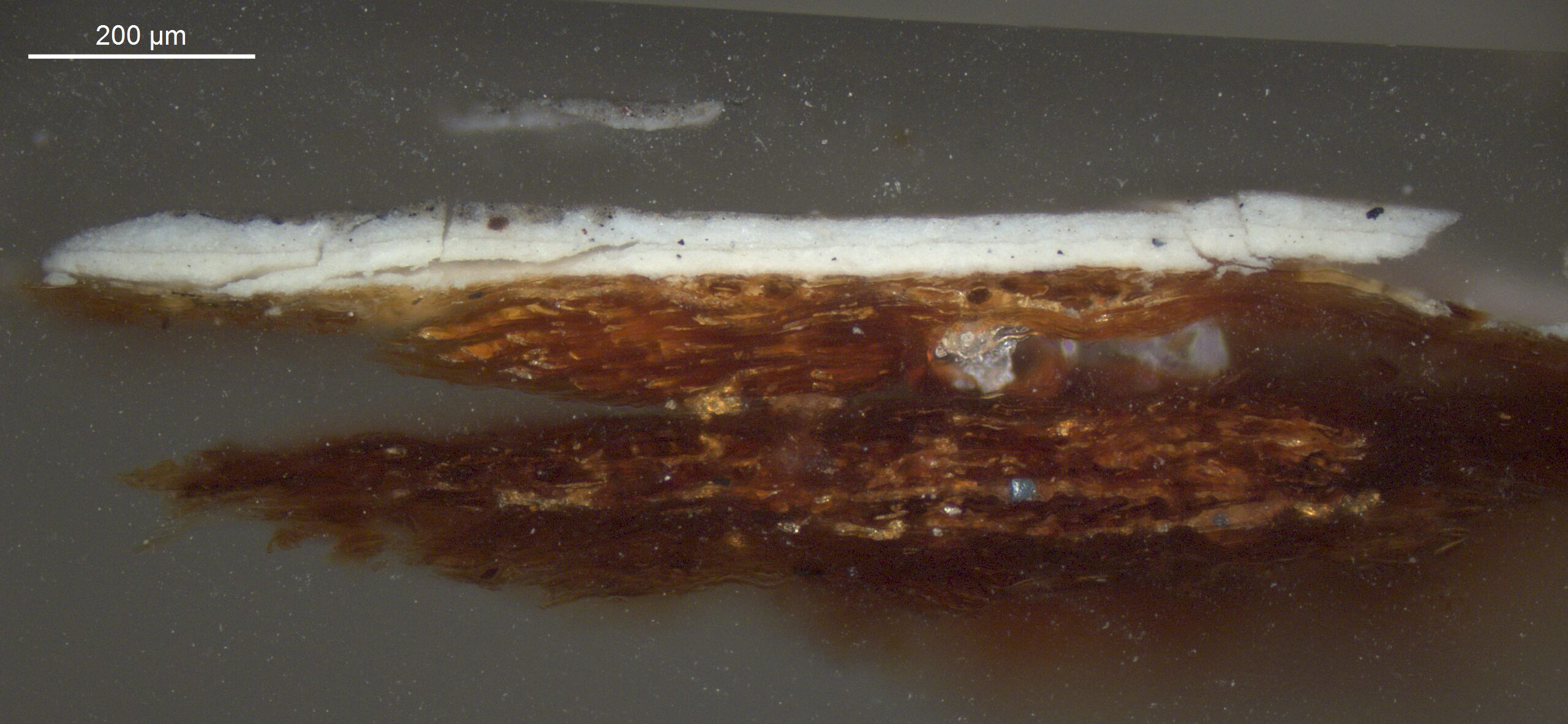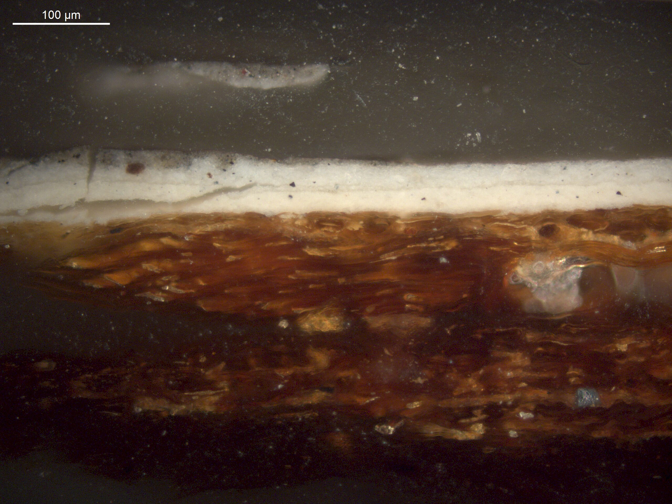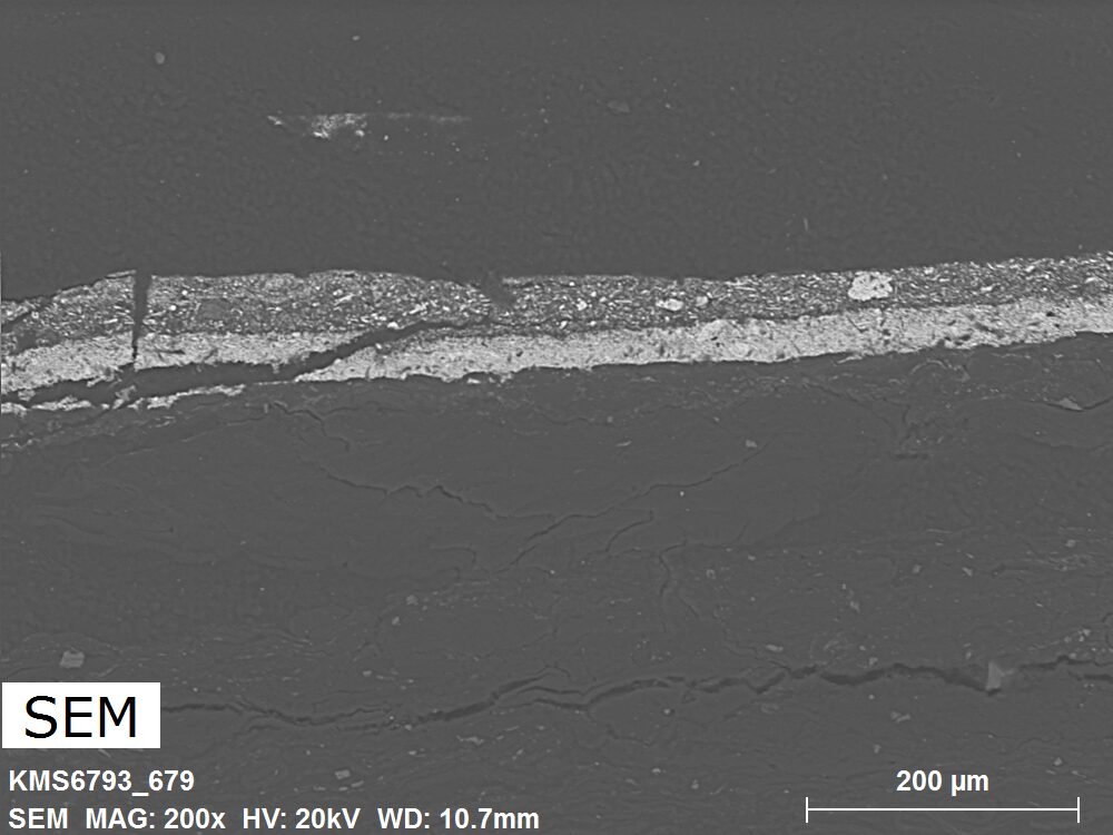 A generally thin paint layer with a simple stratigraphy.