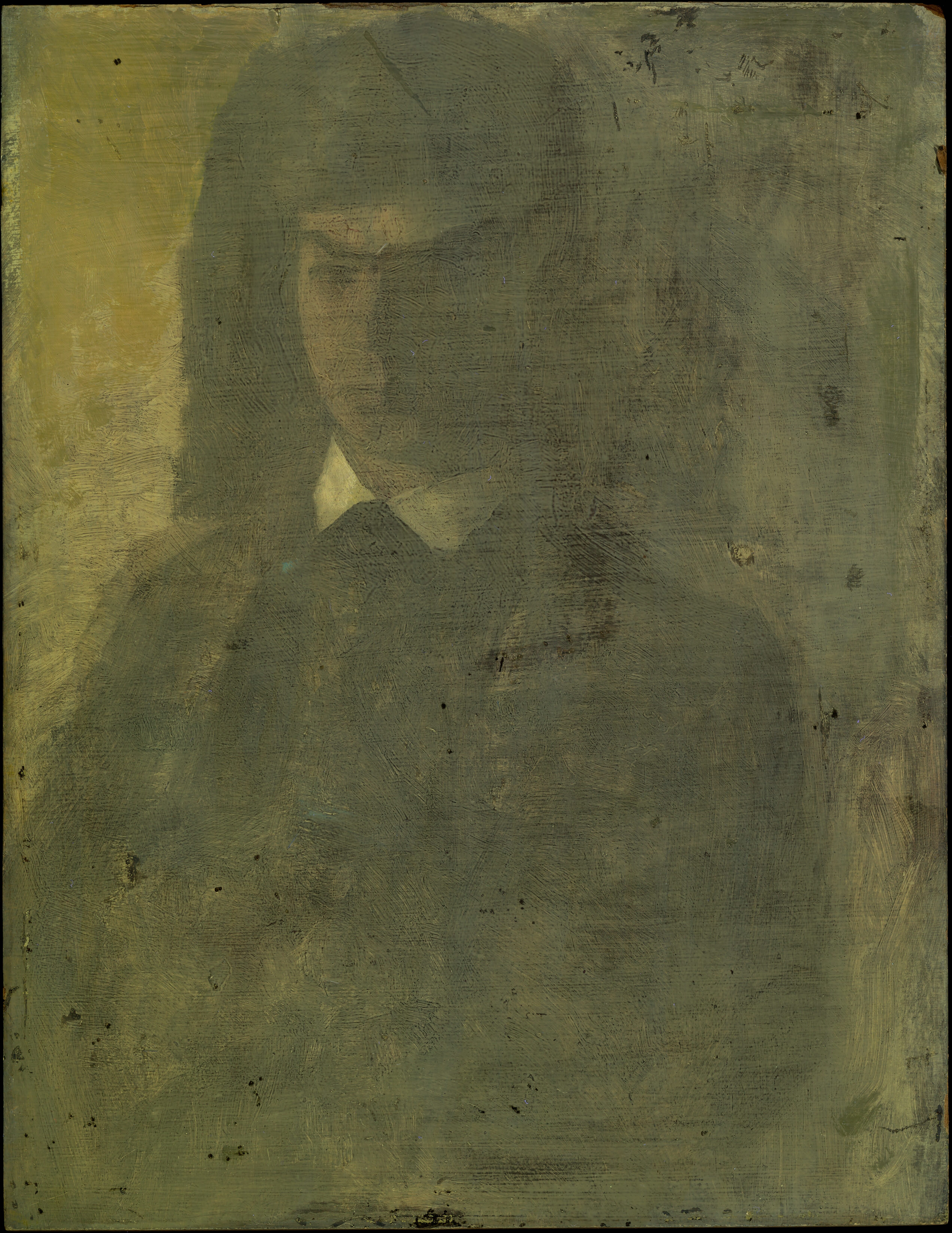A varnish is sometimes applied as a final transparent layer over the dried paint layer to protect the artwork from dust, dirt, and mechanical damage. In addition to providing protection, varnish saturates the colours and evens out the surface gloss. Over time, this layer may yellow, or degrade. Until the 20th century, it was common practice to varnish oil paintings. In Hammershøi’s time, however, oil paintings were not always varnished, and we know that Hammershøi sometimes deliberately chose to leave his works unvarnished.