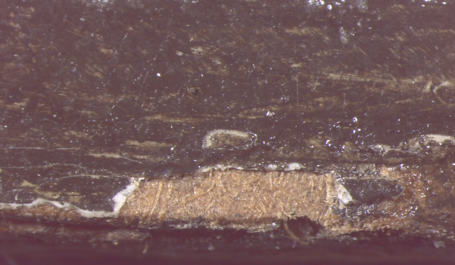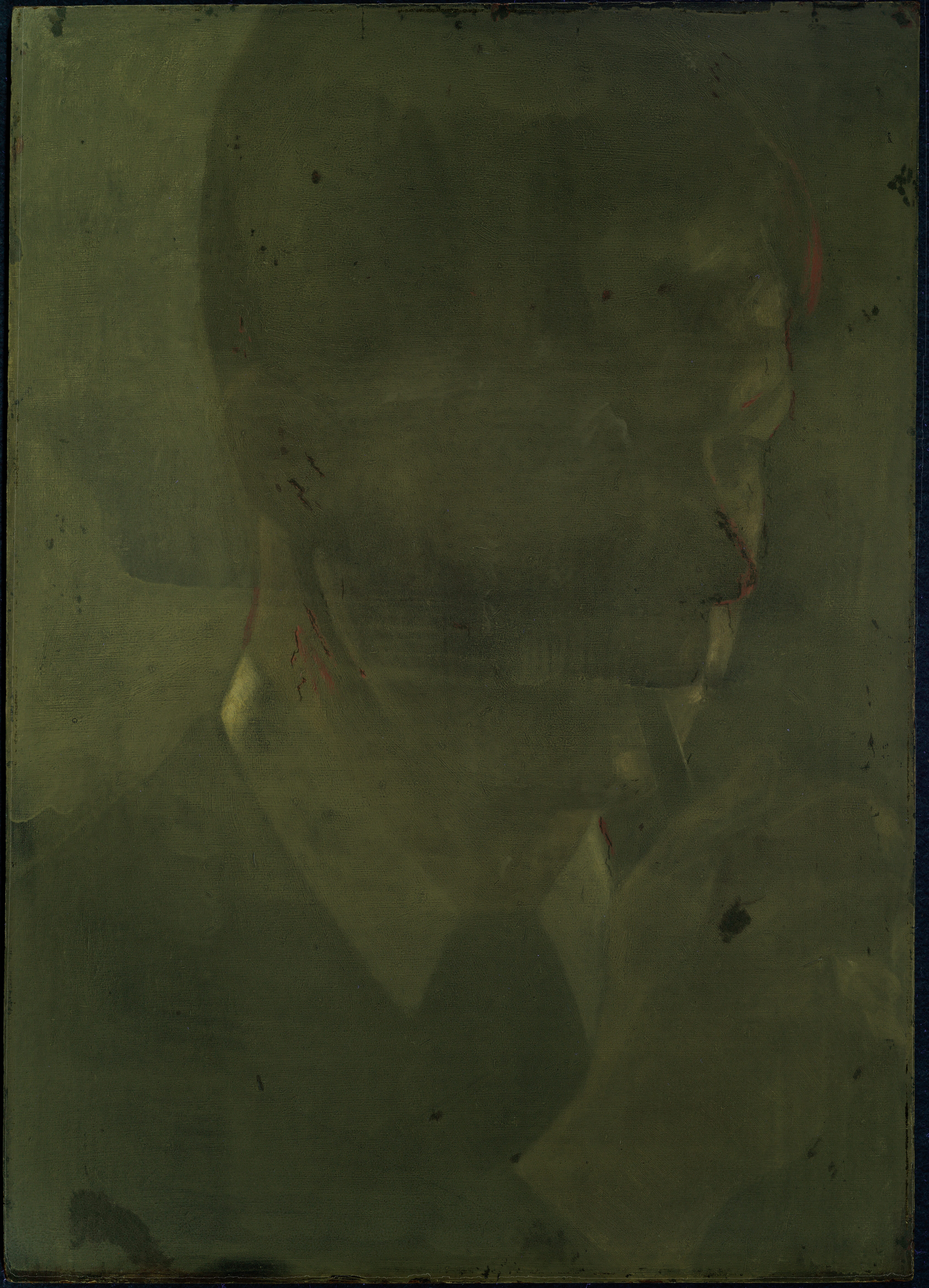 A varnish is sometimes applied as a final transparent layer over the dried paint layer to protect the artwork from dust, dirt, and mechanical damage. In addition to providing protection, varnish saturates the colours and evens out the surface gloss. Over time, this layer may yellow, or degrade. Until the 20th century, it was common practice to varnish oil paintings. In Hammershøi’s time, however, oil paintings were not always varnished, and we know that Hammershøi sometimes deliberately chose to leave his works unvarnished.
