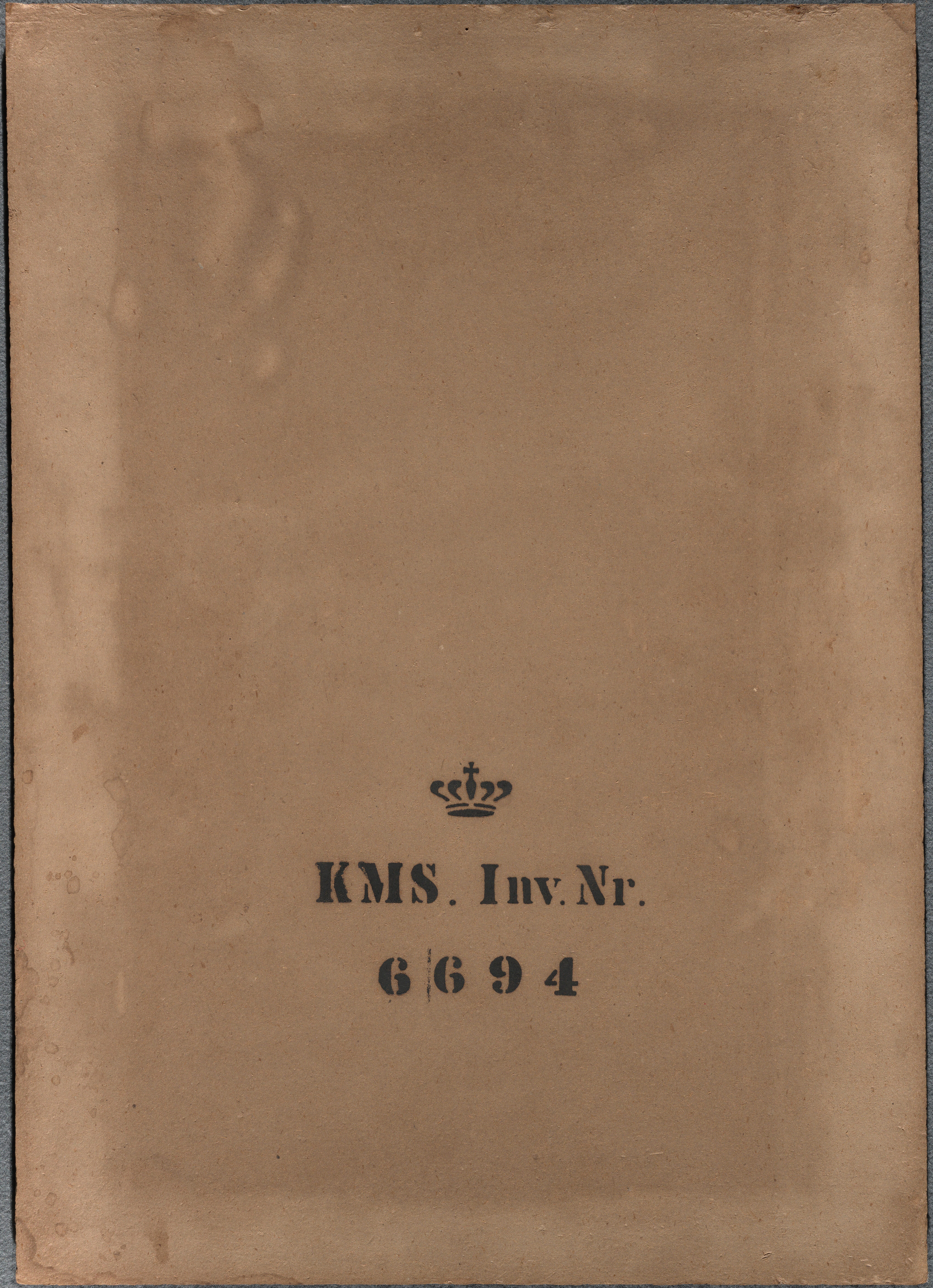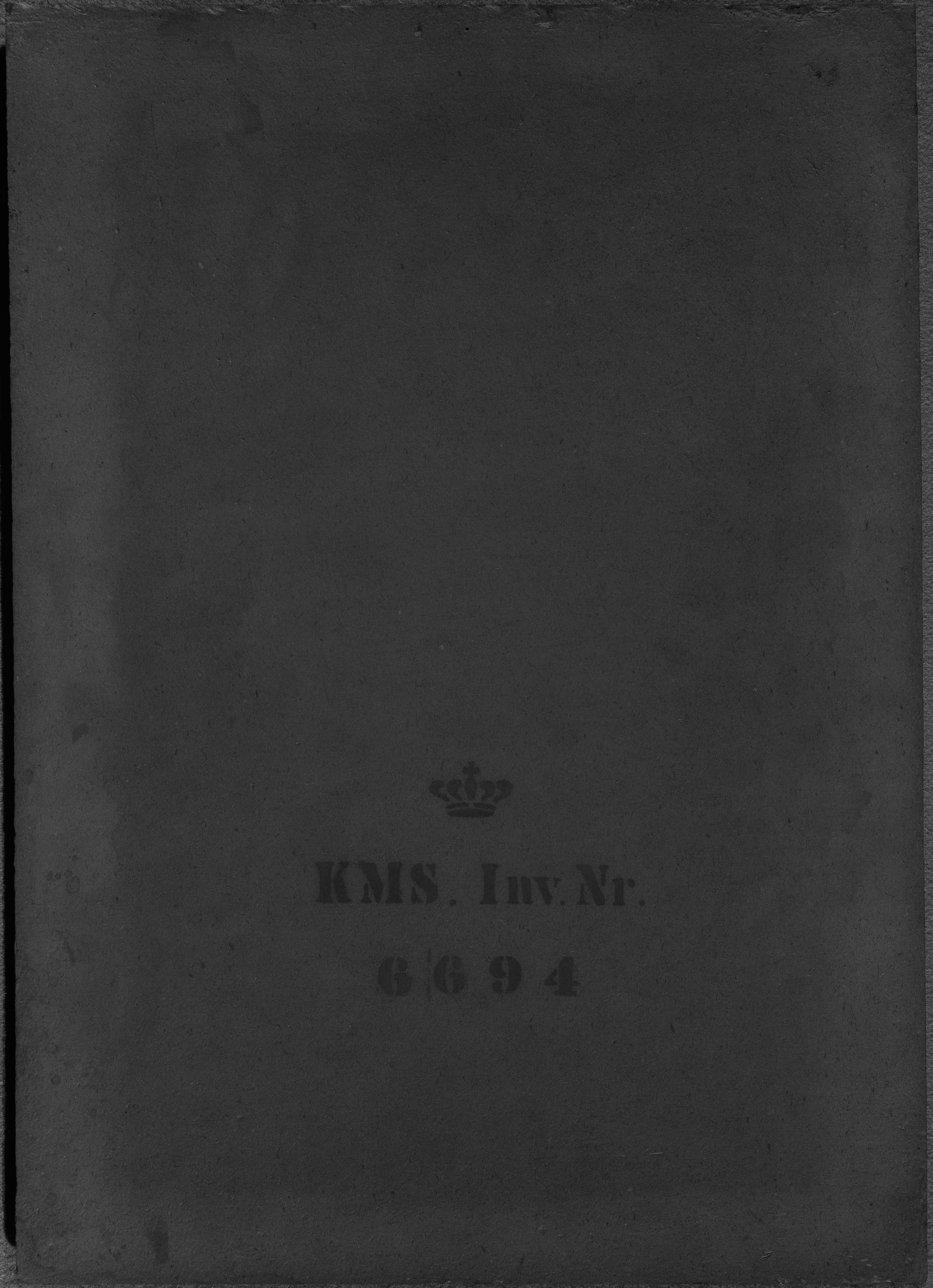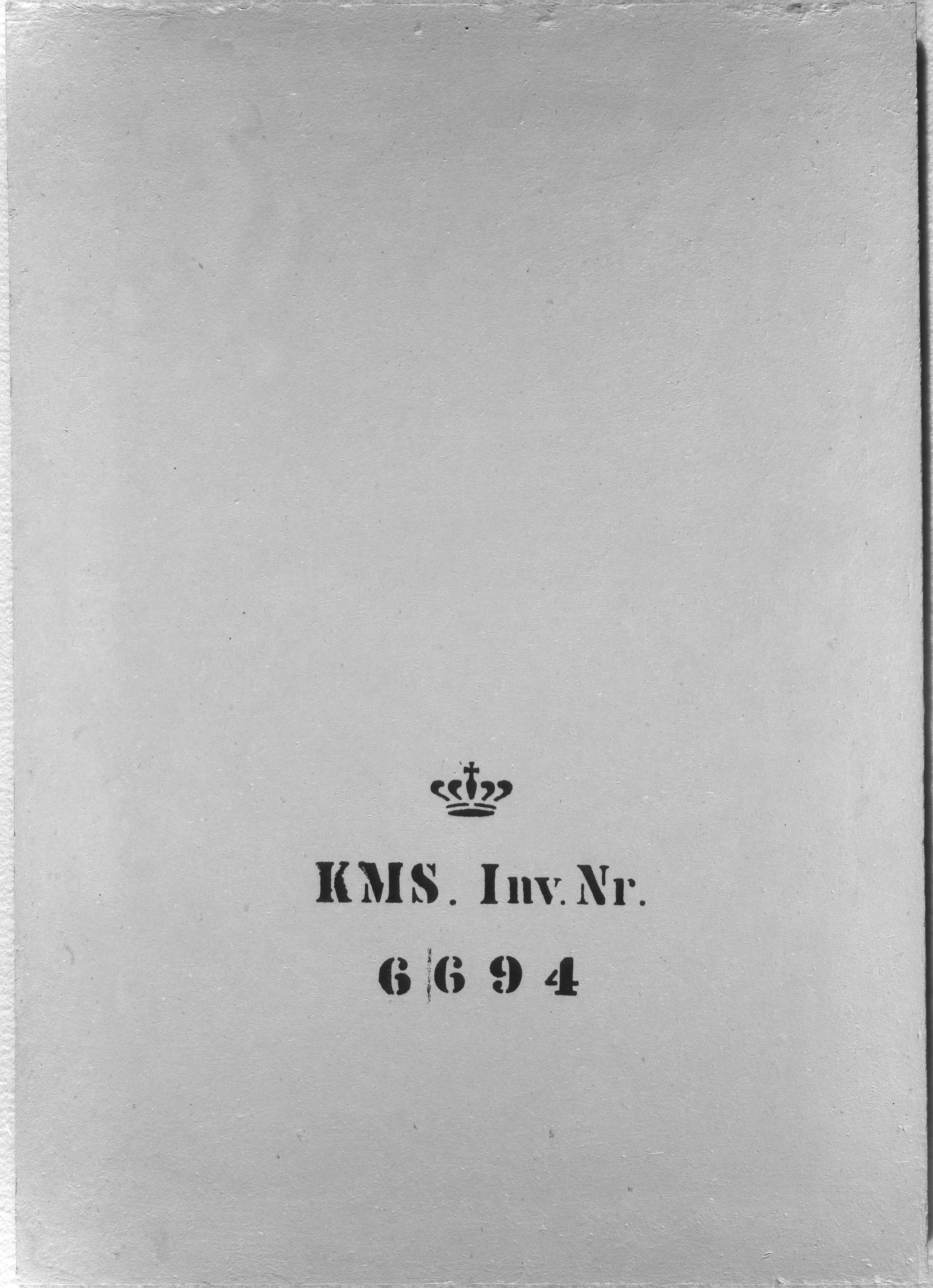 The description is based partially on bw photo taken before a treatment in 1973 during which the outermost layer on the reverse was removed. The format of the board is close to the standard format No. 6 as advertised by Kultorvets Farvehandel 1893: c. 12½ x 17½ inches (32,75 x 45, 85 cm) and even closer if using the English inch as conversion factor instead of the Danish inch. Inscriptions in pencil and black crayon removed during treatment of the back in 1973, are only partially decipherable on the b/w photo. They include, apart from the manufacturer's stamp, the name 'Bramsen' , the note 'Glas revnet' (trans.: glass broken) and the number '8 L 33'.