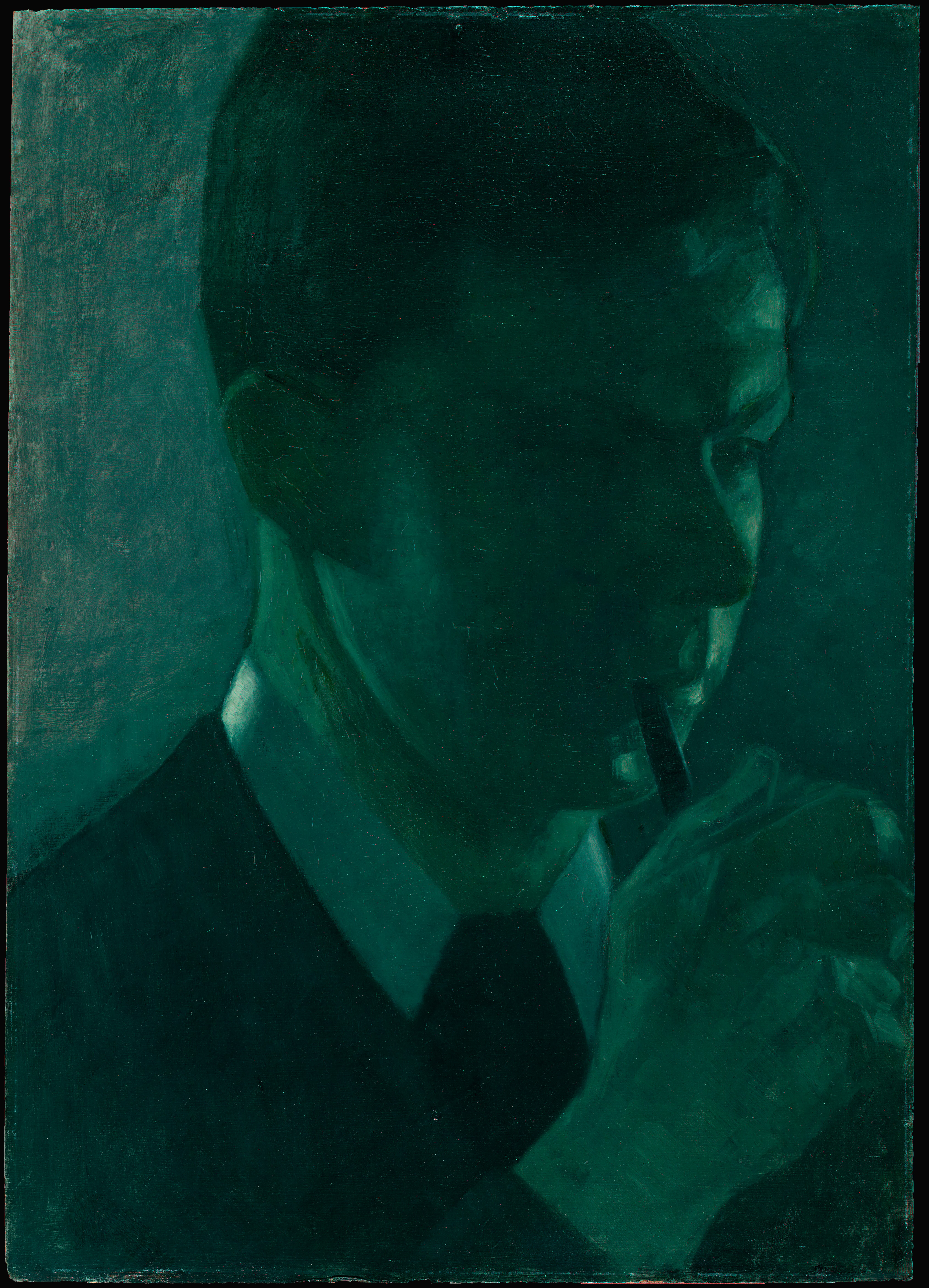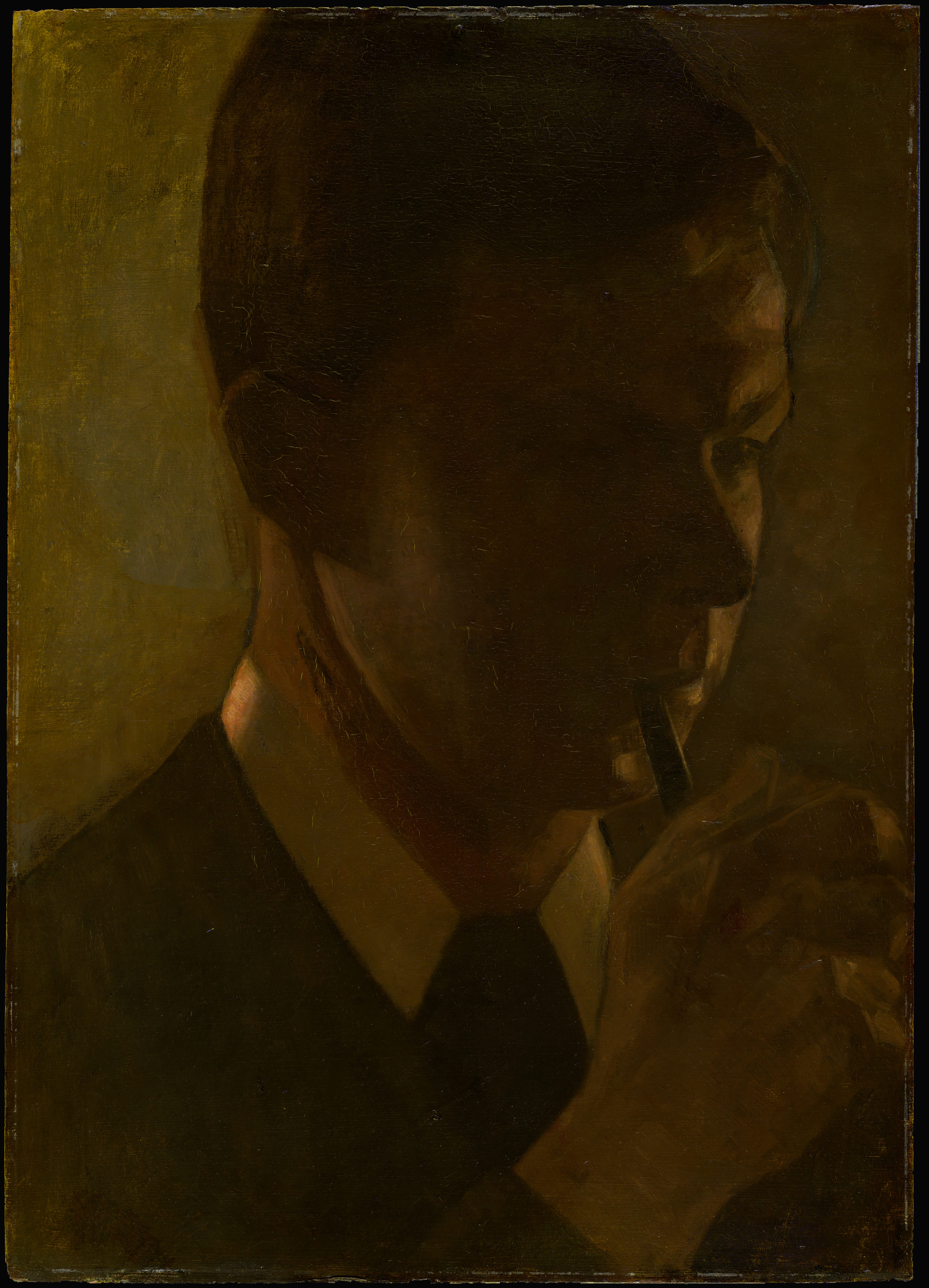 A portrait of the artist's younger brother, the artist Svend Hammershøi (1873-1948) made as a study for the huge painting "Five portraits" today at Thielska Galleriet in Stockholm.