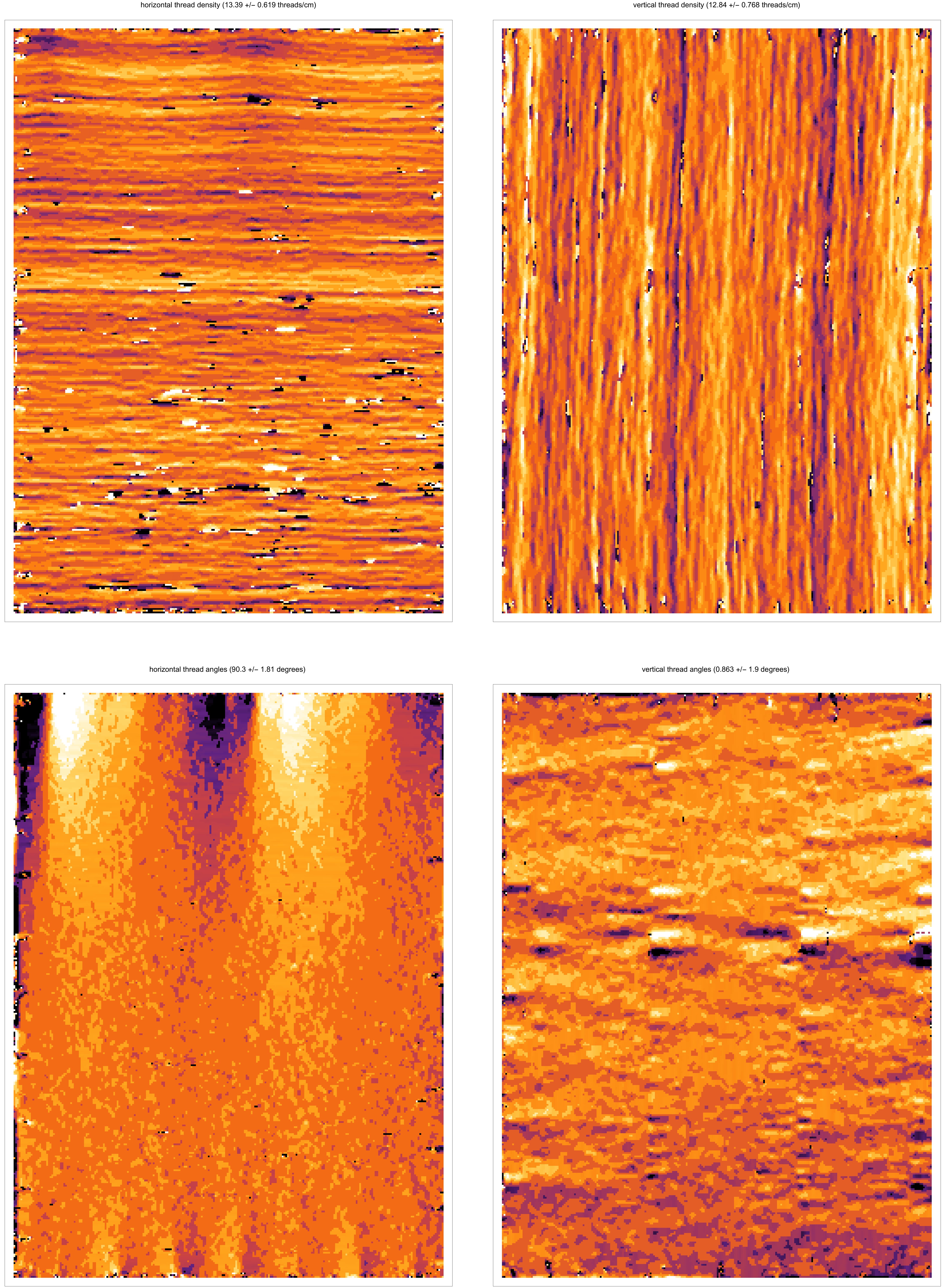 Weave maps are detailed visualisations of the thread patterns in a canvas, created by applying thread counting on high-resolution x-radiographs. These are used for analysing the structure of the canvas and to compare canvases used in different paintings. A comparison between weave maps can sometimes determine if two or more pieces of canvas derive from the same batch and thereby shed light on the place and period in which a painting has been created.