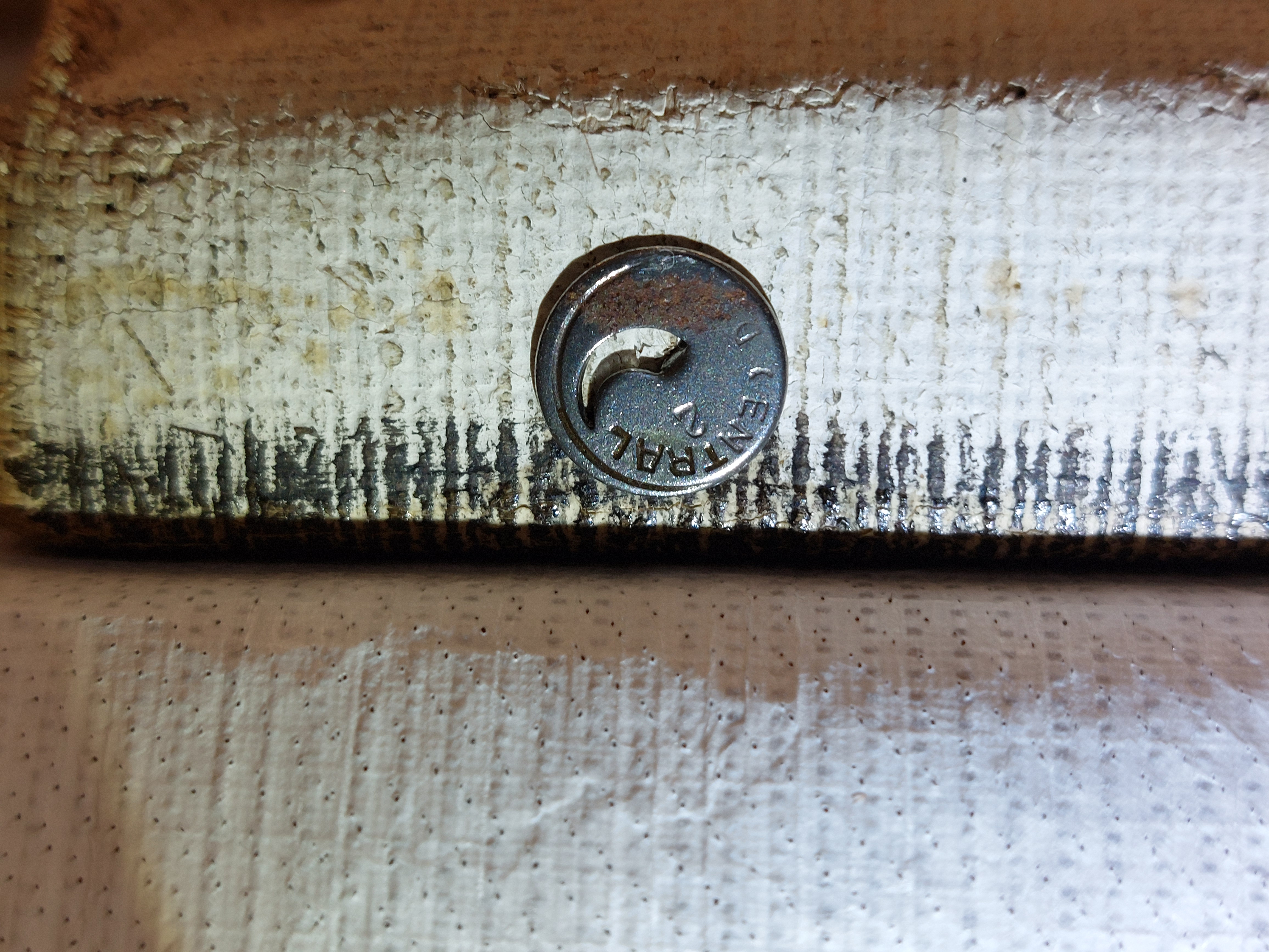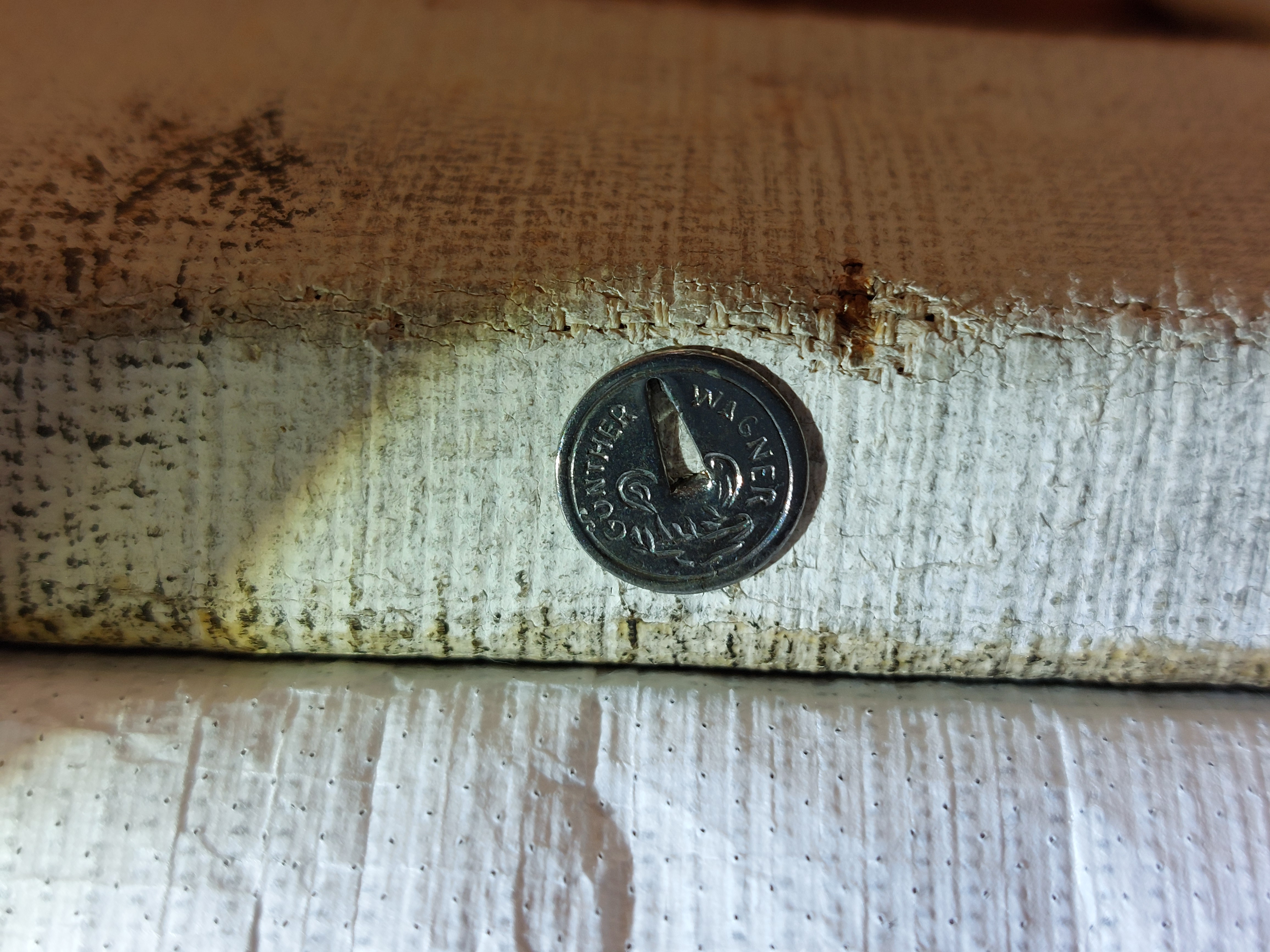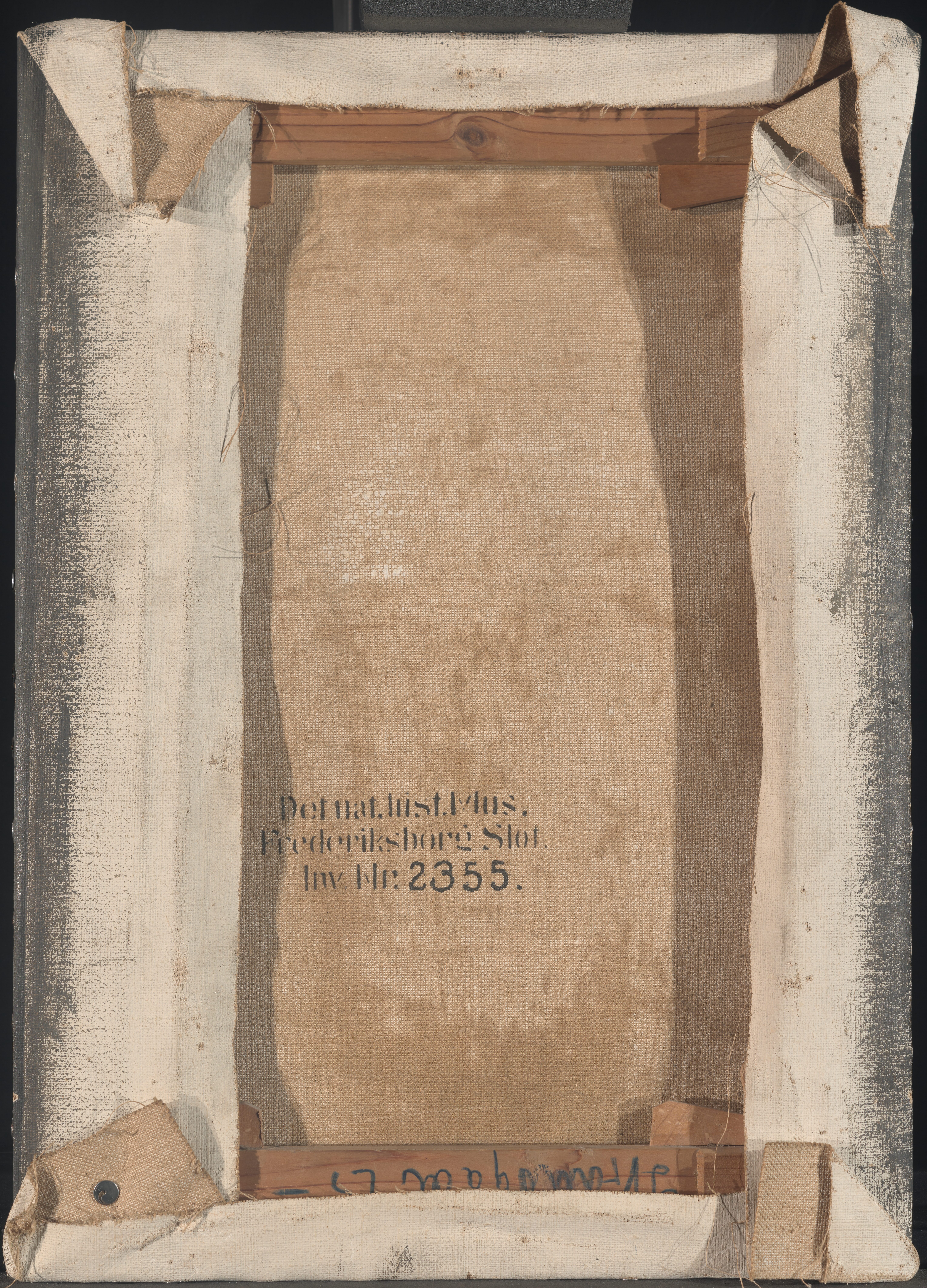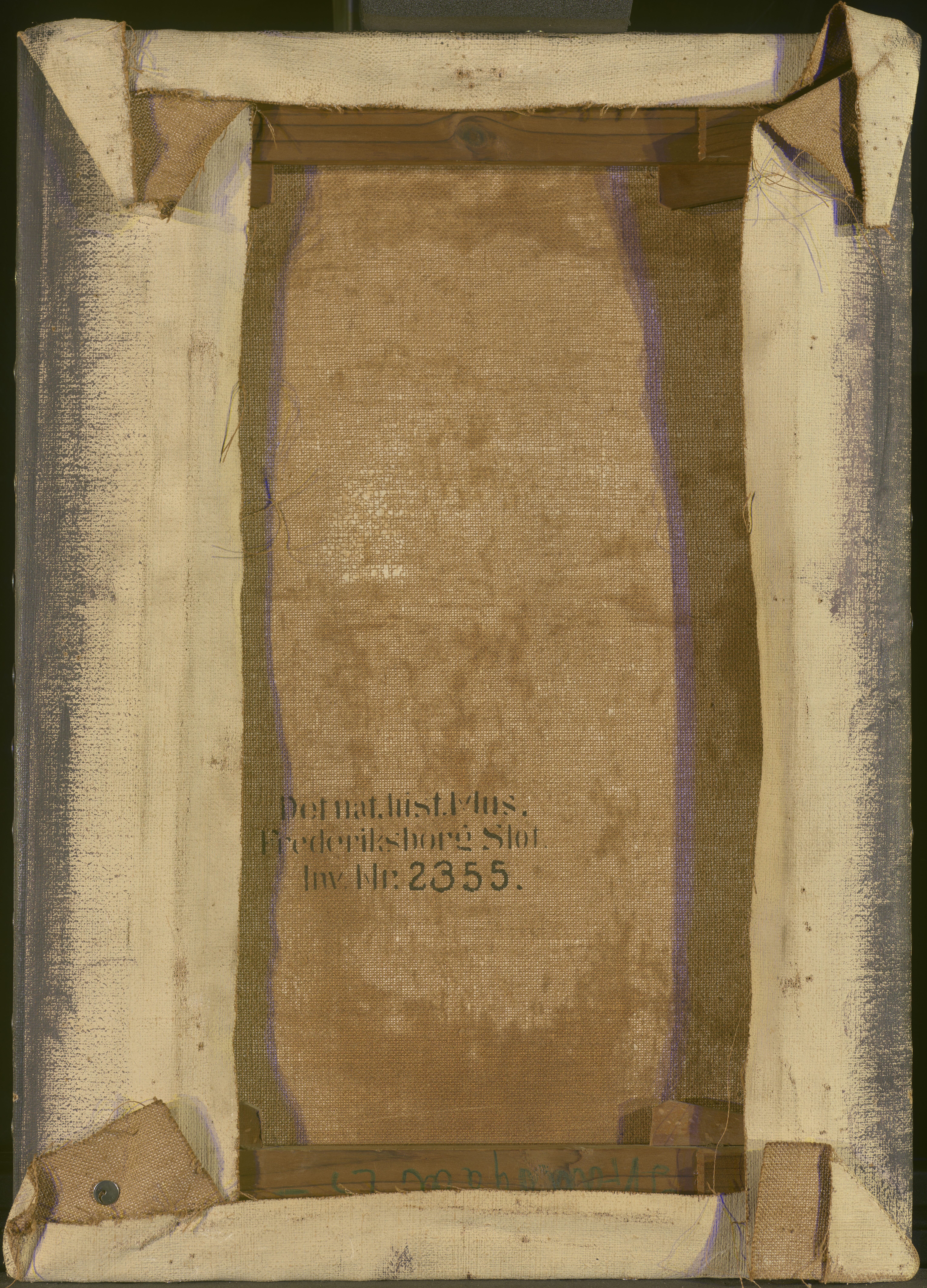 The canvas is attached with thumbtacks. One type is from Günther Wagner Pelikan Reißnägel and the other is marked CENTRAL 2 D.R.P. During the execution of the painting the primed canvas was mounted on a board.