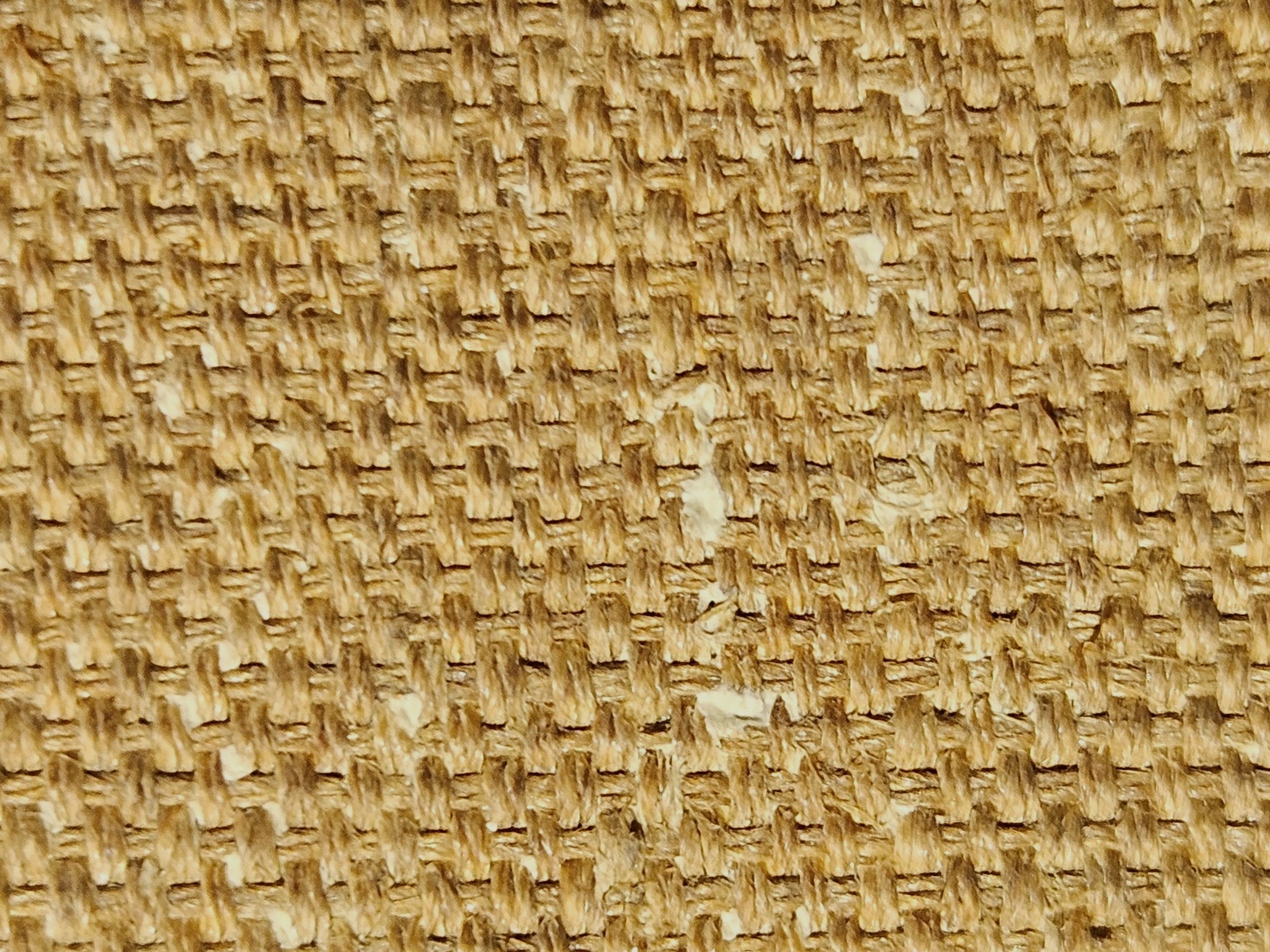 An industrial canvas with a rather coarse, locally slightly open weave and uneven yarns with some knots.
