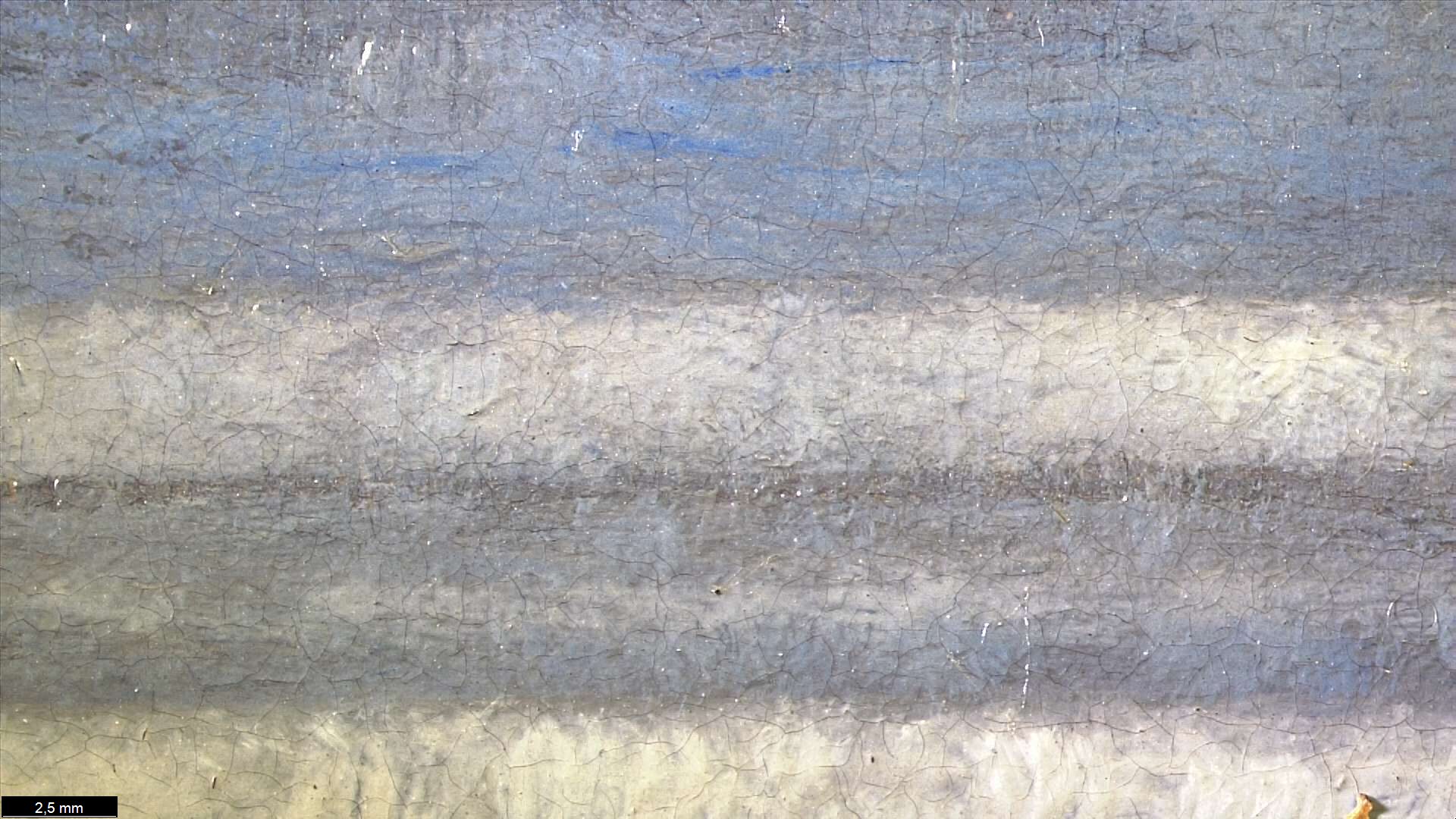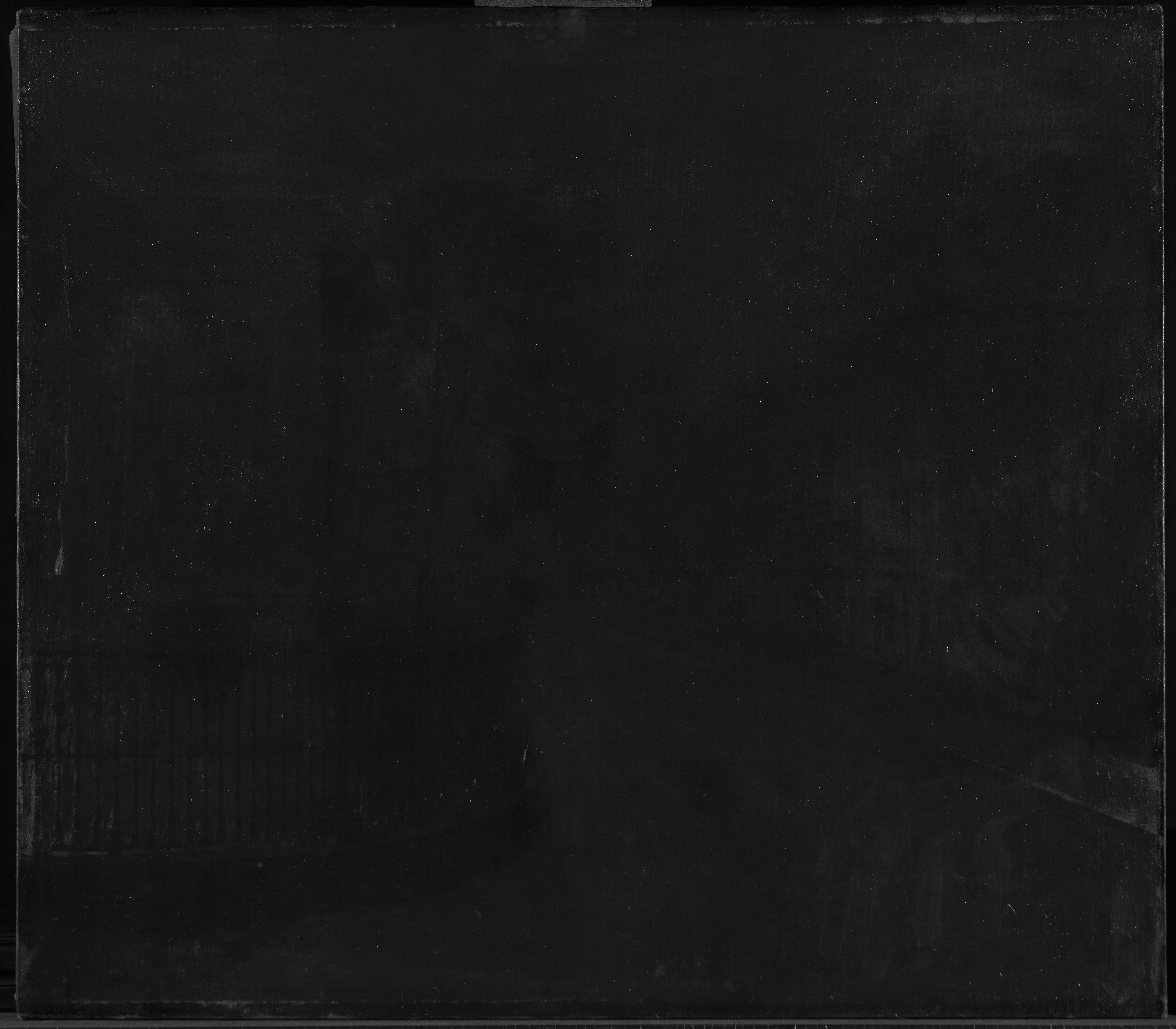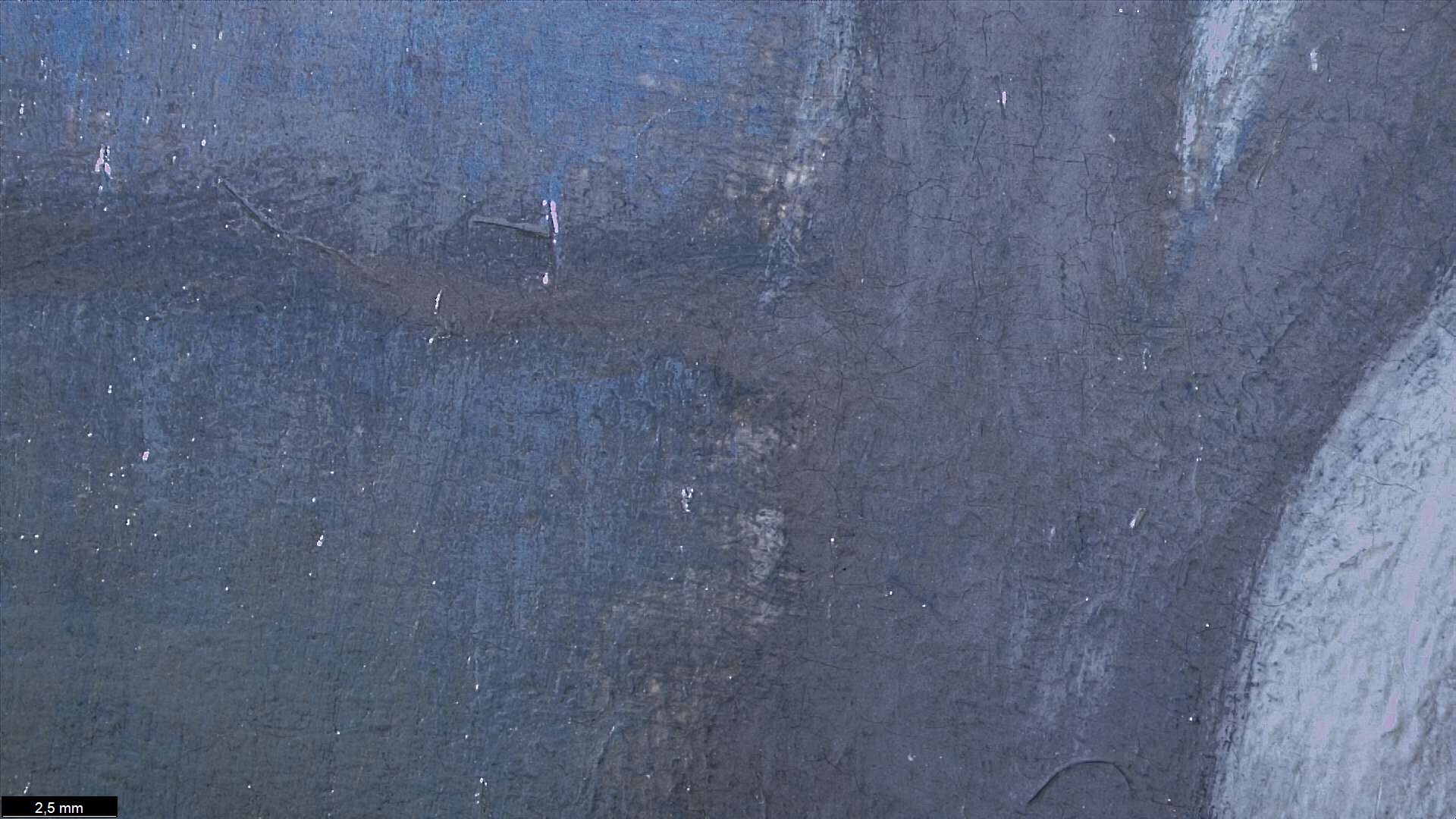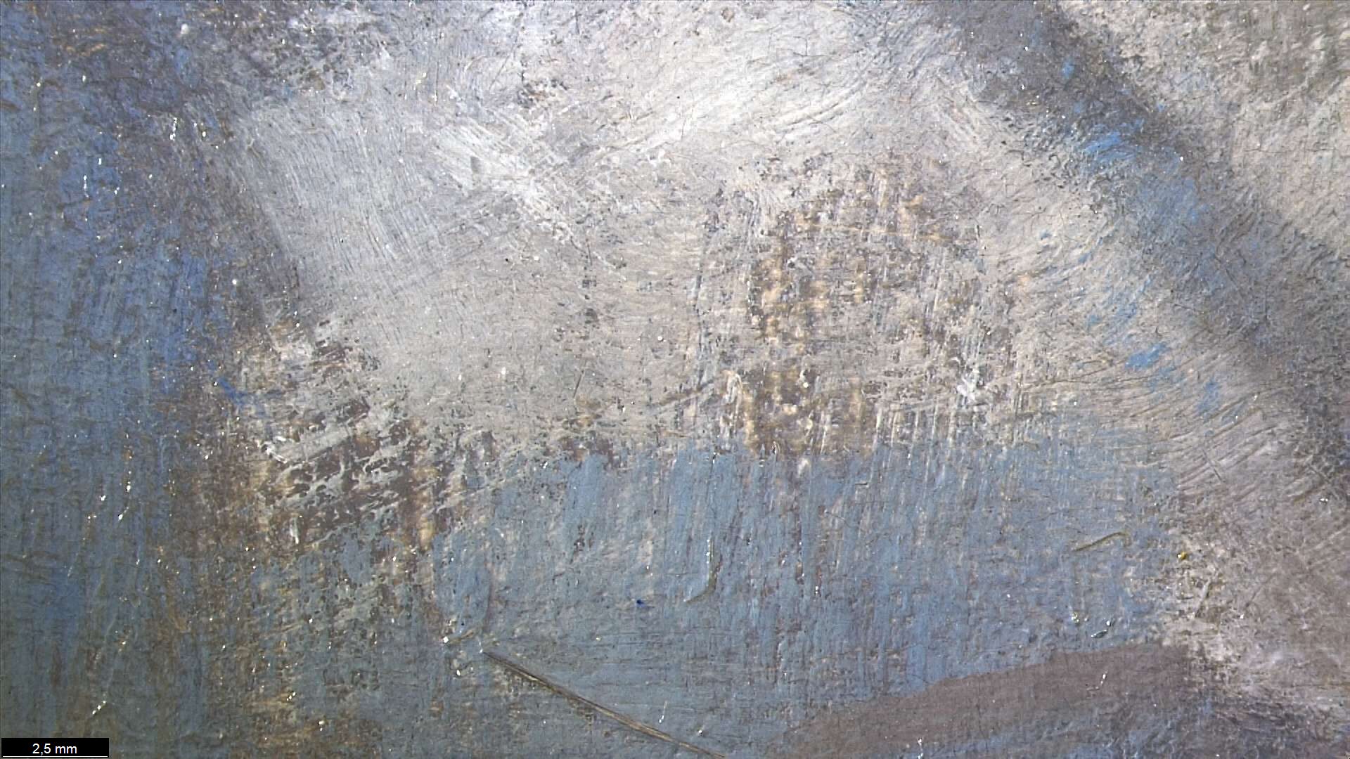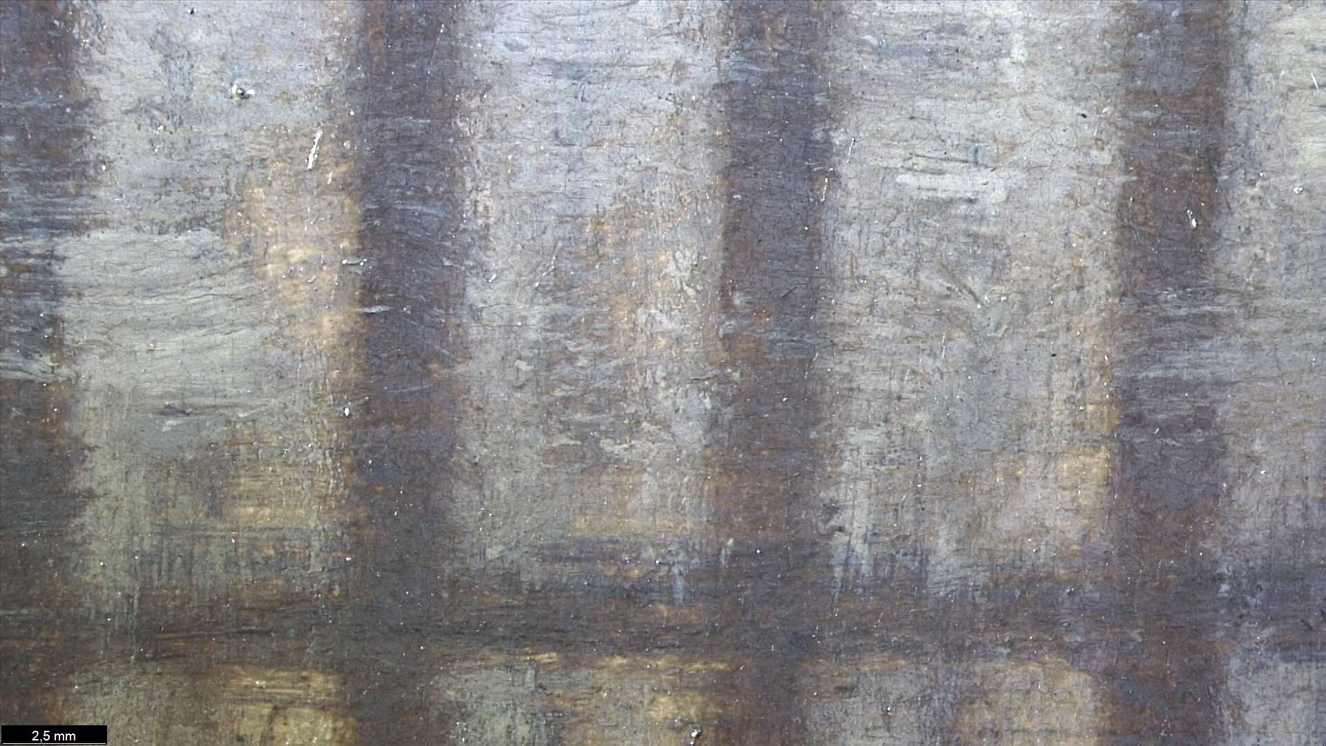 The ground layer is a preparatory layer applied directly to the support to create a smooth surface for painting. It is typically opaque and monochrome in color, providing a neutral base that influences the subsequent application of paint layers and the final appearance of the painting. The composition of the ground layer varies depending on the type of support and the historical period of the artwork. Hammershøi typically painted on white and industrially primed canvasses.