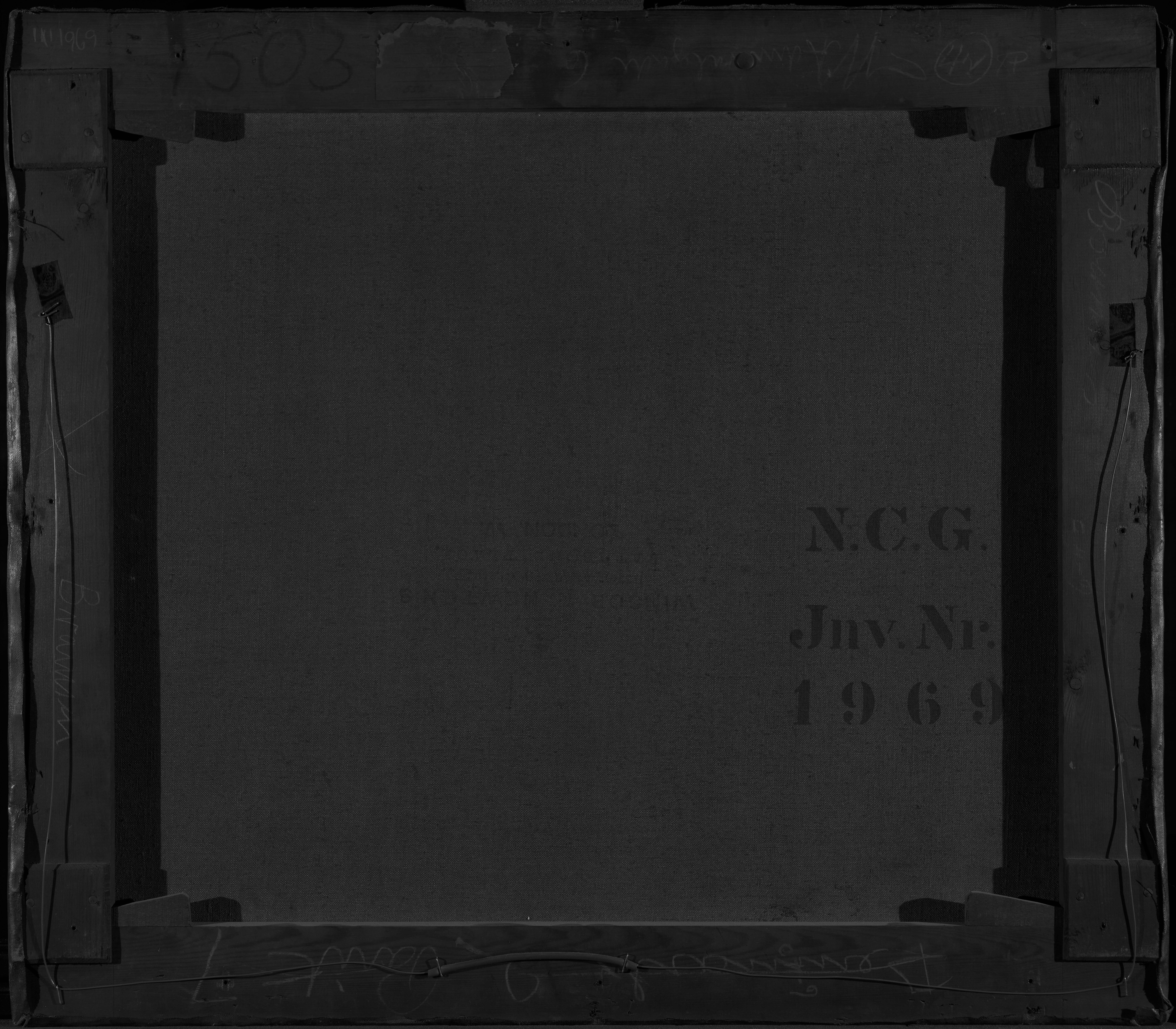 The underdrawing is a preliminary sketch applied directly onto the ground layer, serving as an outline for the composition or parts of it before the paint layers are added. These drawings are often not visible to the naked eye but can be revealed through infrared imaging (IRR and IR-R-IR) if carried out with a carbon-containing material on a light-coloured ground layer. The underdrawings can offer valuable insight into the artist’s creative process and planning, showing how the composition evolved prior to the final painting.