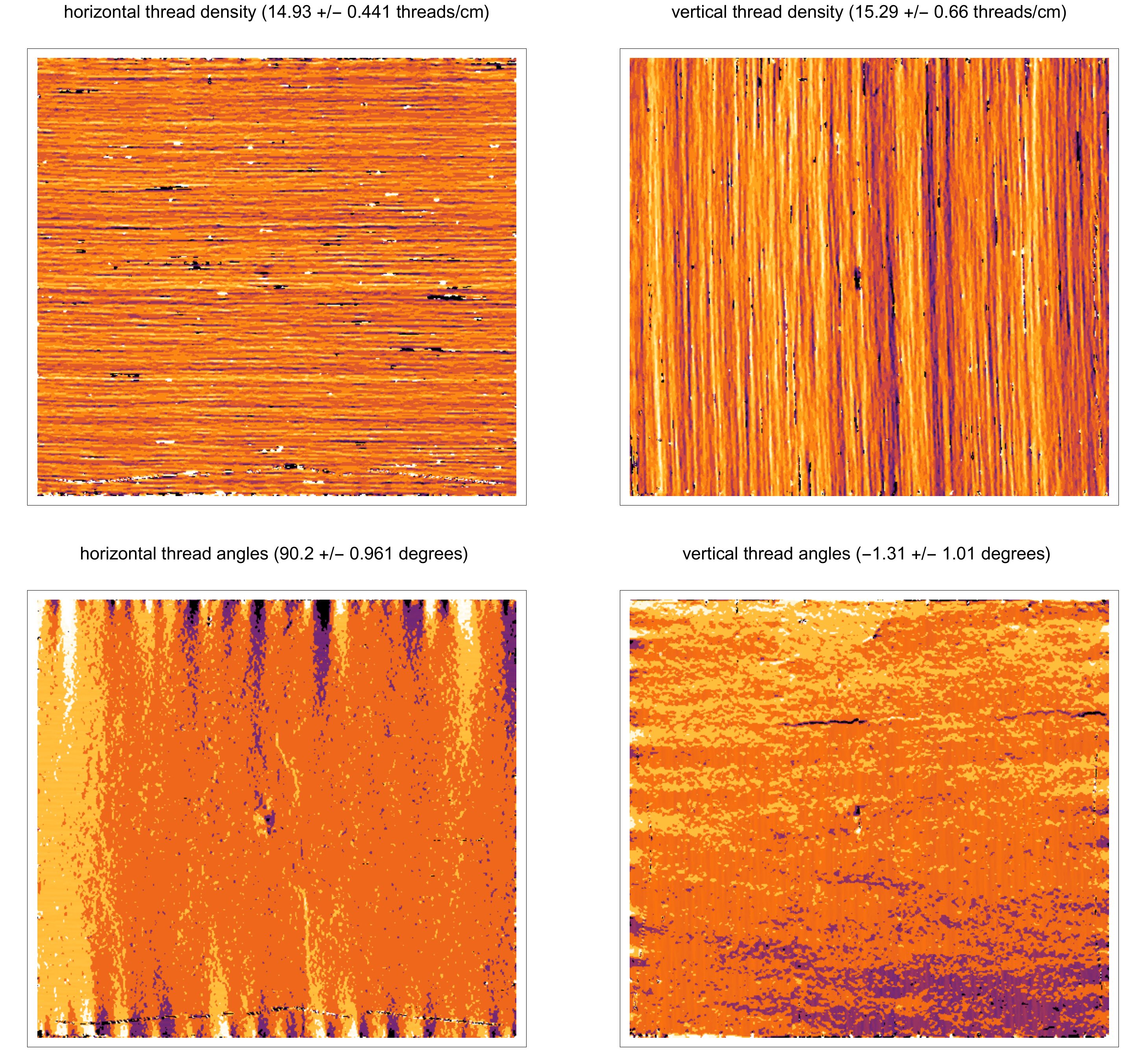 Weave maps are detailed visualisations of the thread patterns in a canvas, created by applying thread counting on high-resolution x-radiographs. These are used for analysing the structure of the canvas and to compare canvases used in different paintings. A comparison between weave maps can sometimes determine if two or more pieces of canvas derive from the same batch and thereby shed light on the place and period in which a painting has been created.