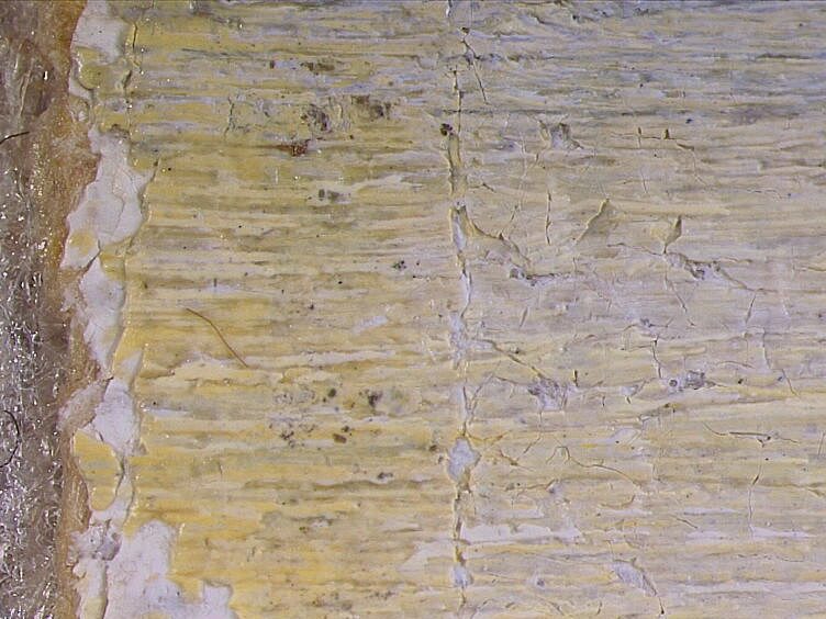 The ground is visible in places where the paint layer is very thin, eg locally between the horisontal sections of the fields.