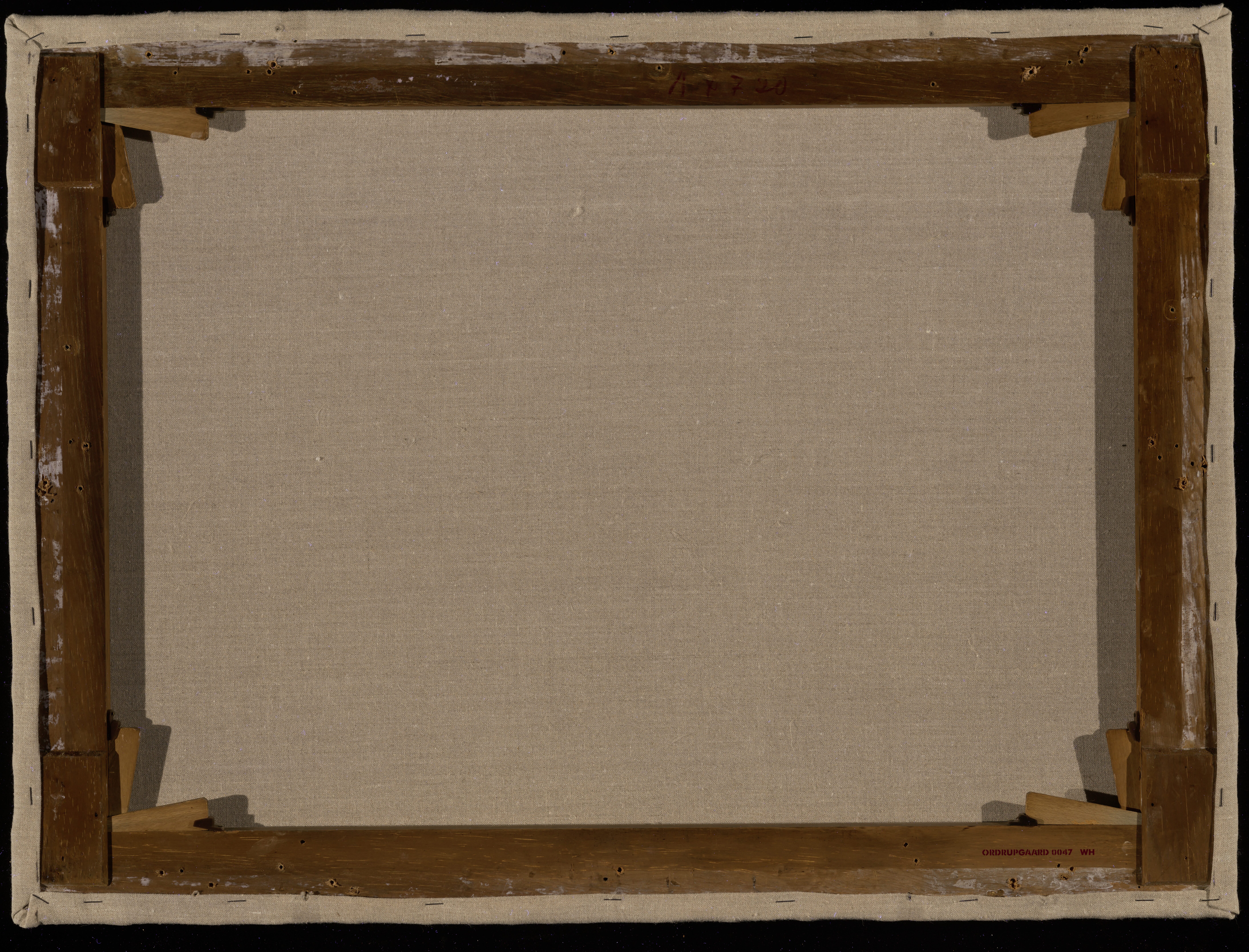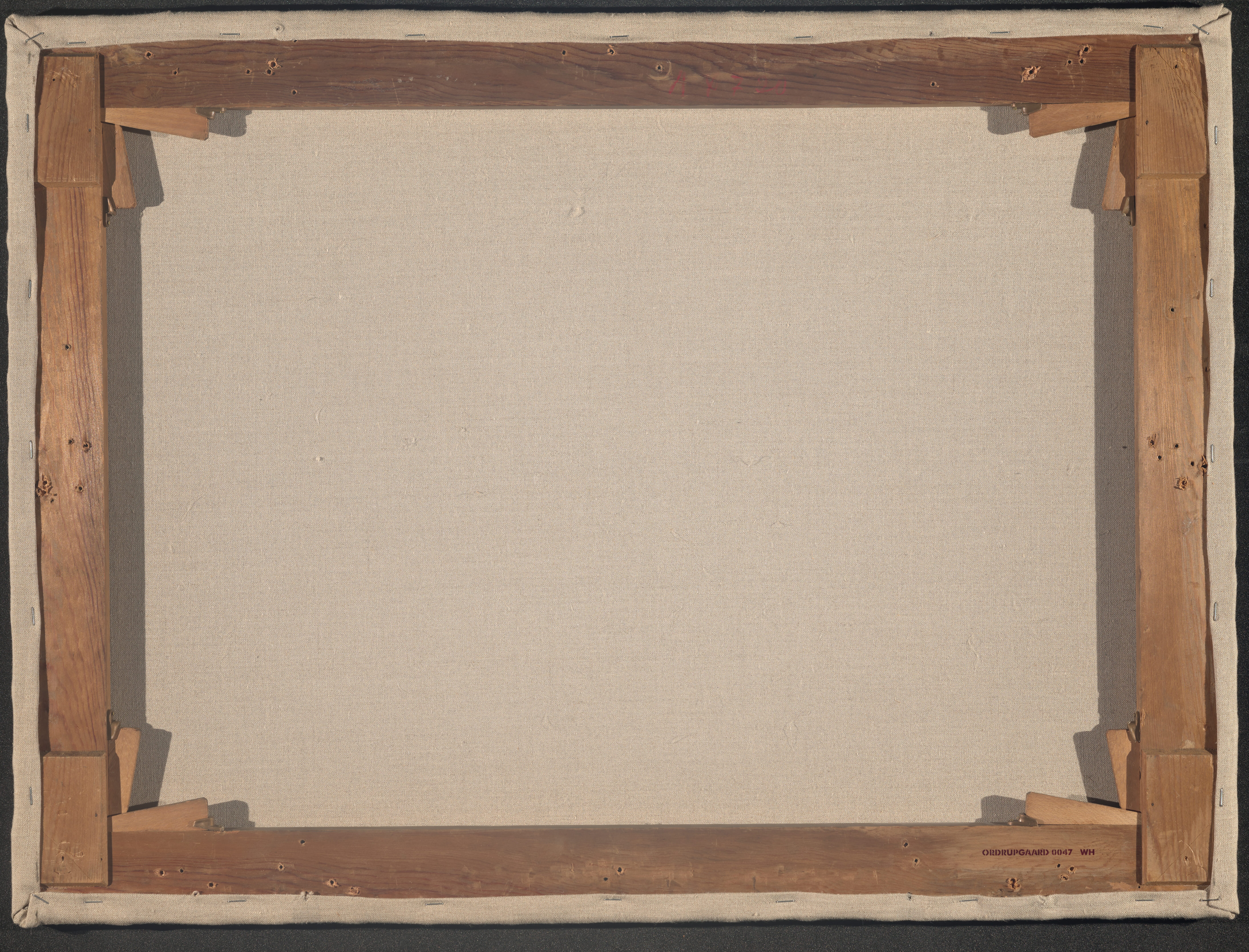 The painting was lined with gluepaste before 1994. It underwent conservation treatment with a new lining in 1994.